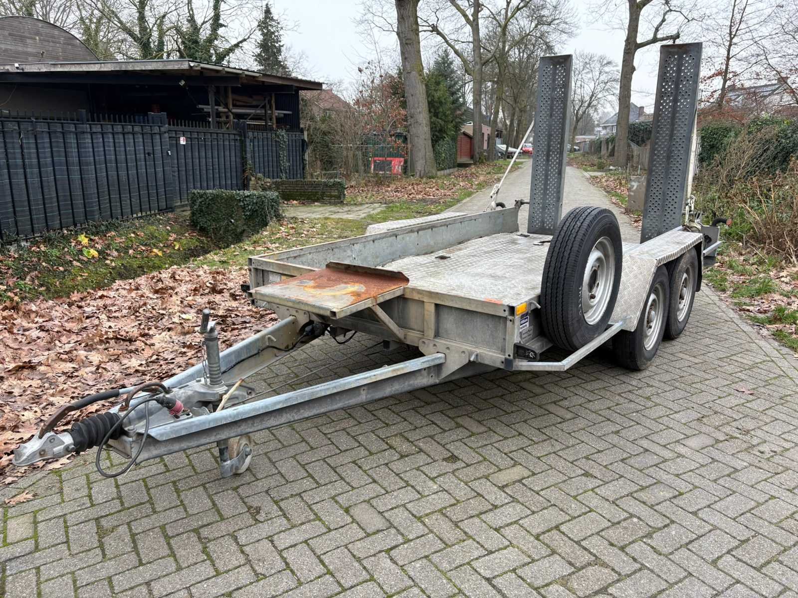 Machinetransporter met kenteken Bodem licht beschadigd Totaal 3500 kg Merk: Ifor Williams Laadvermogen: 2785kg