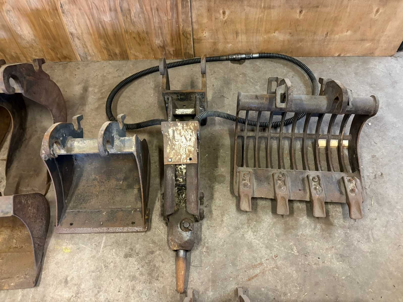 1200 tot 3000 kilogram; bananenbak, 25 cm bananenbak 25 cm met inlegvel voor kleigrond dieplepel, 45 cm dieplepel, 60 cm puinriek sloophamer rubber schuif, 100 cm