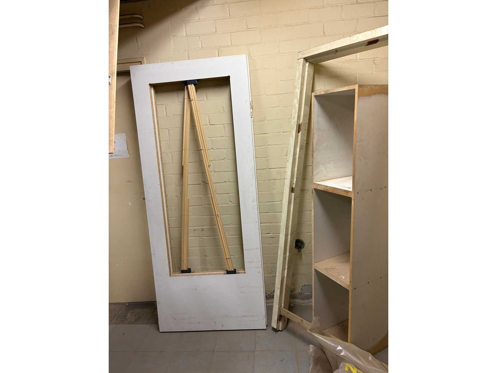1x Mahonie opdek gefineerd 83x201,5cm 1x Mahoniie wit gegrond, stomp, 83x201,5cm 1x Svedex Met glazen opening, 88x211,5cm 1x Paneeldeur 93x201,5cm