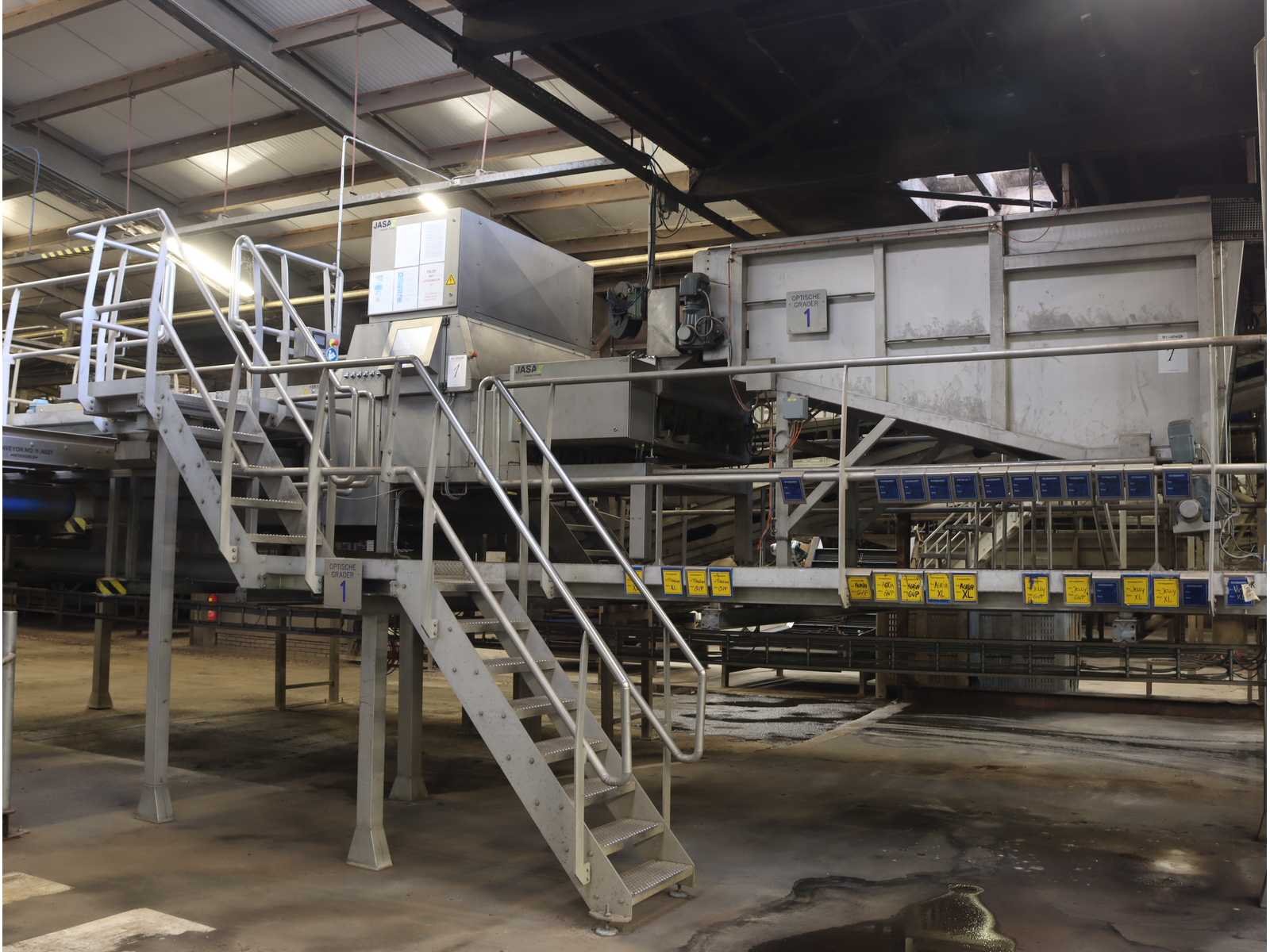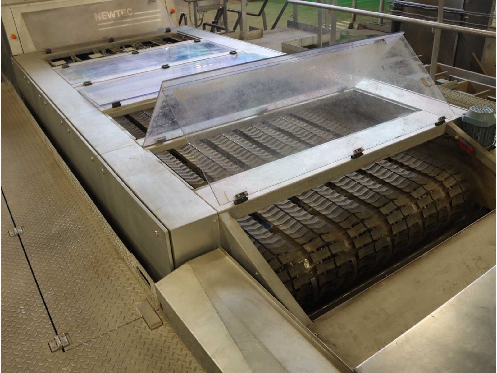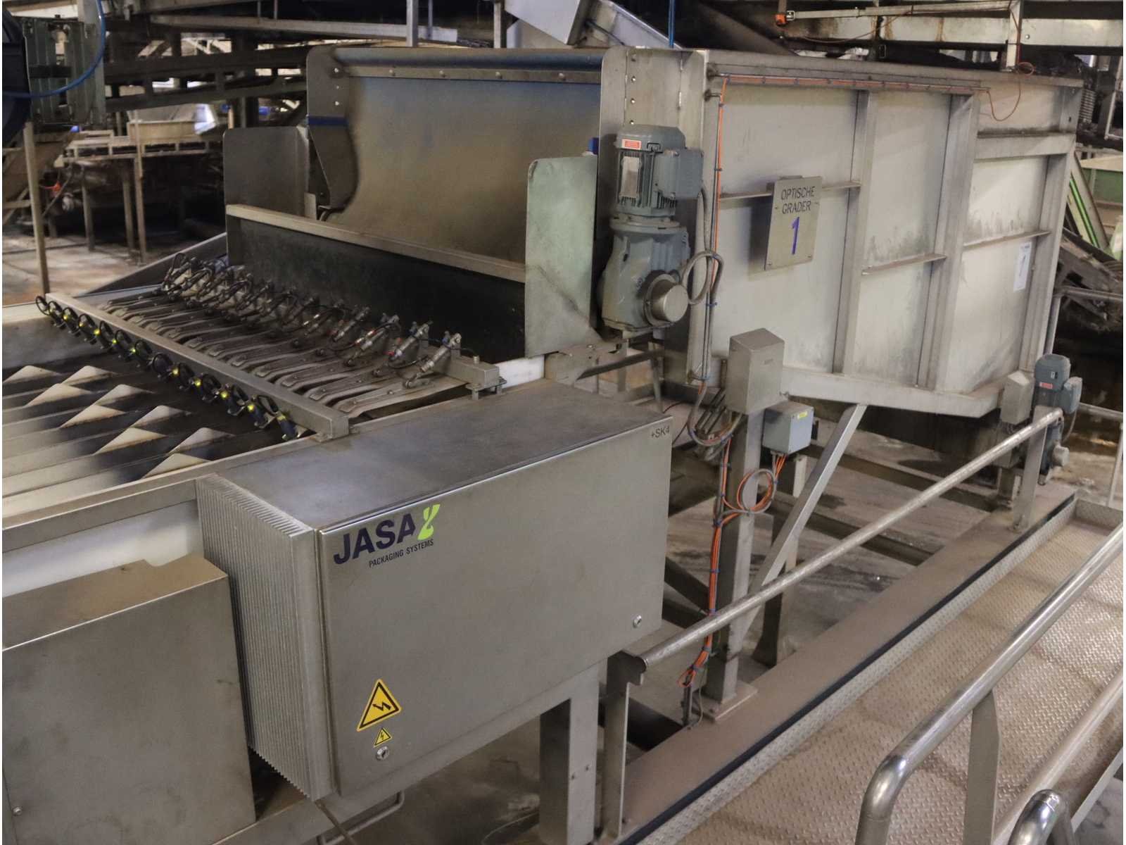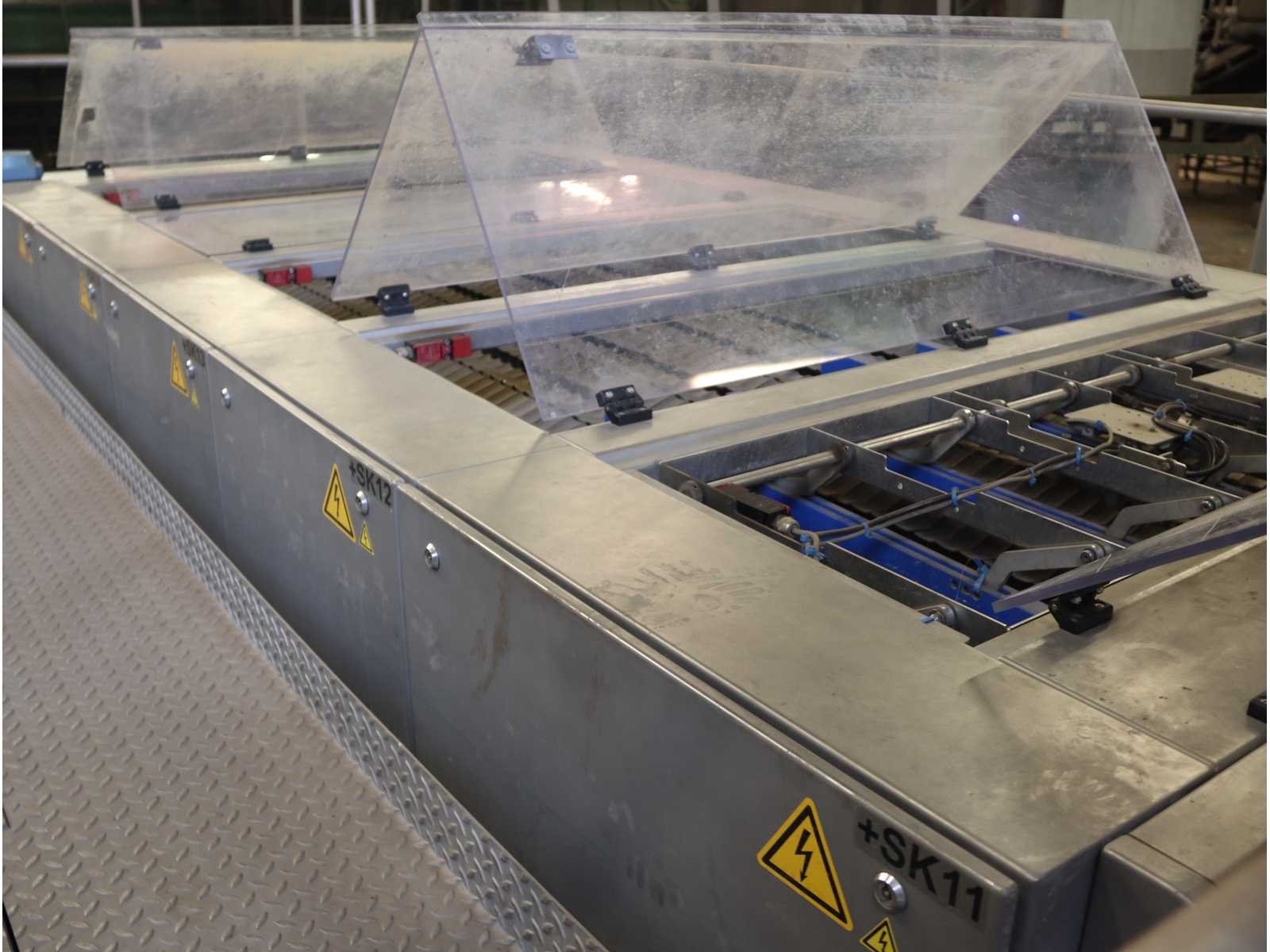 Voorzien van invoerbunker met transportband, 12 invoergoten met optische sensor, inspectieunit met touchscreen bediening, 6 dubbel-lijns continue uitvoer-sorteer transportband, 5 onderlopende dwarsuitvoer transportbanden (in diverse lengtes), onderlopende transportband met laanverdeling (afmeting circa 11000x1200 mm), 5 “Mountech” uitvoer units met bakopvang, type MKV600x402 (2002), gebruikte vloeroppervlakte circa 19000x6000 mm, (demontage op aanwijzing troostwijk) Merk: Newtec Type: Celox-P-UHD Bouwjaar: 2017 Serienummer: A627 Aansluiting: 400V