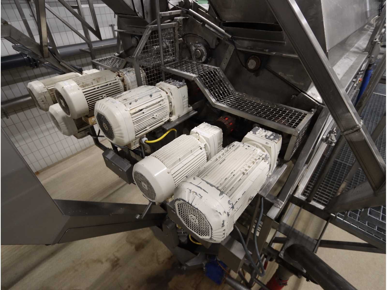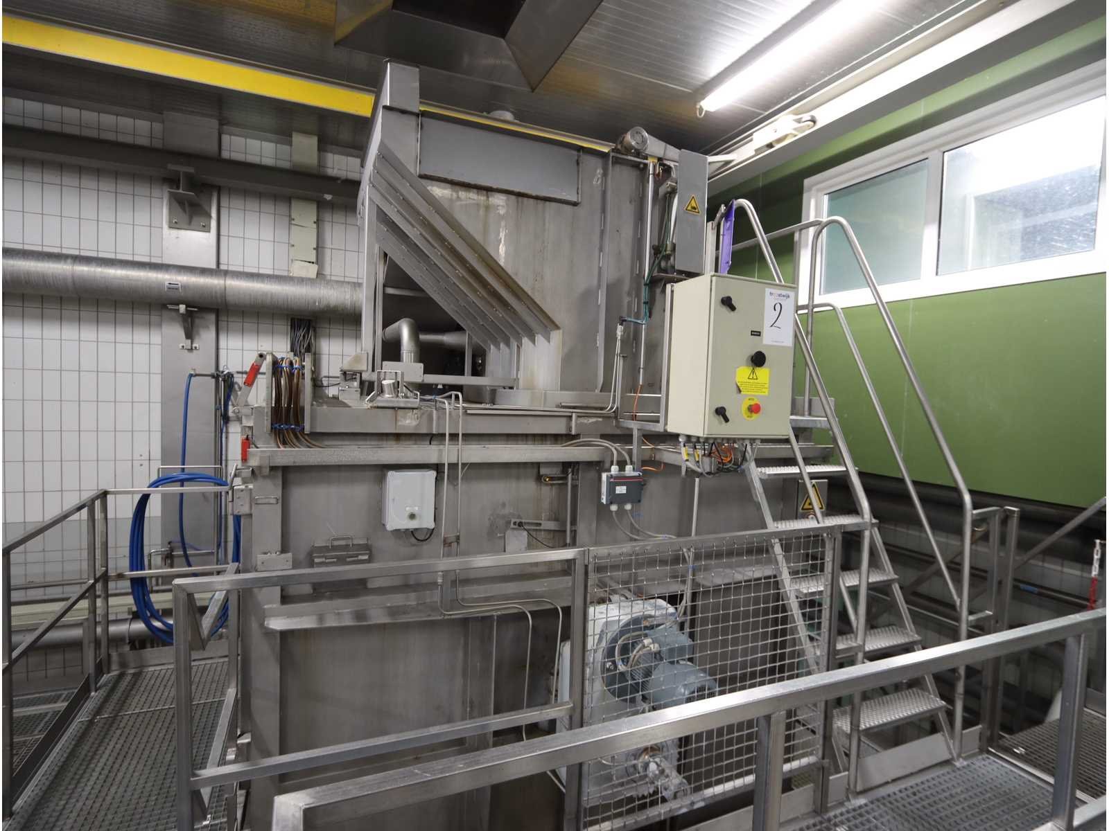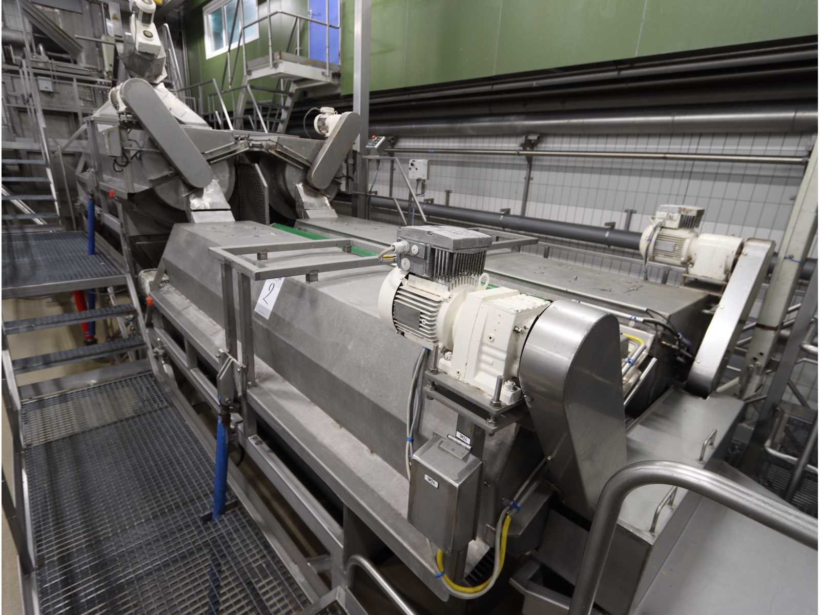 Bestaande uit: “Kiremko” stoomschiller voorzien van invoerbunker (afmeting circa 2400x3000x6000 mm), en onderlopende opvoer schroeftransporteur (lengte circa 6000 mm), “Agrico” 2-voudige ontveller en 2-voudige borstelmachine type AT-OBC-2500, werklengte 2500 mm, beide voorzien van schroeftransporteur, uitvoer schroeftransporteur (lengte 2500 mm) en opvang/filter bak met pomp (afmeting circa 1550x1070x1160 mm)(bordessen niet inbegrepen)