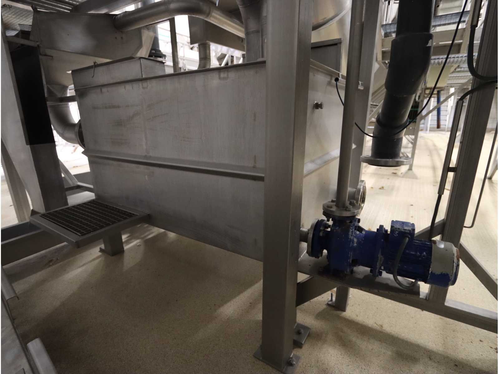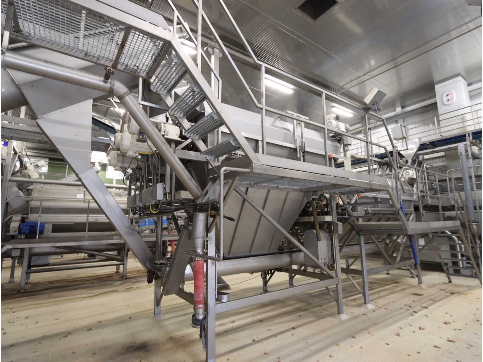 Bestaande uit: “Kiremko” stoomschiller voorzien van invoerbunker (afmeting circa 2400x3000x6000 mm), en onderlopende opvoer schroeftransporteur (lengte circa 6000 mm), “Agrico” 2-voudige ontveller en 2-voudige borstelmachine type AT-OBC-2500, werklengte 2500 mm, beide voorzien van schroeftransporteur, uitvoer schroeftransporteur (lengte 2500 mm) en opvang/filter bak met pomp (afmeting circa 1550x1070x1160 mm)(bordessen niet inbegrepen)
