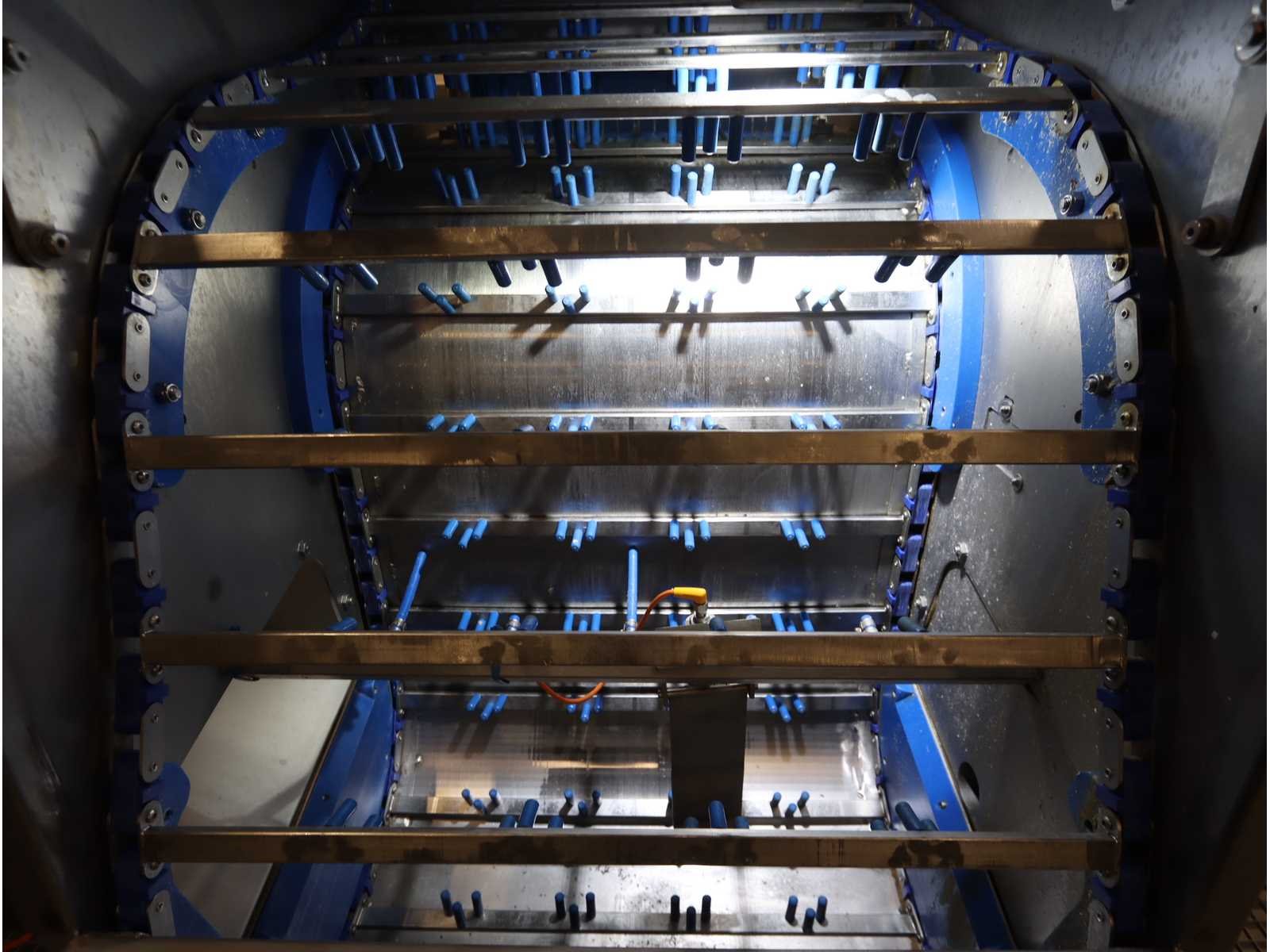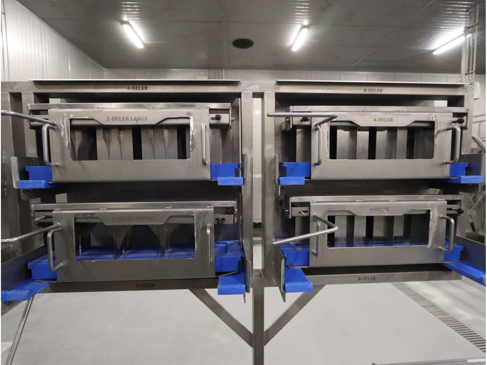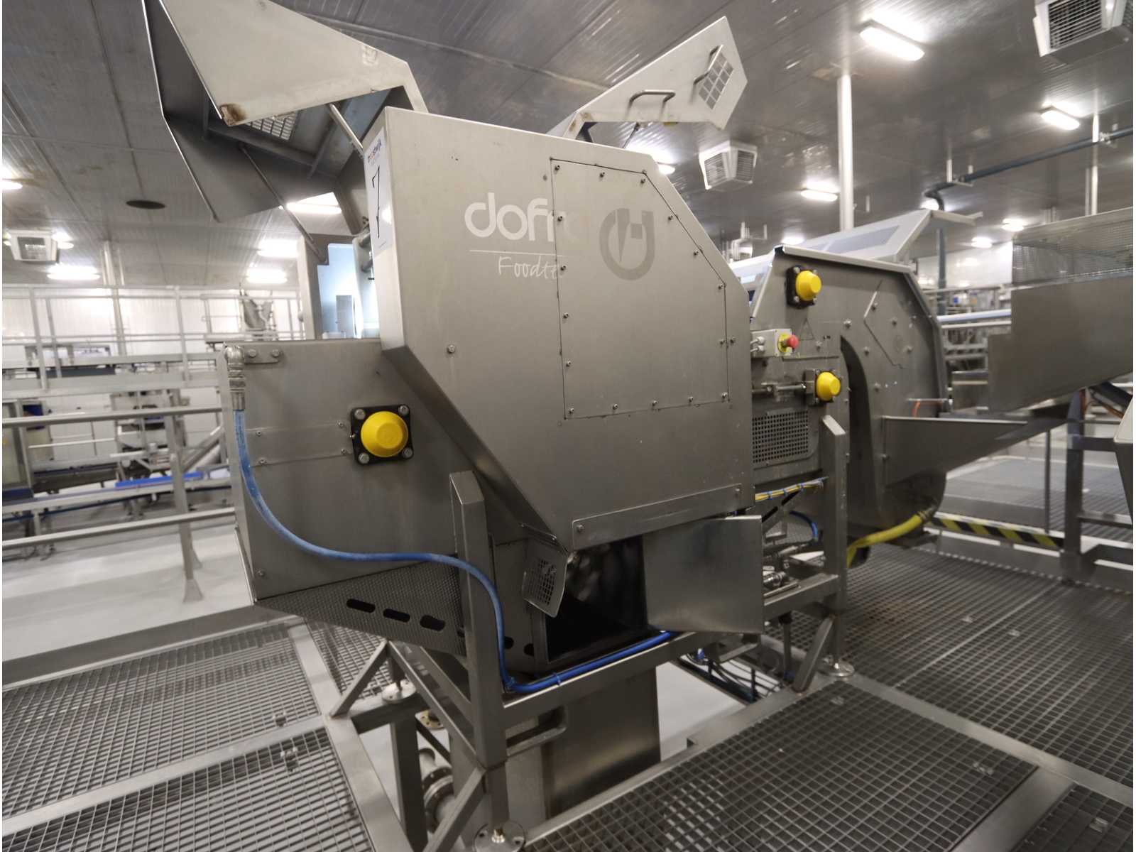 Werkbreedte 600 mm, Voorzien van 4-delige segmenteerset (2-deler langs, 2-deler dwars, 2x 4-deler, 8-deler), besturingskast, met regelbare snelheid, Merk: Dofra Foodtech Type: 20054743 02 Bouwjaar: 2015 Serienummer: 12150350 Aansluiting: 400V Eigen gewicht: 700kg Totale afmeting L: 2750mm Totale afmeting Breedte: 1430mm Totale afmeting Hoogte: 1650mm