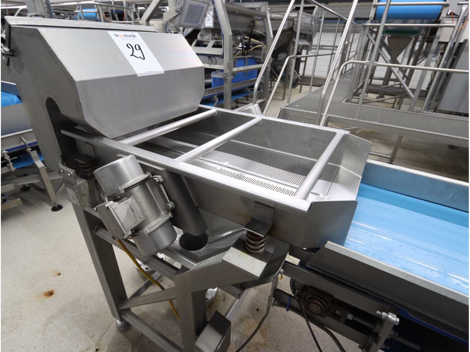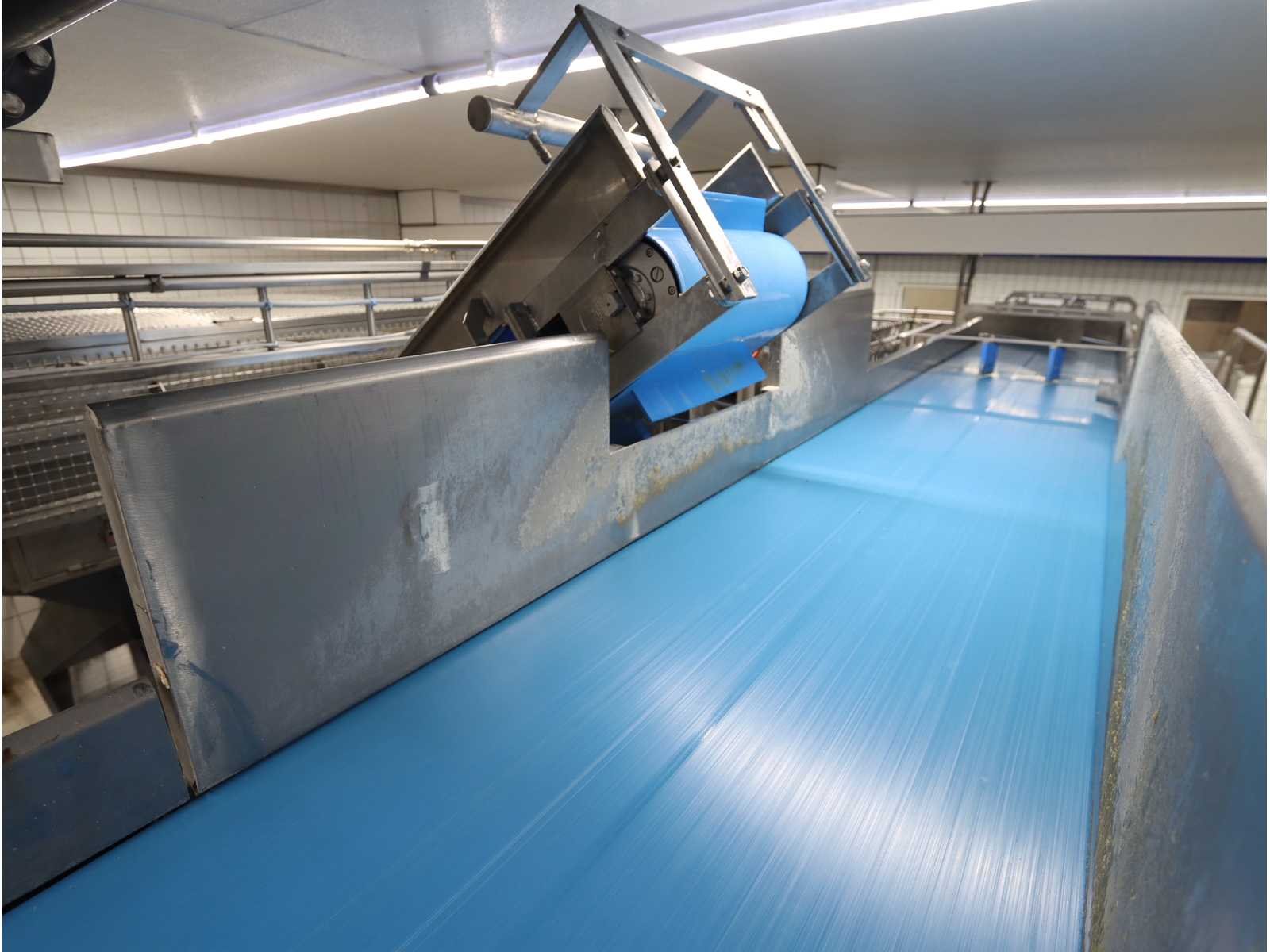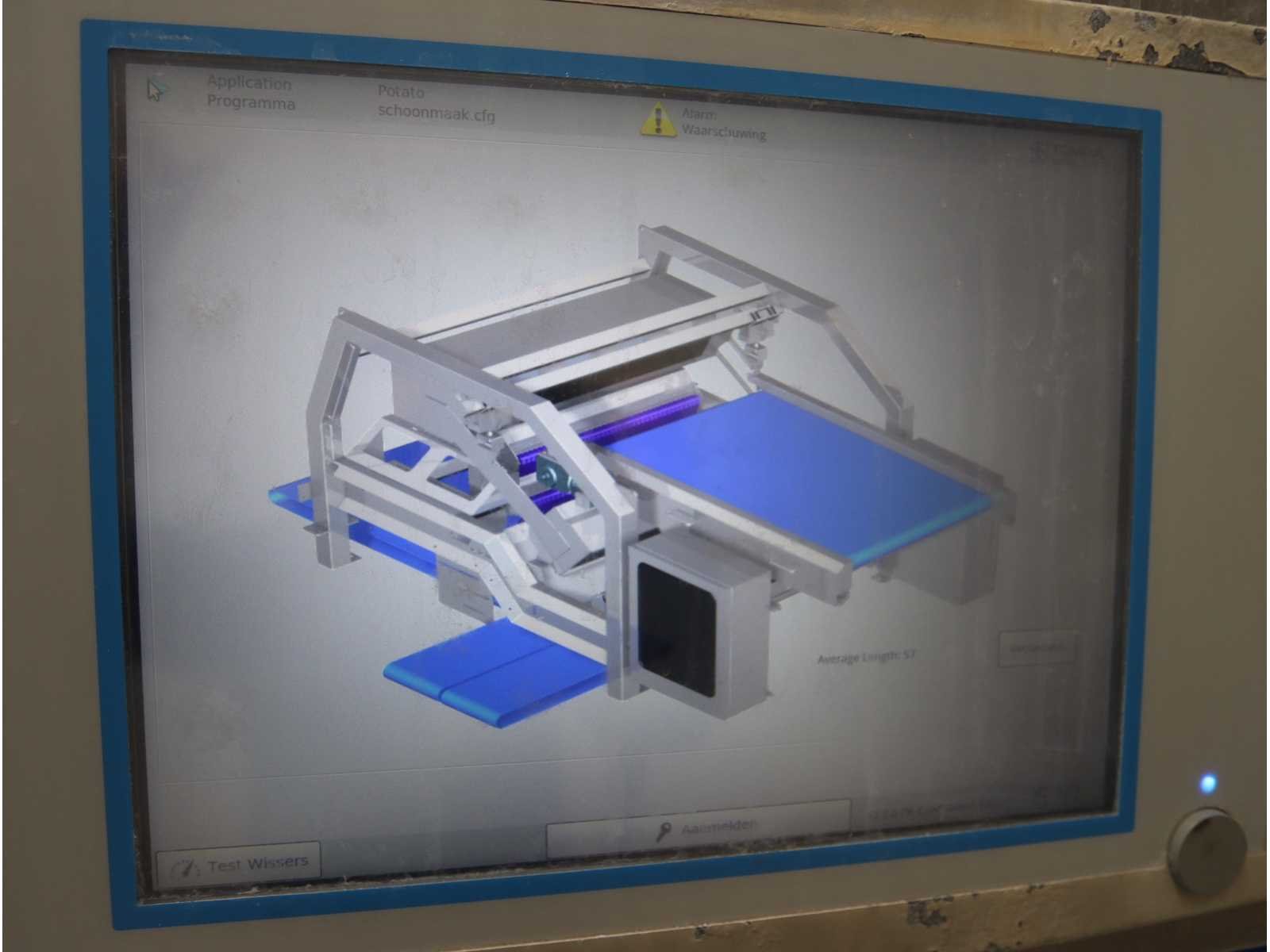 Bestaande uit: “Odenberg” optische sorteermachine, met mechanische vinger uitwerp systeem, “Tomra” touchscreen bediening, RVS invoerbunker, voorzien van zij/top invoer, onderlopende schuingestelde transportband, hoog geplaatste invoer transportband, geheel voorzien van 2 onderlopende transportbanden en dwars geplaatste invoer met schudzeef en transportband, inclusief bordessen met roostervloer, totaal gebruikte vloer oppervlakte 10500x4750 mm