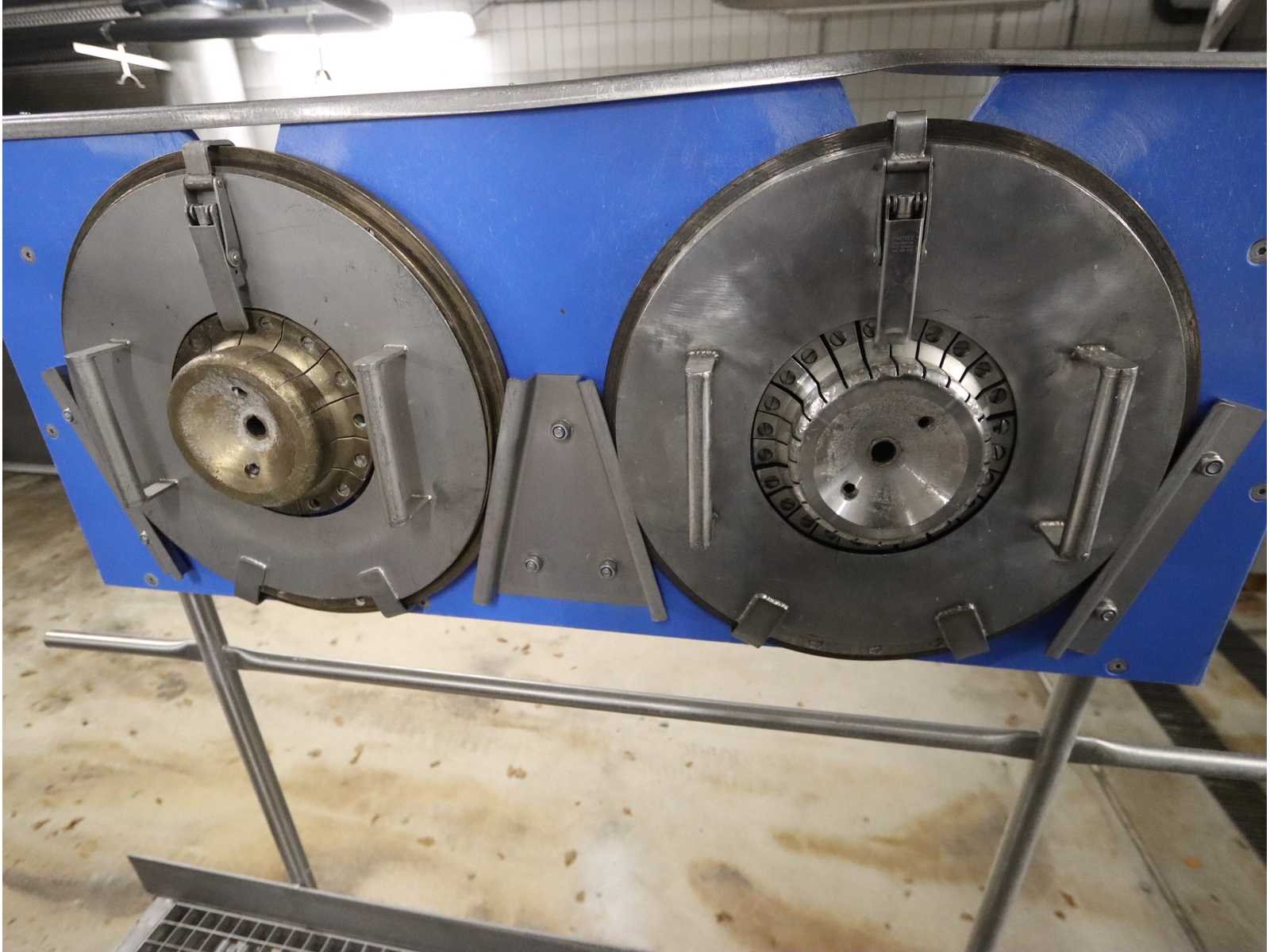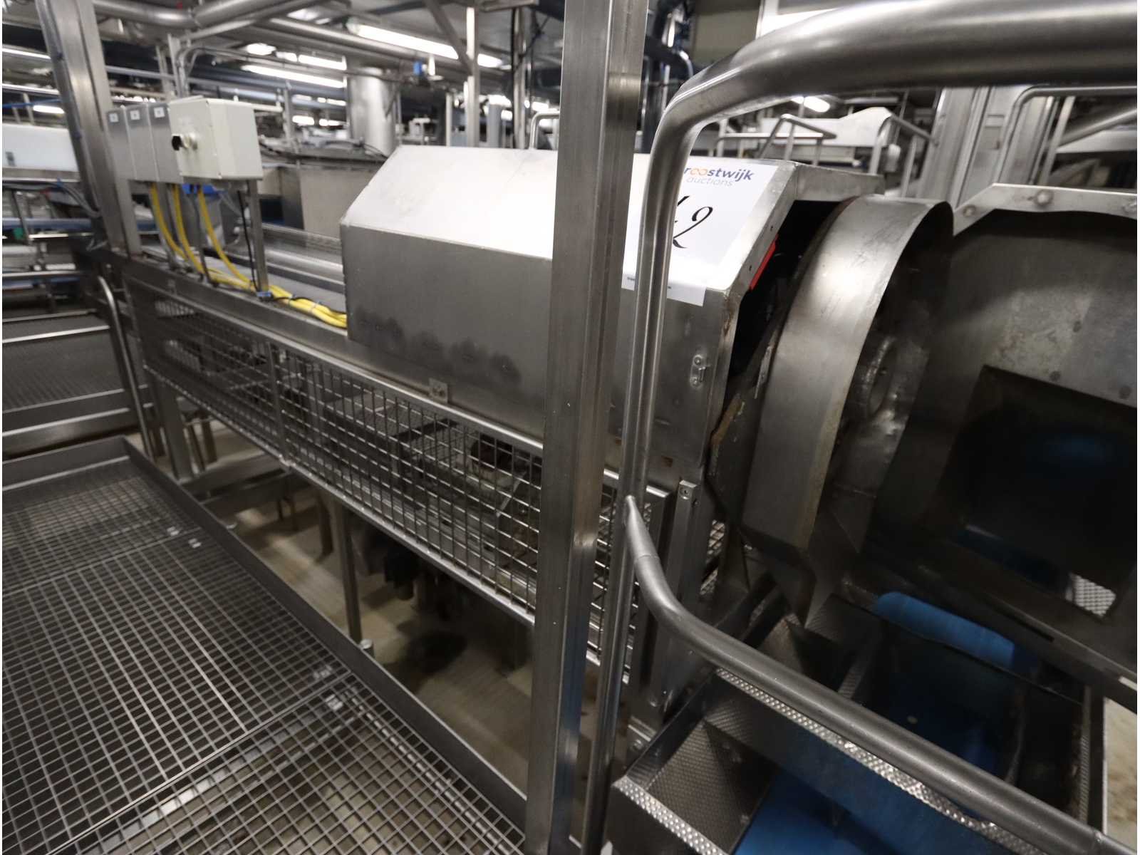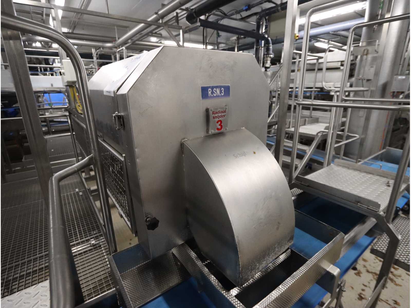Mes diameter circa 400 mm, voorzien van aanvoer transportband, lengte circa 3000 mm, in rvs frame afmeting 3100x650x900 mm, 1,5 kW, inclusief 2 reserve messen, zonder bordes en roostervloer Merk: FAM Totale afmeting L: 3600mm Totale afmeting Breedte: 650mm Totale afmeting Hoogte: 1300mm