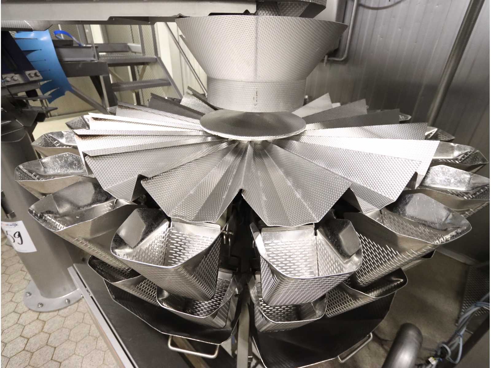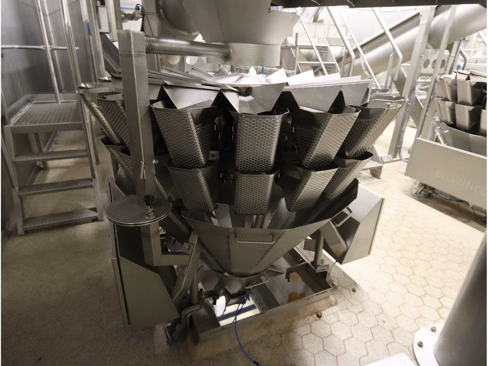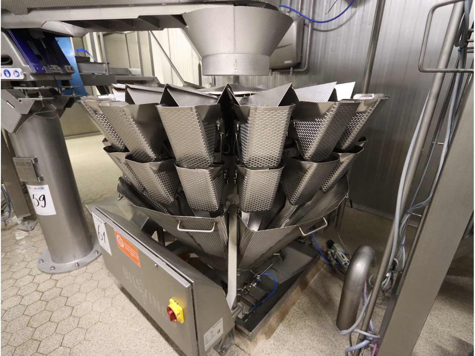 Minimaal weegbereik 10 gram, voorzien mobiel rek met toebehoren en touchscreen paneel, vloer doorvoer niet inbegrepen Merk: Bilwinco Type: BW118W Bouwjaar: 2008 Aantal koppen: 18 Weegbereik max: 2000g Aansluiting: 400V Totale afmeting L: 1200mm Totale afmeting Breedte: 1450mm Totale afmeting Hoogte: 1500mm