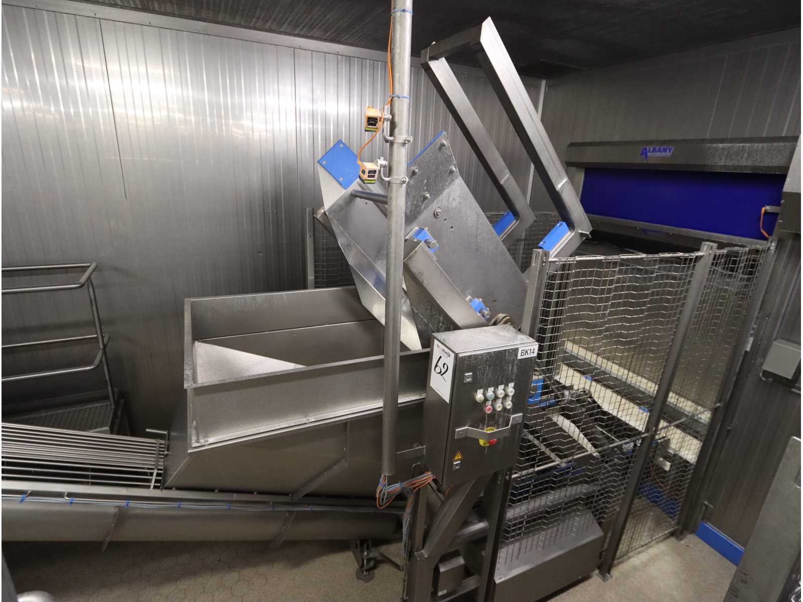 Voorzien van invoer ketting transportbaan, spoorbreedte 850 mm, lengte 2000 mm, inclusief opvoer transportschroef met stortbunker, schroef Ø 400 mm, schroef lengte 4500 mm, uitvoer hoogte 1700 mm, invoer opening bunker circa 1100x1300 mm, zonder bordes en trappen Merk: Nawi Bouwjaar: 2009