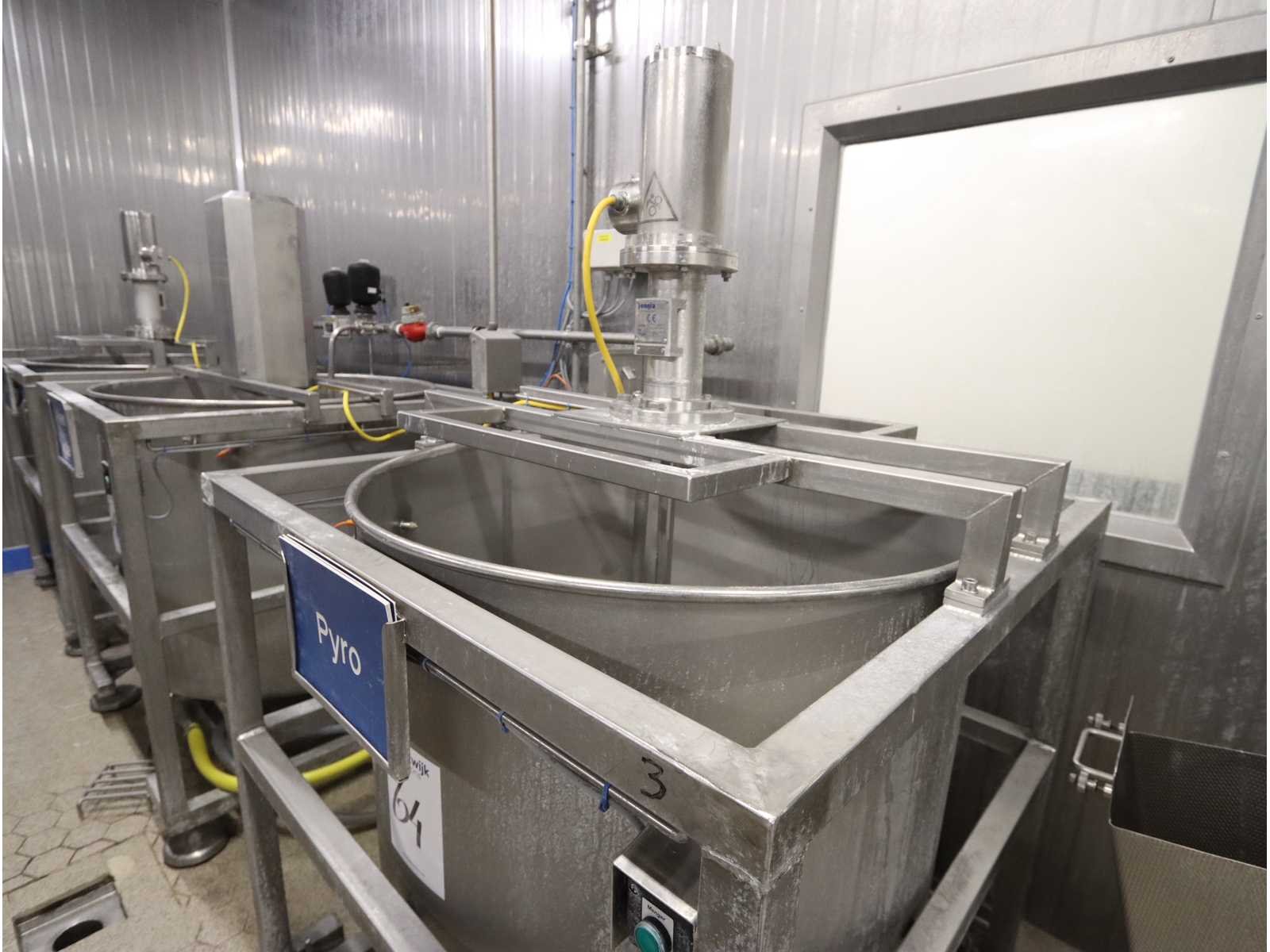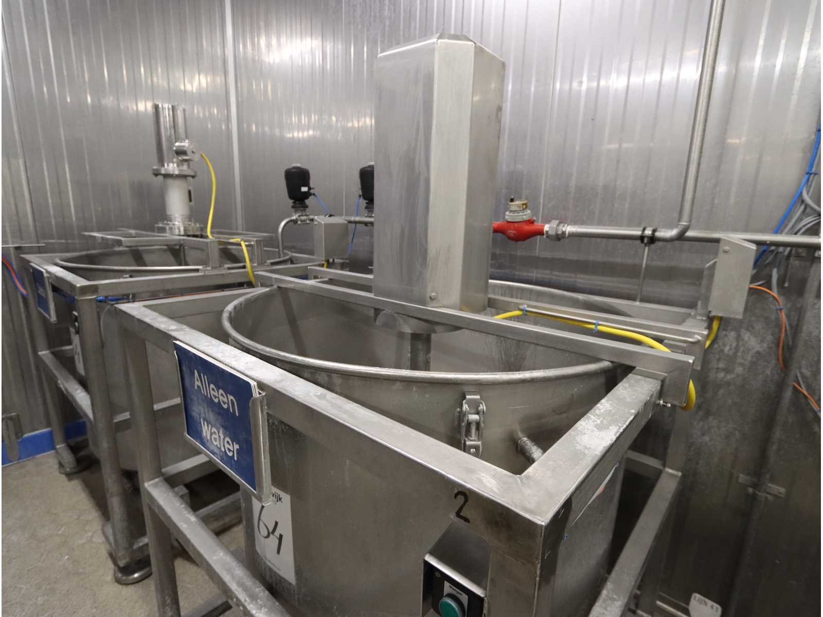 Per stuk voorzien van roerwerk, ketel afmeting 1000x950 mm, in rvs frame 1200x1200 mm, inclusief schakelkast