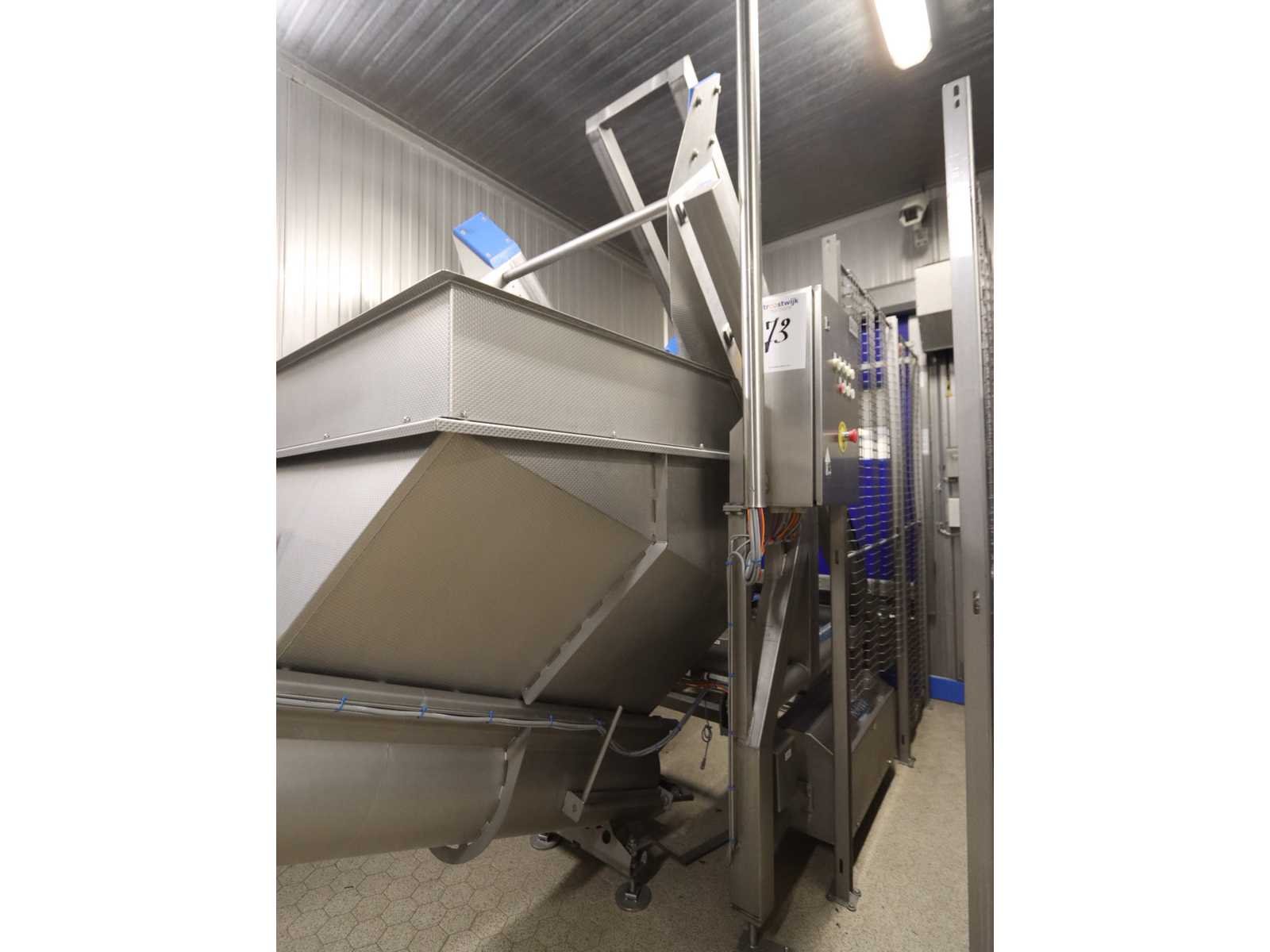 Voorzien van invoer ketting transportbaan, spoorbreedte 850 mm, lengte 2000 mm, inclusief opvoer transportschroef met stortbunker, schroef Ø 400 mm, schroef lengte 4500 mm, uitvoer hoogte 1600 mm, invoer opening bunker circa 1100x1300 mm, zonder bordes en trappen Merk: Nawi Bouwjaar: 2008