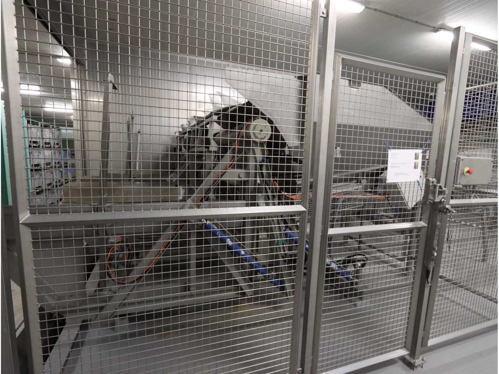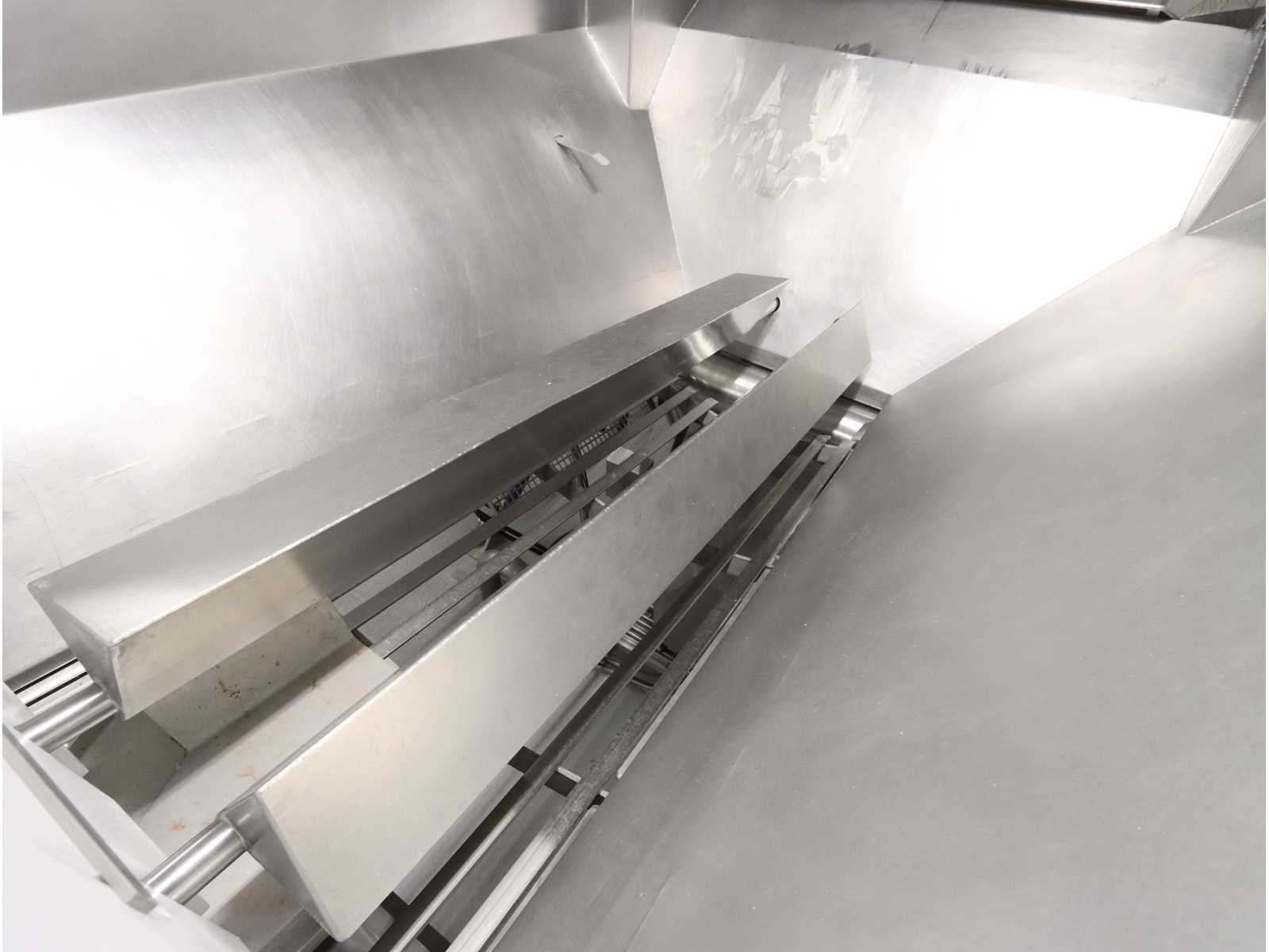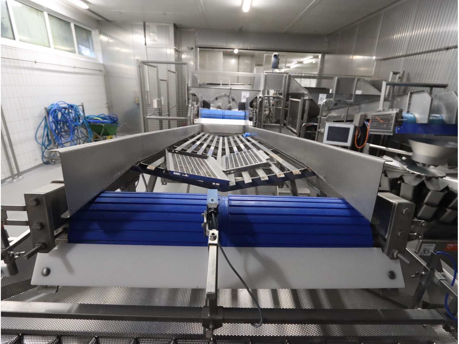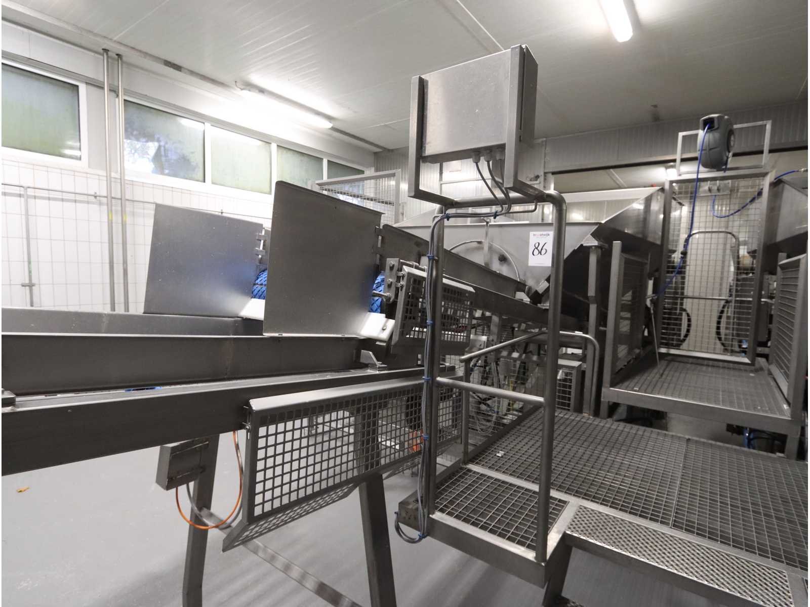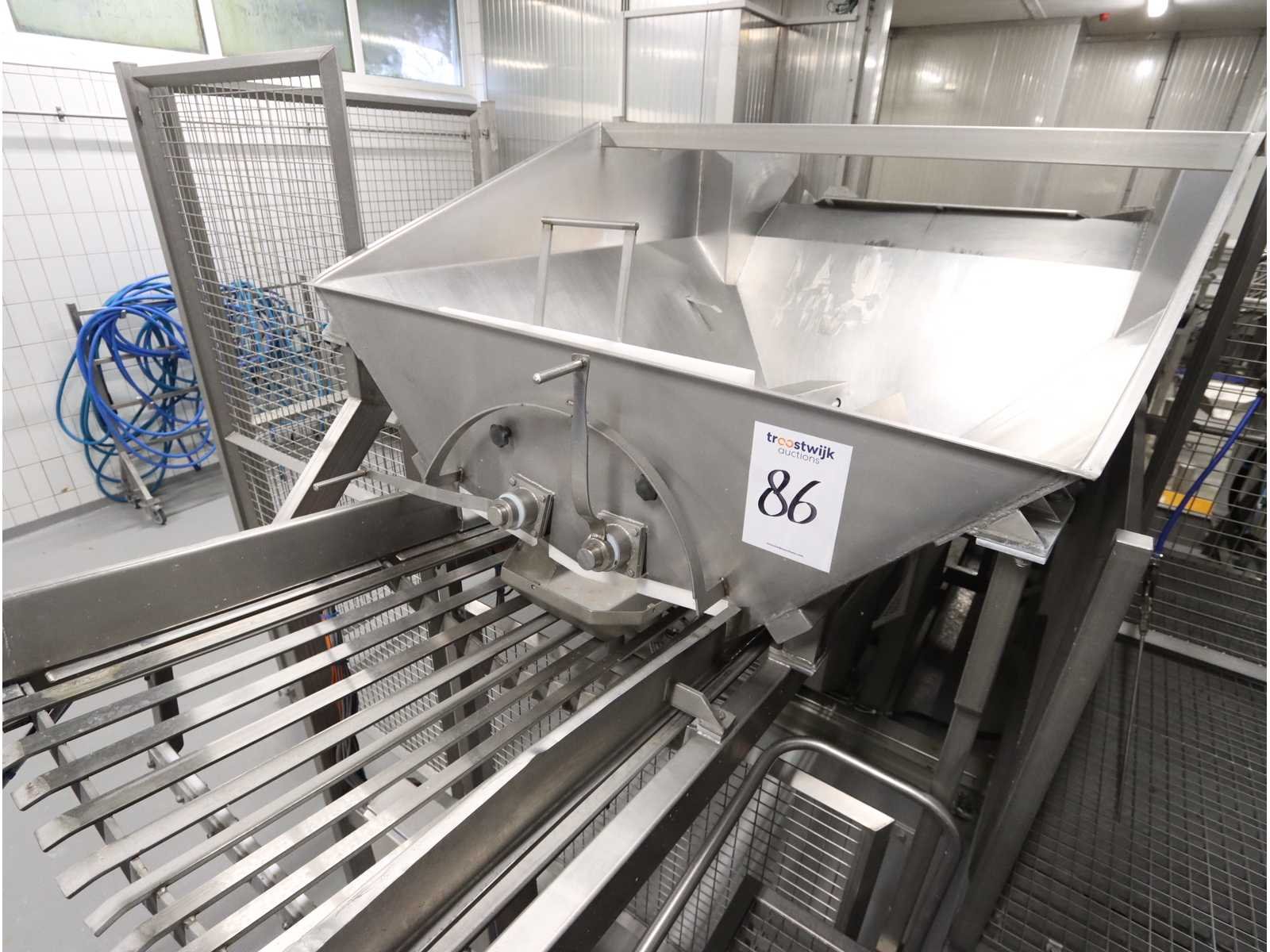 Voorzien van onderlopende transportband (let op band ontbreekt), breedte 800 mm, lengte 5000 mm, hopper opening 2700x1900, bordes en besturing niet inbegrepen