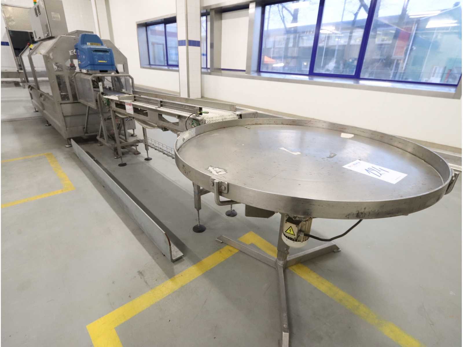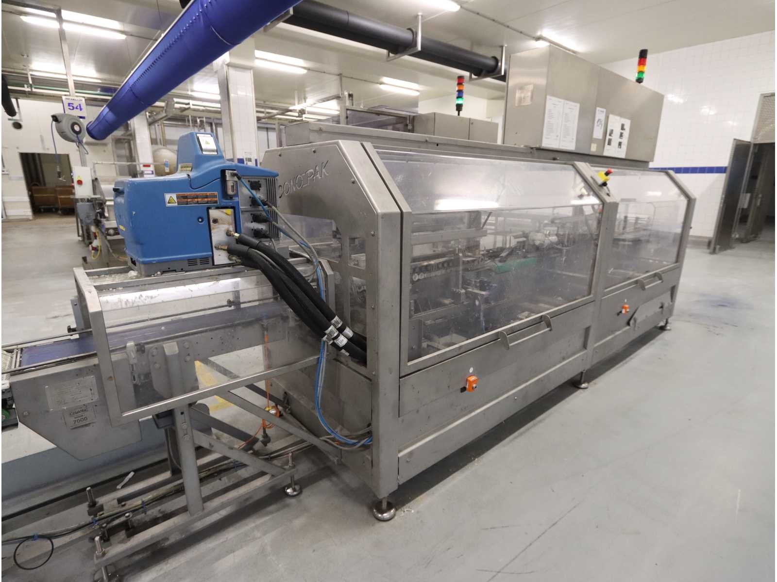 Bestaande uit: dozen opzet unit met bufferstation, opgebouwd voor dozen afmeting 194x126x32, met digitale uitlezing, transportband (lengte 4500 mm), schakelband bocht, dozensluitmachine met “Nordson” hotmelt unit, type problue 4, uitvoer schakel transportband en buffertafel Merk: Econopak Type: FR-V-1300-2/ GF80 Bouwjaar: 2009