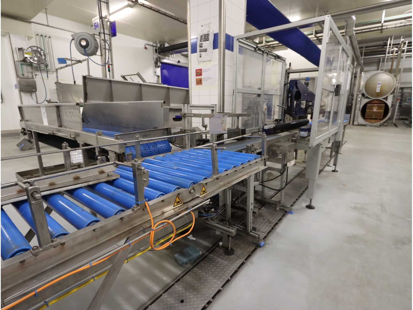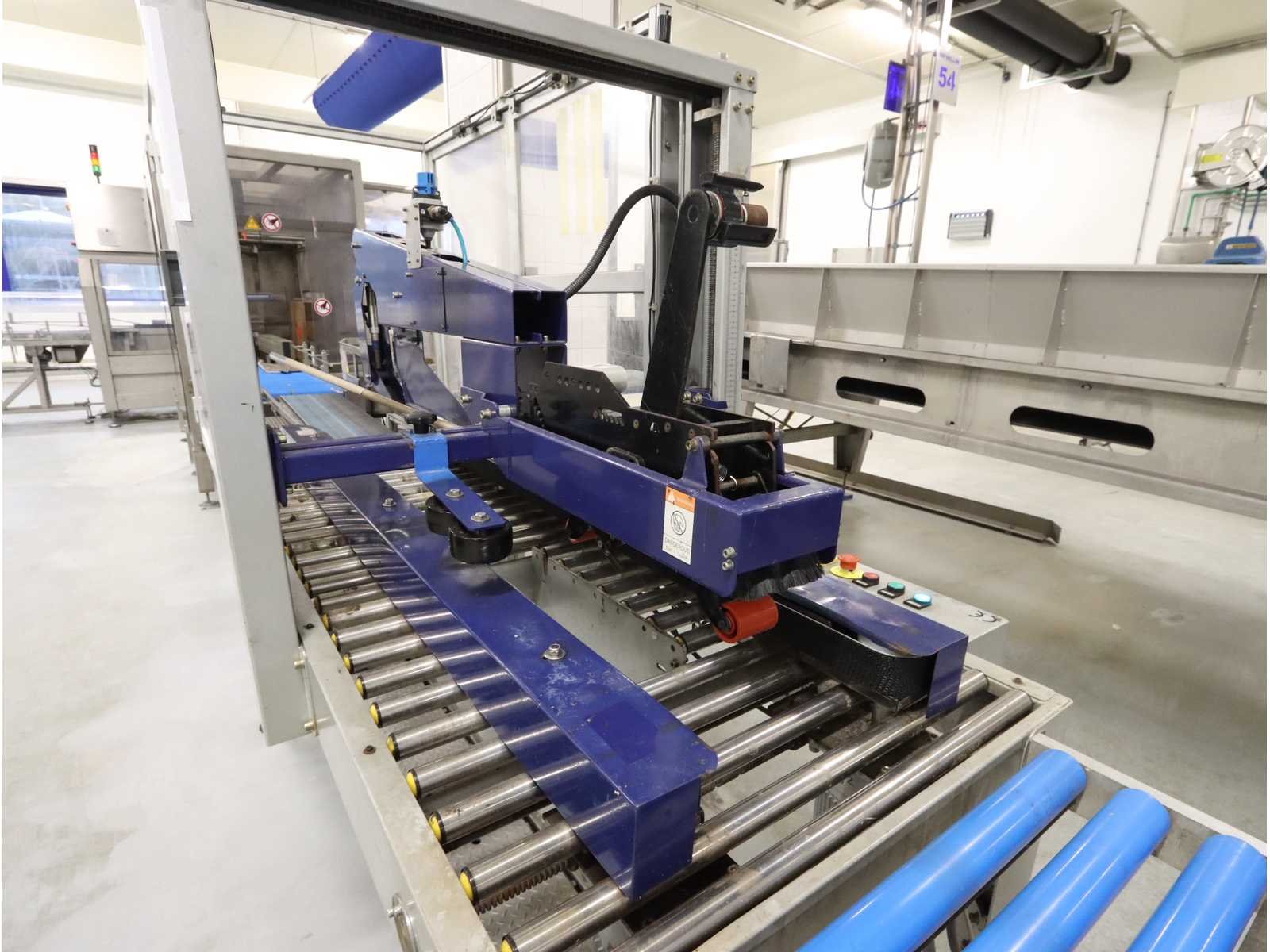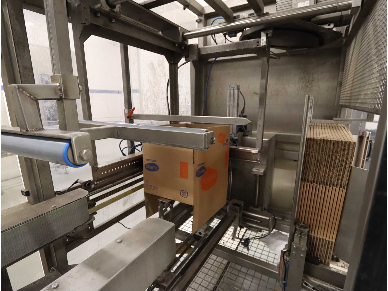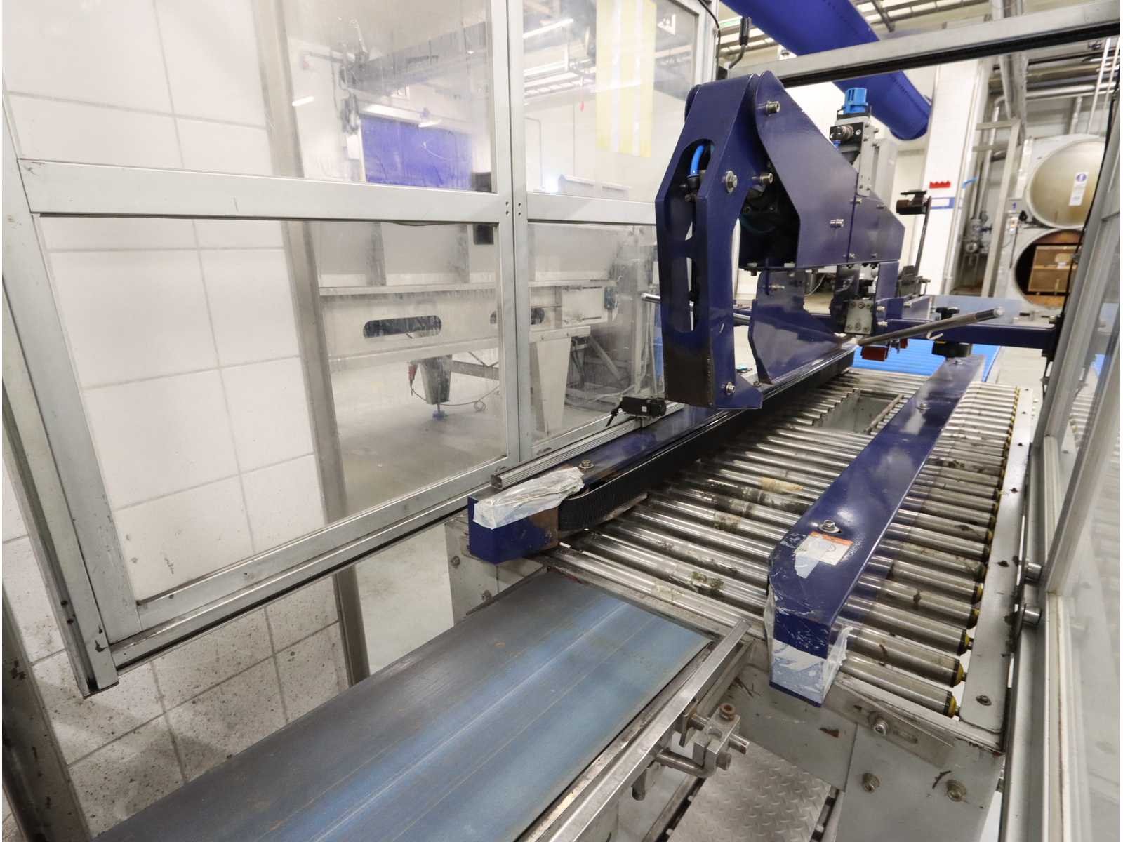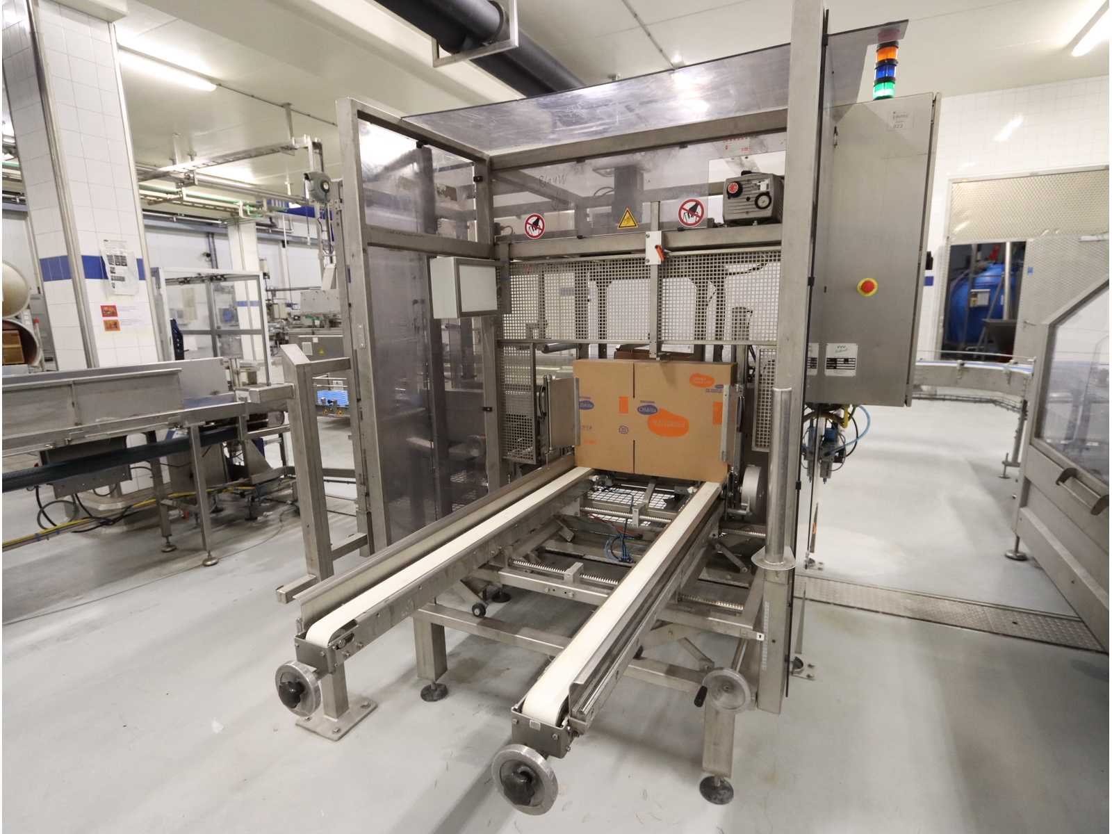 Bestaande uit: dozen opzet machine “Rembrandt” RCE-2 (2000) met ondersluiting, transportband met inktjet coder “Domino”, type C6000, “deWitt” dozen sluiter en uitvoer rollenbaan