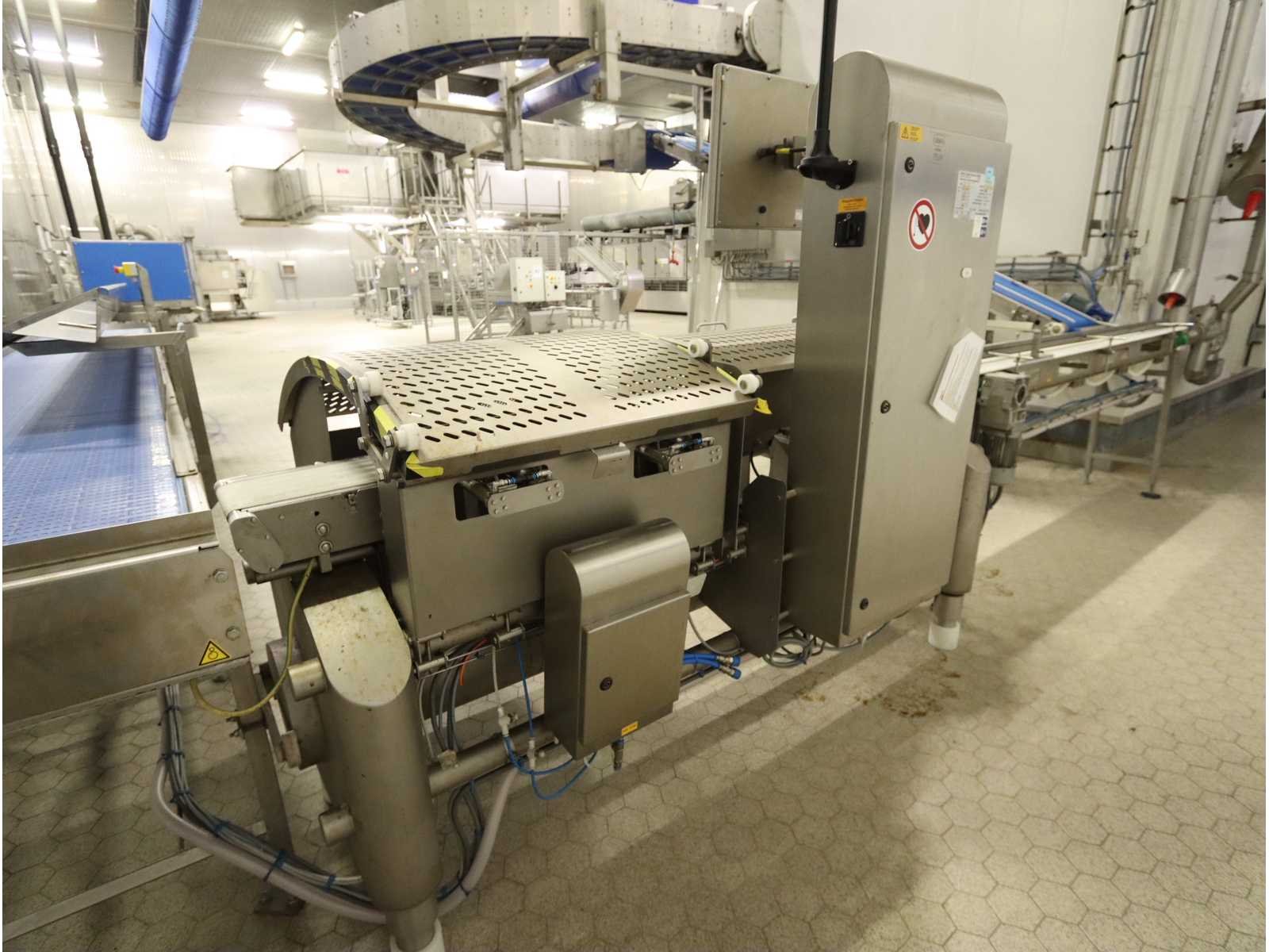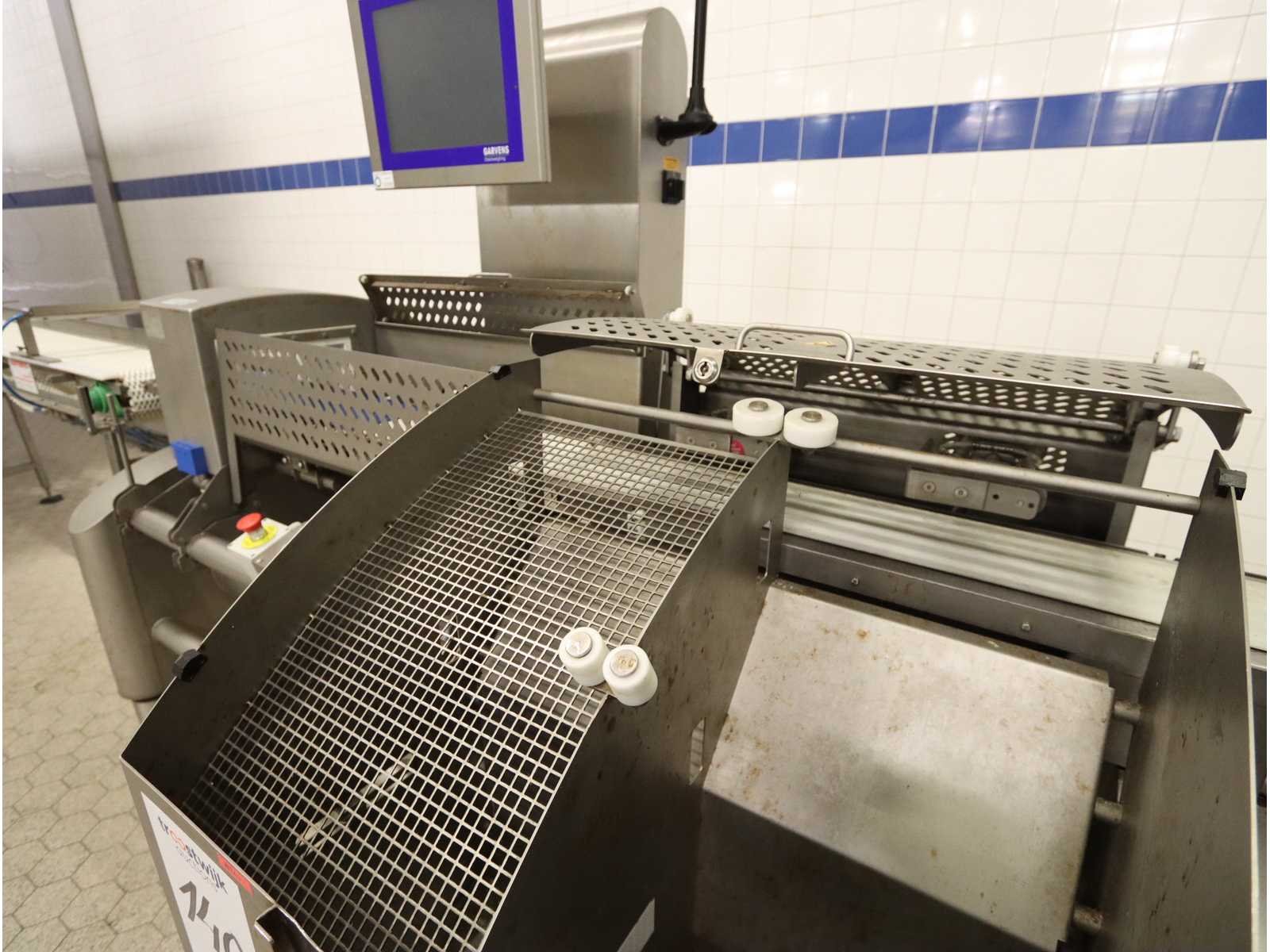 Capaciteit wegingen 50 st./min, voorzien van dubbel uitwerp station en X- touchscreen terminal Merk: Garvens Type: XS3CC Bouwjaar: 2006 Capaciteit.: 2000g Metaaldetector: true Totale afmeting L: 2250mm Totale afmeting Breedte: 1300mm Totale afmeting Hoogte: 1800mm