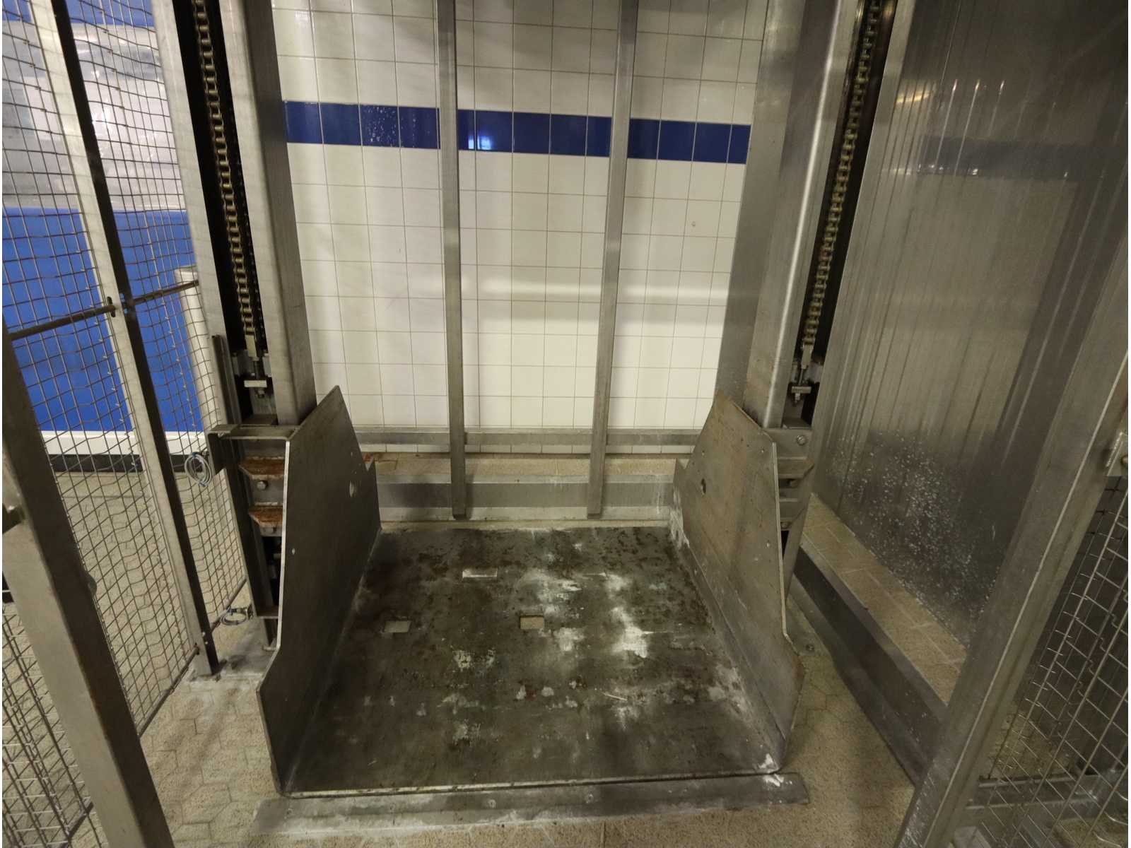 Hef hoogte 4600 mm, voorzien van veiligheidshek en schakelkast Merk: Nawi Capaciteit.: 1250kg Plateau afm. l: 1250mm Plateau afm. b: 1300mm Totale afmeting L: 2400mm Totale afmeting Breedte: 2000mm Totale afmeting Hoogte: 7000mm