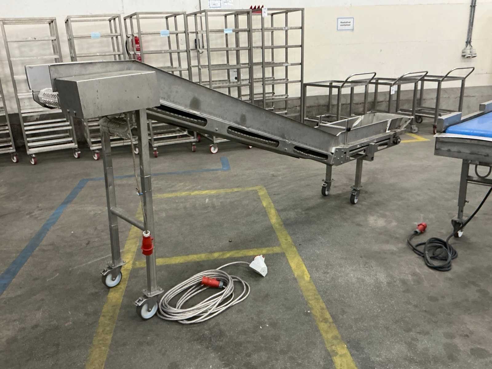 Opvoer hoogte 1300 mm Merk: Helling Transportband afm. b: 350mm Aansluiting: 400V Totale afmeting L: 3200mm