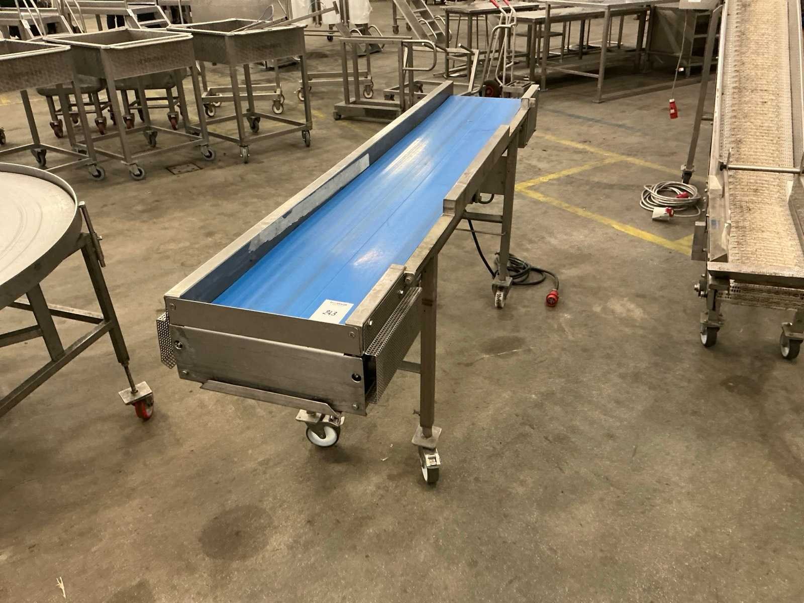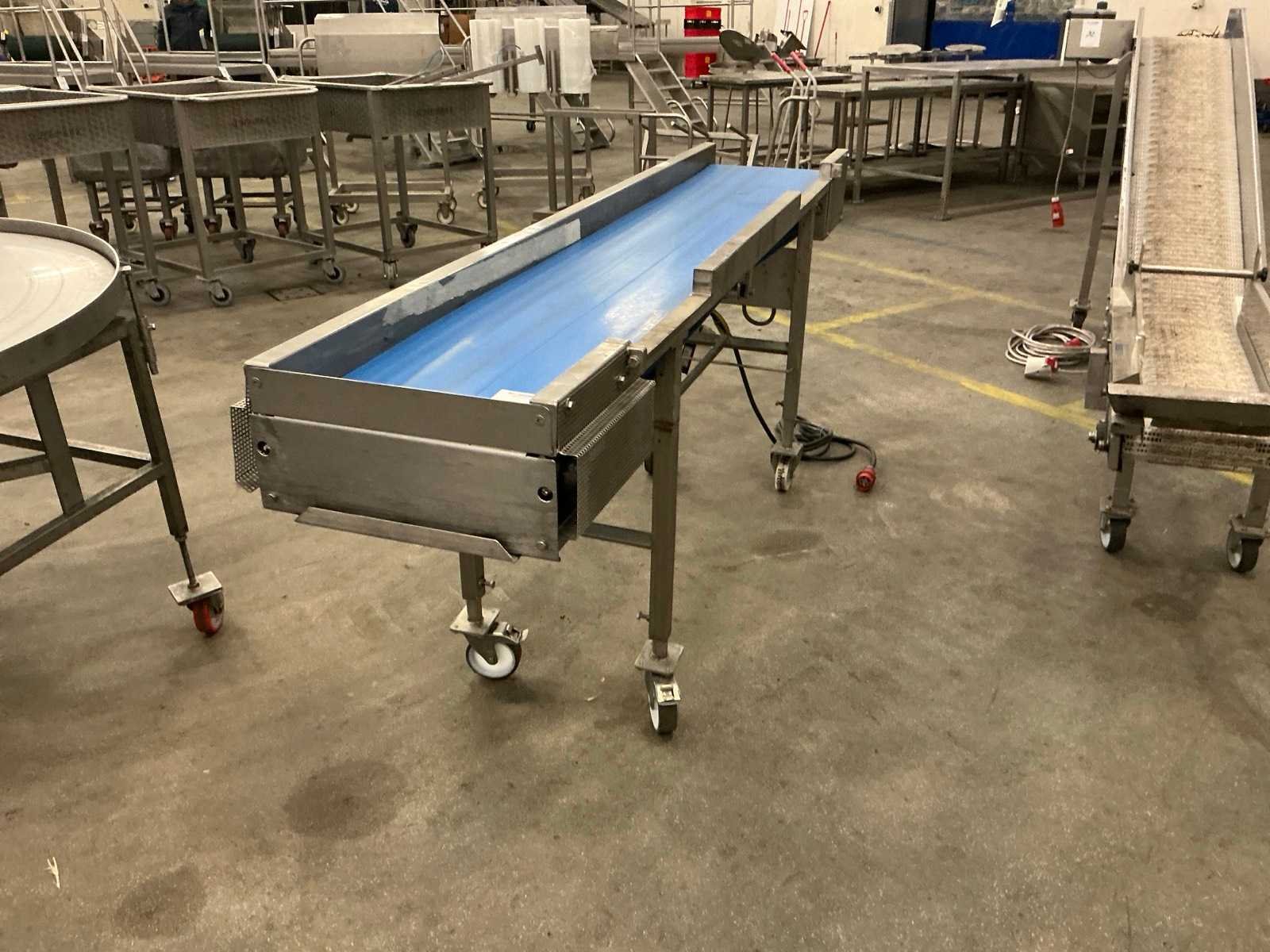 Voorzien van trommelmotor, 400 volt, mobiel Band afm. l: 2450mm Band afm. b: 400mm Totale afmeting L: 2550mm Totale afmeting Breedte: 500mm Totale afmeting Hoogte: 1000mm