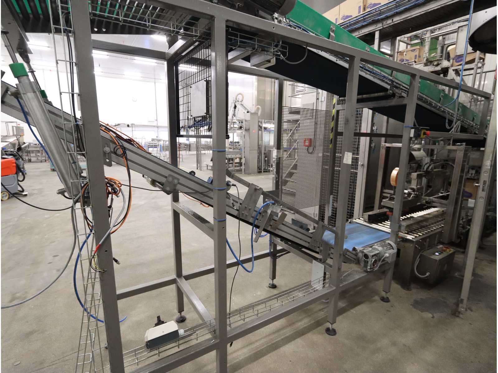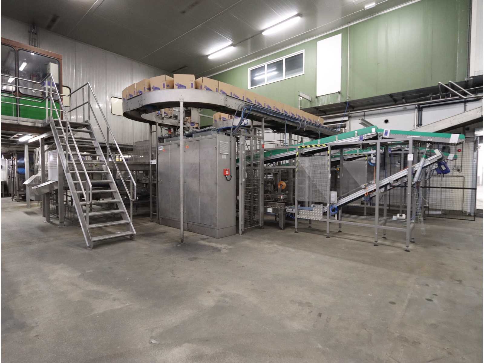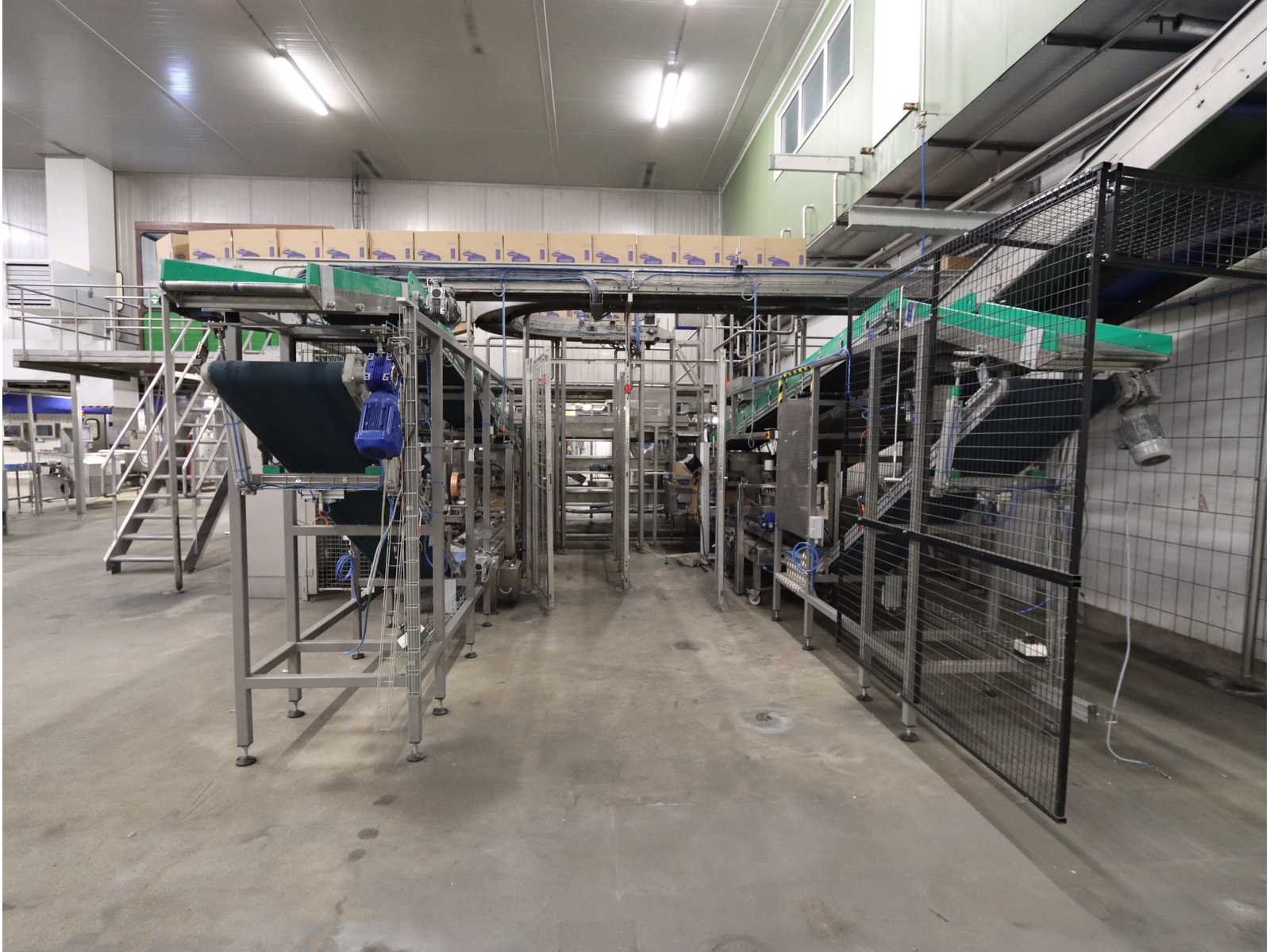 Bestaande uit: Diverse boven en onderlopende transportbanden, dozen liften, dozen sluiters, inkjet printers, besturingskast, etc, gebruikte vloer oppervlakte circa 10.000x11.500mm