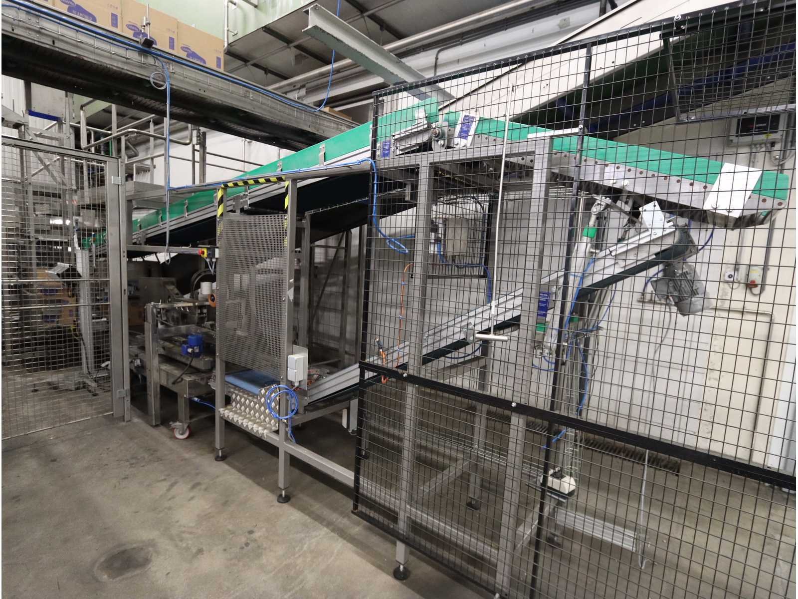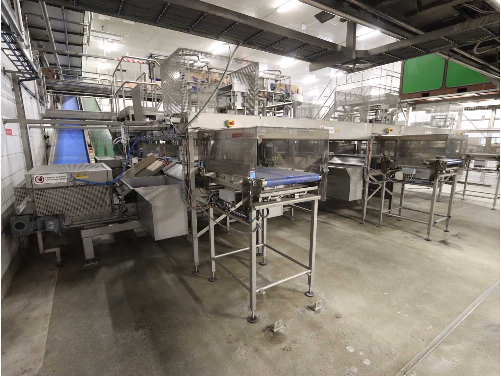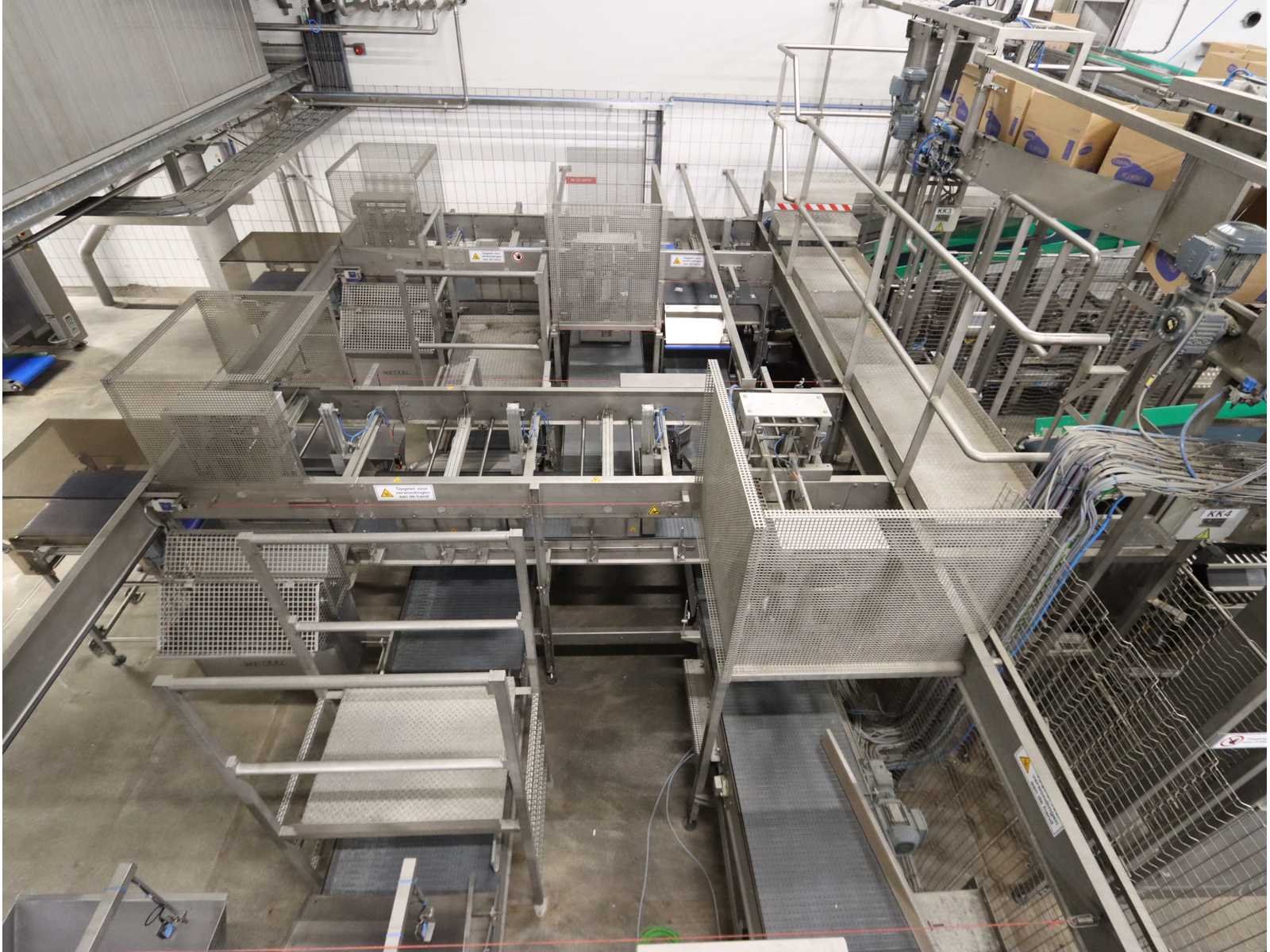 Bestaande uit: Diverse boven en onderlopende transportbanden, dozen liften, dozen sluiters, inkjet printers, besturingskast, etc, gebruikte vloer oppervlakte circa 10.000x11.500mm