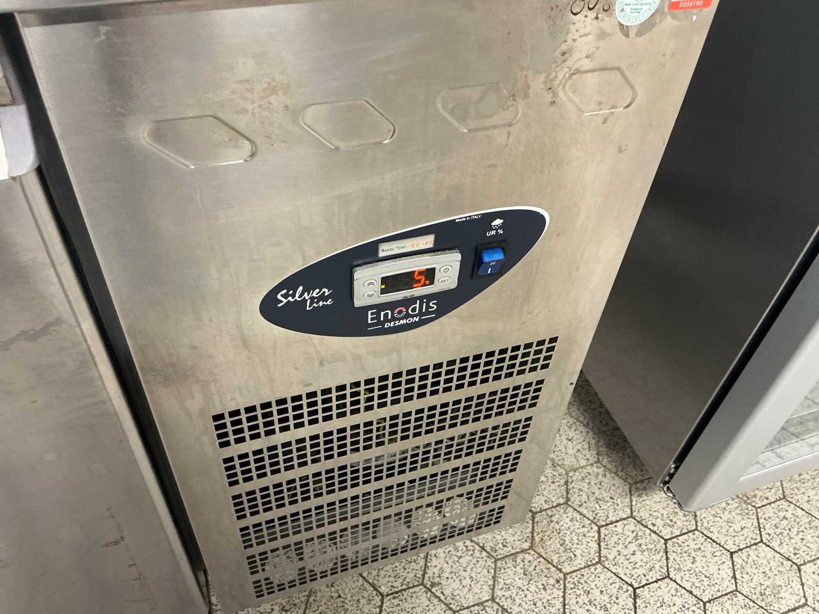 Voorzien van 2 deuren, inclusief 2 werktafels en werktafel met onderkast Merk: Enodis Type: Silver line Totale afmeting L: 700cm Totale afmeting Breedte: 1310cm Totale afmeting Hoogte: 920cm Materiaal: RVS Digitale uitlezing: true Ingebouwde koelcompressor: true Rvs: true Capaciteit.: 240l Aansluiting: 230V