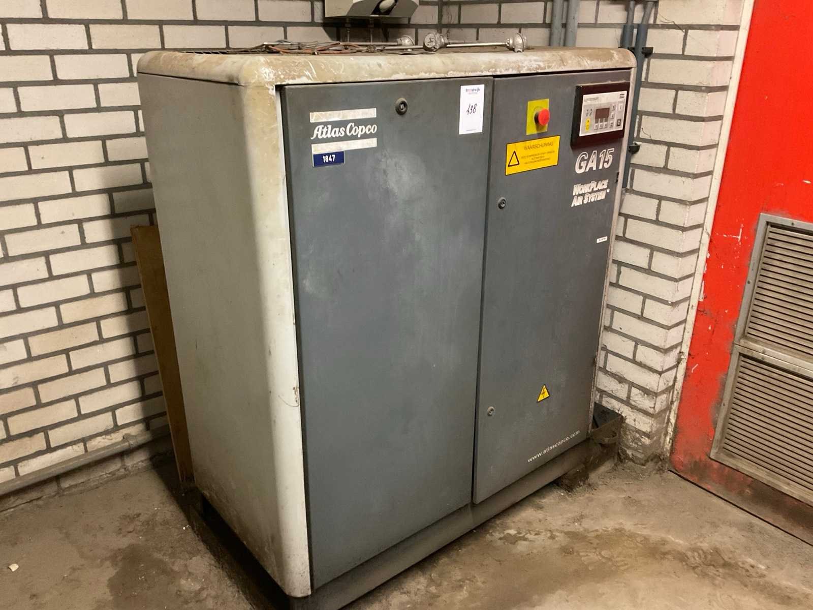 Merk: Atlas Copco Type: GA 15 Bouwjaar: 2001 Aansluiting: 400V
