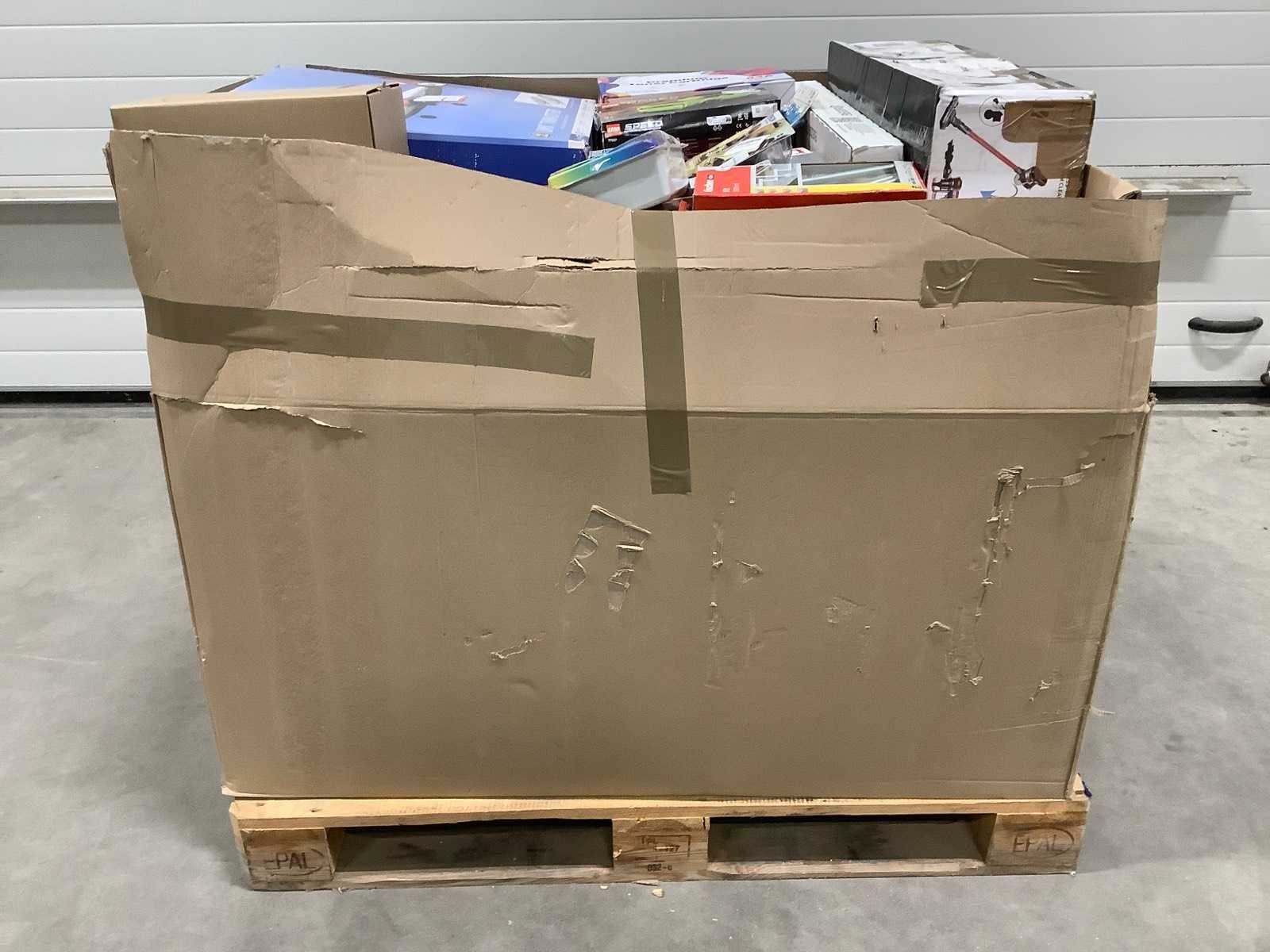 Dit betreft een partij retourgoederen van een grote online retailer. De partij bestaat uit diverse productcategorieën. Ongecontroleerd: werking onbekend (mix van werkend, incompleet, beschadigd, te gebruiken voor onderdelen). Kom op de kijkdag om te om zo een goed beeld te krijgen van de reden van retour. Zie foto's voor lijst met inhoud. Merk: Pallet