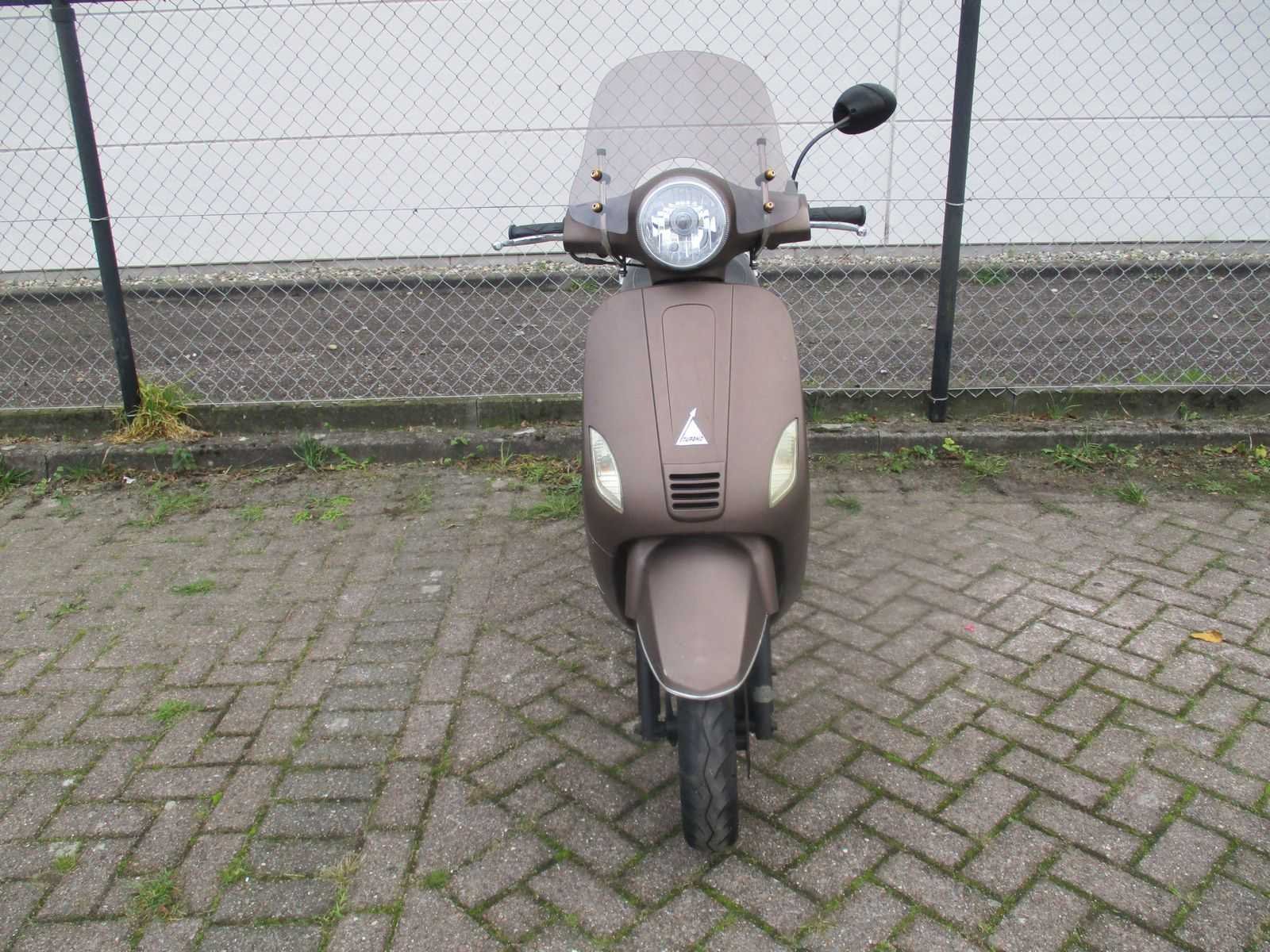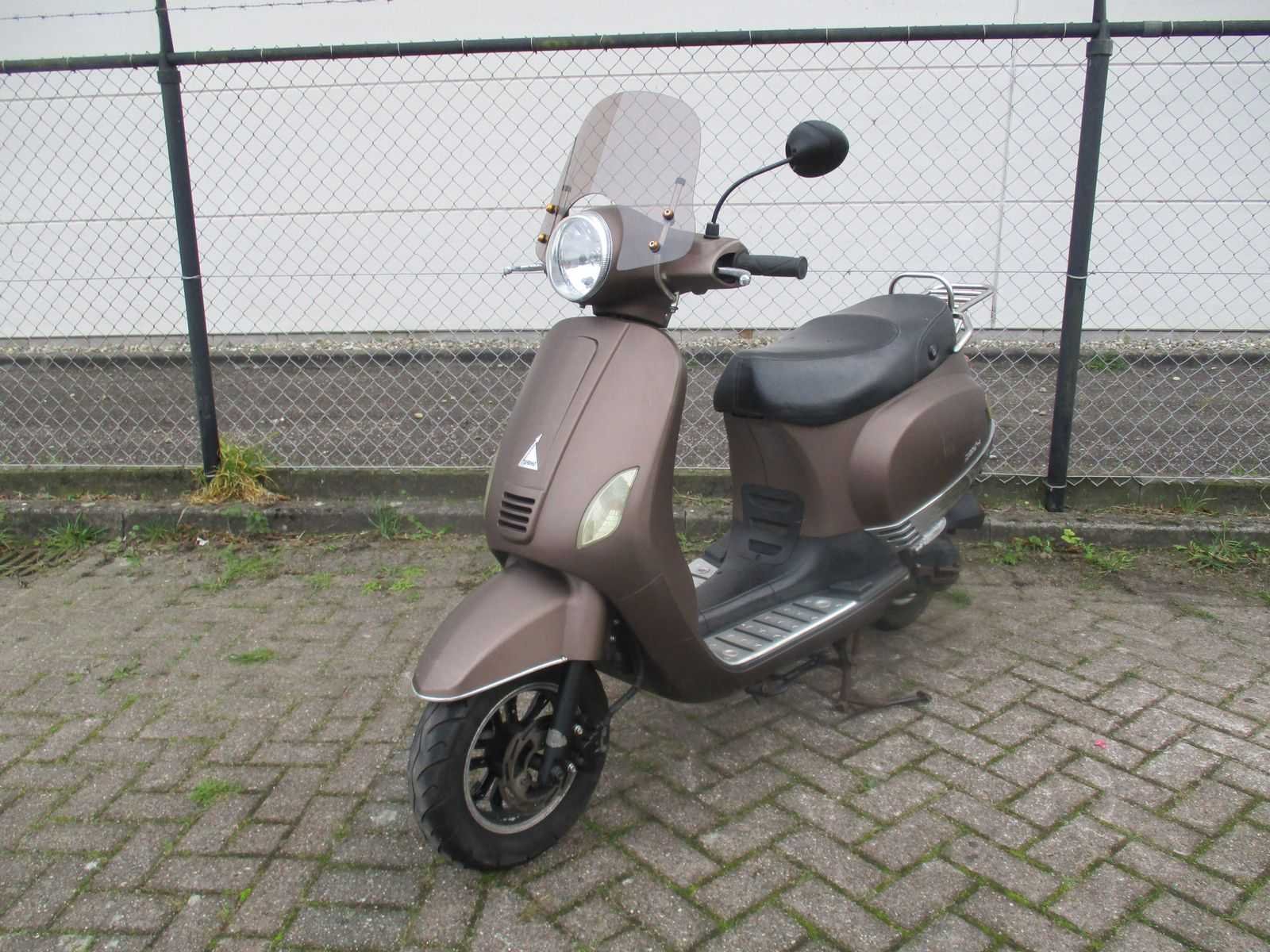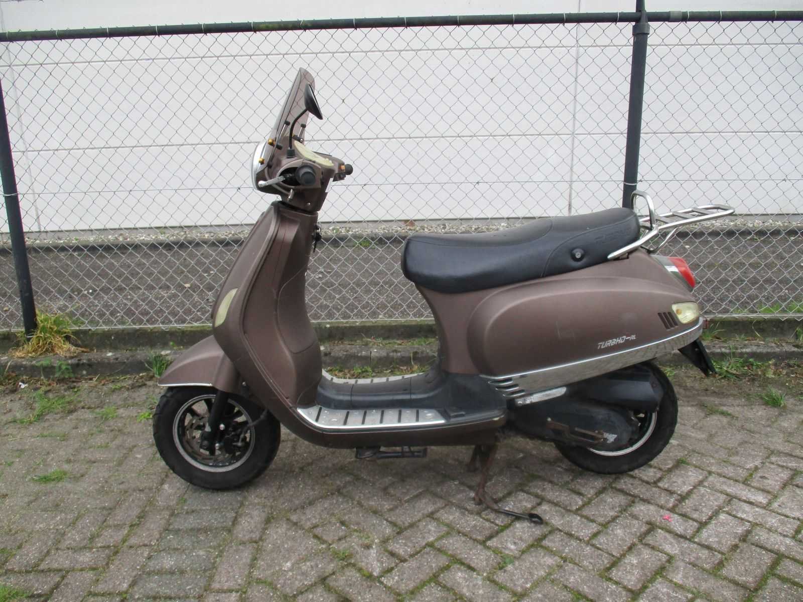 Bromscooter met 2 sleutels inclusief laag windscherm, aluminium treeplankjes en achter rek. Scooter heeft enige tijd stilgestaan en moet weer aan de gang gemaakt worden (compressie voelt normaal aan), verdere technische staat onbekend. Merk: Turbho Model: Bromscooter Type: RL-50 Handelsbenaming: RL-50 Snelheid: 45km/h Kenteken: DGX-45-D Datum eerste toelating: 2016-06-09 Bouwjaar: 09-06-2016 Transmissie: automaat Brandstof: benzine Kleur: niet van toepassing Afgelezen kilometerstand: 14930km