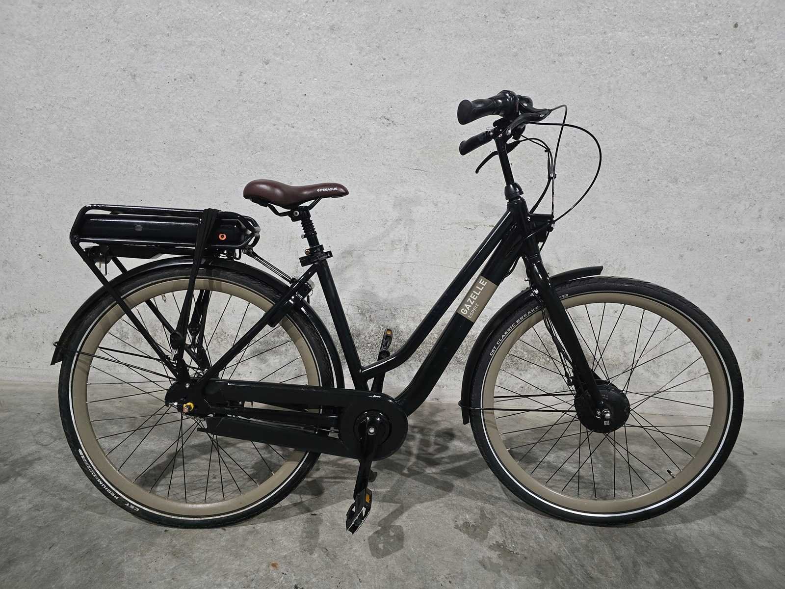 2 sleutels - met oplader - technische / onderhoud staat onbekend - motor ondersteunt , voorwiel staat er wat krom in - Merk: Gazelle Model: Esprit Product type: met oplader Motorpositie: voorwiel Oplader getest: nee Accu getest: nee Framemaat: 49cm Kleur: zwart