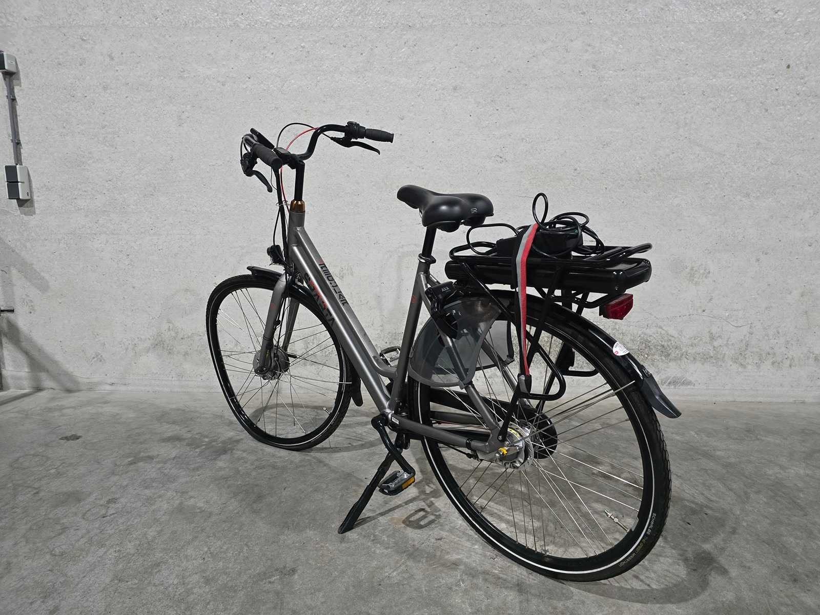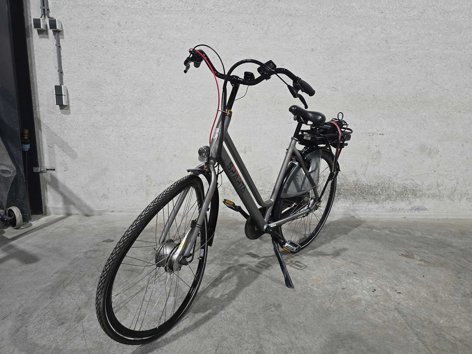 3 sleutels - met oplader - voorwiel krom - technische / onderhoud staat onbekend - rondom beschadigingen - Merk: Sparta Model: Regular Motorpositie: voorwiel Oplader getest: nee Accu getest: nee Remsysteem: trommel Framemaat: 52cm Kleur: grijs