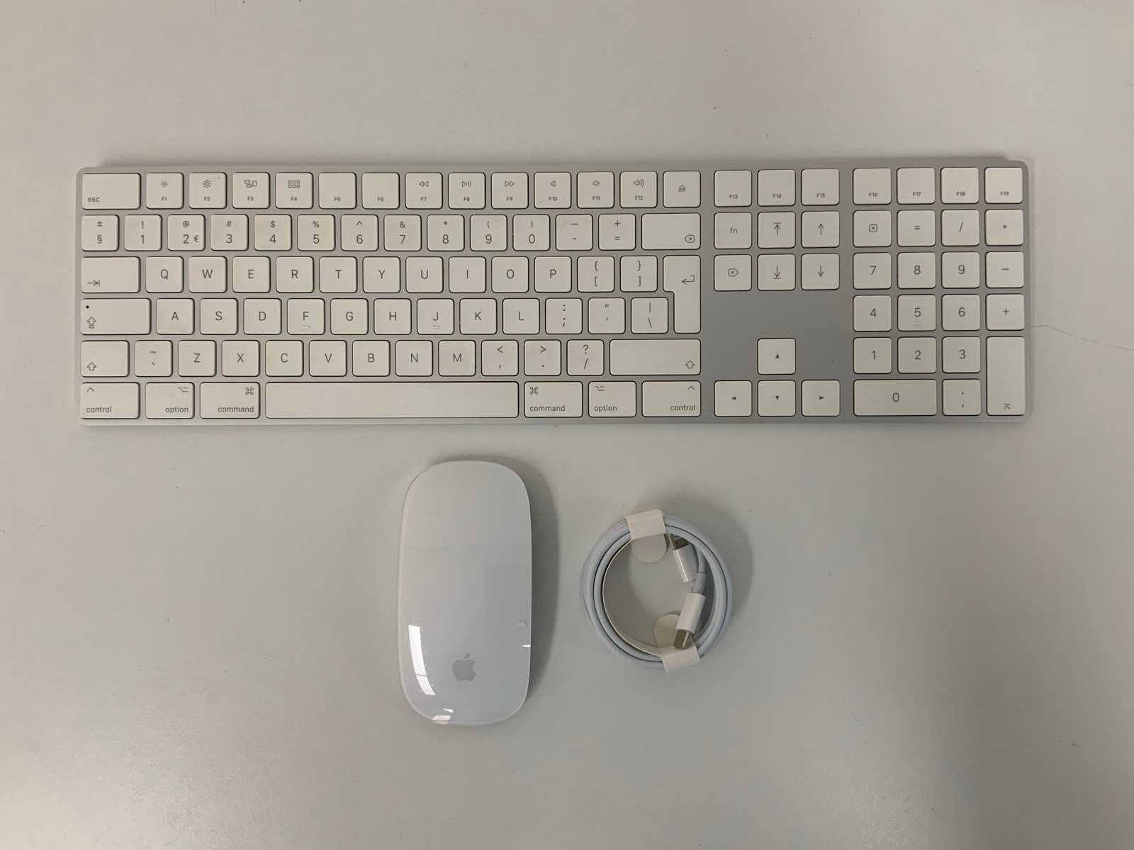 <h2>⌨️ Apple Magic Keyboard (QWERTY) met Numeriek Toetsenblok + Magic Mouse A1657 – Inclusief USB-C Kabel</h2> <p><strong>Model toetsenbord:</strong> Apple Magic Keyboard (QWERTY) met numeriek gedeelte | <strong>Model muis:</strong> Magic Mouse A1657 | <strong>Aansluiting:</strong> Bedraad/Laden via USB-C | <strong>Kleur:</strong> Wit/Zilver</p> <p> Complete Apple set bestaande uit een Apple Magic Keyboard met numeriek toetsenblok en een Apple Magic Mouse A1657. Beide accessoires staan bekend om hun strakke design, hoge bouwkwaliteit en fijne werking met macOS. Deze set wordt geleverd met een USB-C kabel om de apparaten op te laden of te verbinden. </p> <ul> <li>✔️ Apple Magic Keyboard – volledig QWERTY-model met numeriek toetsenblok</li> <li>✔️ Comfortabele en stille toetsaanslag</li> <li>✔️ Magic Mouse A1657 – multi-touch ondersteuning en soepel scrollen</li> <li>✔️ Naadloze integratie met macOS</li> <li>✔️ Inclusief USB-C kabel – voor opladen en gebruik</li> <li>✔️ Ideaal voor werkplek thuis of op kantoor</li> </ul> <p> <strong>Conditie:</strong> Gebruikt – lichte gebruikssporen kunnen aanwezig zijn. Volledig getest en werkt zoals het hoort. Bekijk de foto’s voor de exacte staat van de items. </p> <p> 🌱 <strong>Duurzame keuze:</strong> Door te kiezen voor gebruikte Apple accessoires draag je bij aan een langere levensduur van hoogwaardige producten en minder elektronisch afval. </p> Within 14 days Merk: Apple