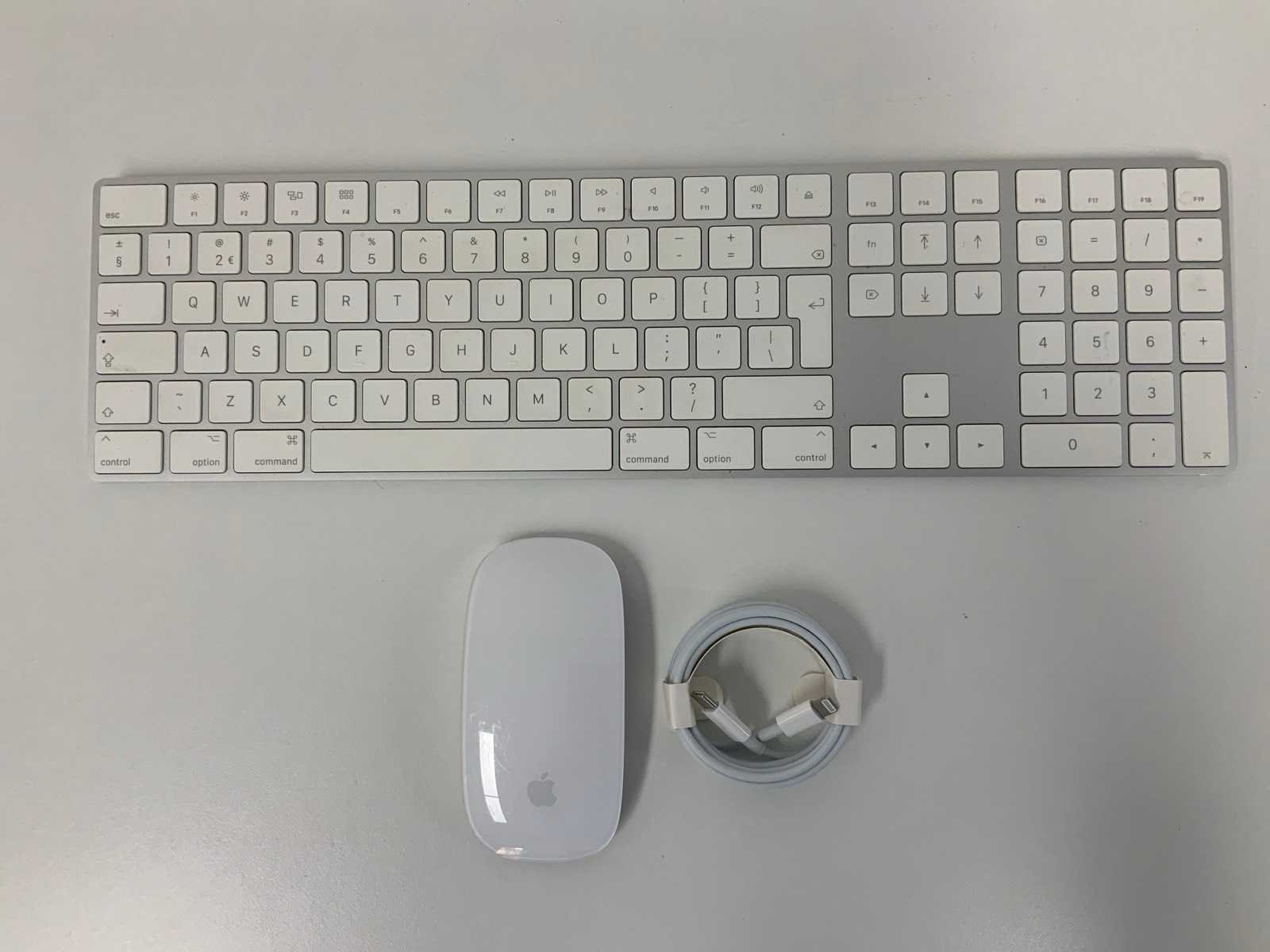 <h2>⌨️ Apple Magic Keyboard (QWERTY) met Numeriek Toetsenblok + Magic Mouse A1657 – Inclusief USB-C Kabel</h2> <p><strong>Model toetsenbord:</strong> Apple Magic Keyboard (QWERTY) met numeriek gedeelte | <strong>Model muis:</strong> Magic Mouse A1657 | <strong>Aansluiting:</strong> Bedraad/Laden via USB-C | <strong>Kleur:</strong> Wit/Zilver</p> <p> Complete Apple set bestaande uit een Apple Magic Keyboard met numeriek toetsenblok en een Apple Magic Mouse A1657. Beide accessoires staan bekend om hun strakke design, hoge bouwkwaliteit en fijne werking met macOS. Deze set wordt geleverd met een USB-C kabel om de apparaten op te laden of te verbinden. </p> <ul> <li>✔️ Apple Magic Keyboard – volledig QWERTY-model met numeriek toetsenblok</li> <li>✔️ Comfortabele en stille toetsaanslag</li> <li>✔️ Magic Mouse A1657 – multi-touch ondersteuning en soepel scrollen</li> <li>✔️ Naadloze integratie met macOS</li> <li>✔️ Inclusief USB-C kabel – voor opladen en gebruik</li> <li>✔️ Ideaal voor werkplek thuis of op kantoor</li> </ul> <p> <strong>Conditie:</strong> Gebruikt – lichte gebruikssporen kunnen aanwezig zijn. Volledig getest en werkt zoals het hoort. Bekijk de foto’s voor de exacte staat van de items. </p> <p> 🌱 <strong>Duurzame keuze:</strong> Door te kiezen voor gebruikte Apple accessoires draag je bij aan een langere levensduur van hoogwaardige producten en minder elektronisch afval. </p> Within 14 days Merk: Apple