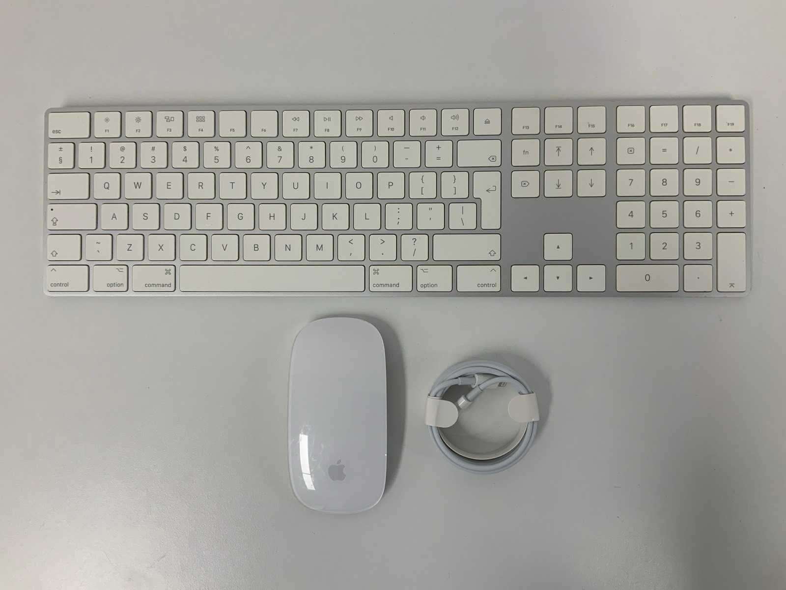 <h2>⌨️ Apple Magic Keyboard (QWERTY) met Numeriek Toetsenblok + Magic Mouse A1657 – Inclusief USB-C Kabel</h2> <p><strong>Model toetsenbord:</strong> Apple Magic Keyboard (QWERTY) met numeriek gedeelte | <strong>Model muis:</strong> Magic Mouse A1657 | <strong>Aansluiting:</strong> Bedraad/Laden via USB-C | <strong>Kleur:</strong> Wit/Zilver</p> <p> Complete Apple set bestaande uit een Apple Magic Keyboard met numeriek toetsenblok en een Apple Magic Mouse A1657. Beide accessoires staan bekend om hun strakke design, hoge bouwkwaliteit en fijne werking met macOS. Deze set wordt geleverd met een USB-C kabel om de apparaten op te laden of te verbinden. </p> <ul> <li>✔️ Apple Magic Keyboard – volledig QWERTY-model met numeriek toetsenblok</li> <li>✔️ Comfortabele en stille toetsaanslag</li> <li>✔️ Magic Mouse A1657 – multi-touch ondersteuning en soepel scrollen</li> <li>✔️ Naadloze integratie met macOS</li> <li>✔️ Inclusief USB-C kabel – voor opladen en gebruik</li> <li>✔️ Ideaal voor werkplek thuis of op kantoor</li> </ul> <p> <strong>Conditie:</strong> Gebruikt – lichte gebruikssporen kunnen aanwezig zijn. Volledig getest en werkt zoals het hoort. Bekijk de foto’s voor de exacte staat van de items. </p> <p> 🌱 <strong>Duurzame keuze:</strong> Door te kiezen voor gebruikte Apple accessoires draag je bij aan een langere levensduur van hoogwaardige producten en minder elektronisch afval. </p> Within 14 days Merk: Apple