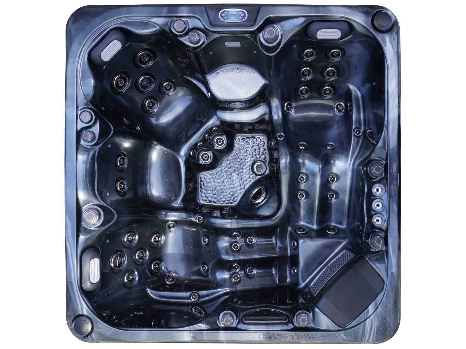 Bluetooth met 2 popup speakers, kunststof onderhoudsvrije ombouw, besturing balboa (Balboa BP6013+TP600 Balboa heater (3000 watt), 2 massage pompen (3pk per stuk), 24h circulatiepomp (370watt), 2 liglaatsen en 3 zitplaatsen (3 plaatsen voorzien van hoofdkussen), afdek cover inclusief, totaal 54 stainless steel RVS jets, extra nek en voet massage jets, vorst beveiliging, ozone desinfectie systeem, diverse leds verlichting langs de waterrand, 3 fontein jets, waterval, diverse regelknoppen om de de kracht en de verdeling naar de jets te regelen, oppervlakte en reinigingsfilter, kuip extra dikke foam isolatie + extra isolatie aan de buitenwanden, waterafvoer, inclusief trapje, deze spa zit vol met alle mogelijk bestelbare opties, dit betreft een nieuw product in verpakking. Merk: Mawialux Vermogen: 7875W Spanning: 220-380V Filters: 2 Verlichting: diverse leds met kleurentherapie (7 kleuren) op waterniveau Inhoud: 1500l Pompen: 3 Jets: 54 Aantal personen: 5 Kleur: T10 Silver white marble (wit) of cloud dark (zwart) met donker grijze ombouw Gewicht: 400kg Lengte: 220cm Breedte: 220cm Hoogte: 94cm Materiaal: USA Lucite acryl + Aluminium frame + kunststof ombouw + PVC gesloten bodem
