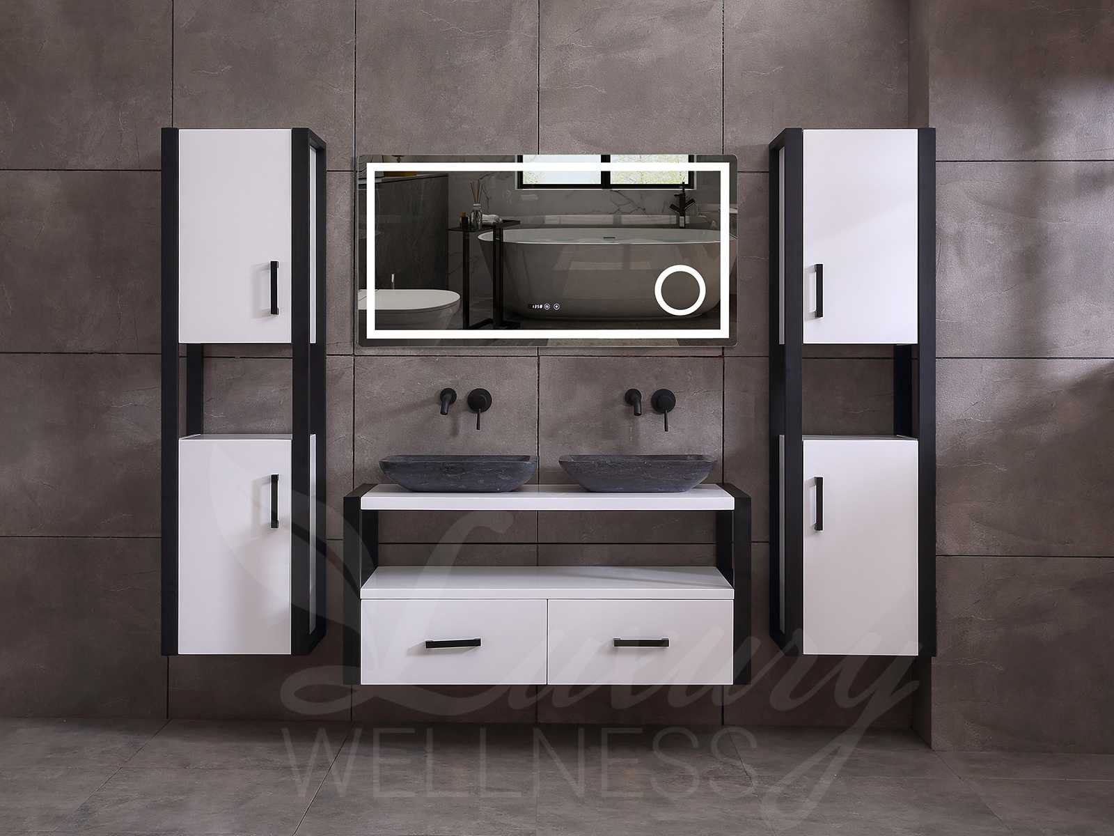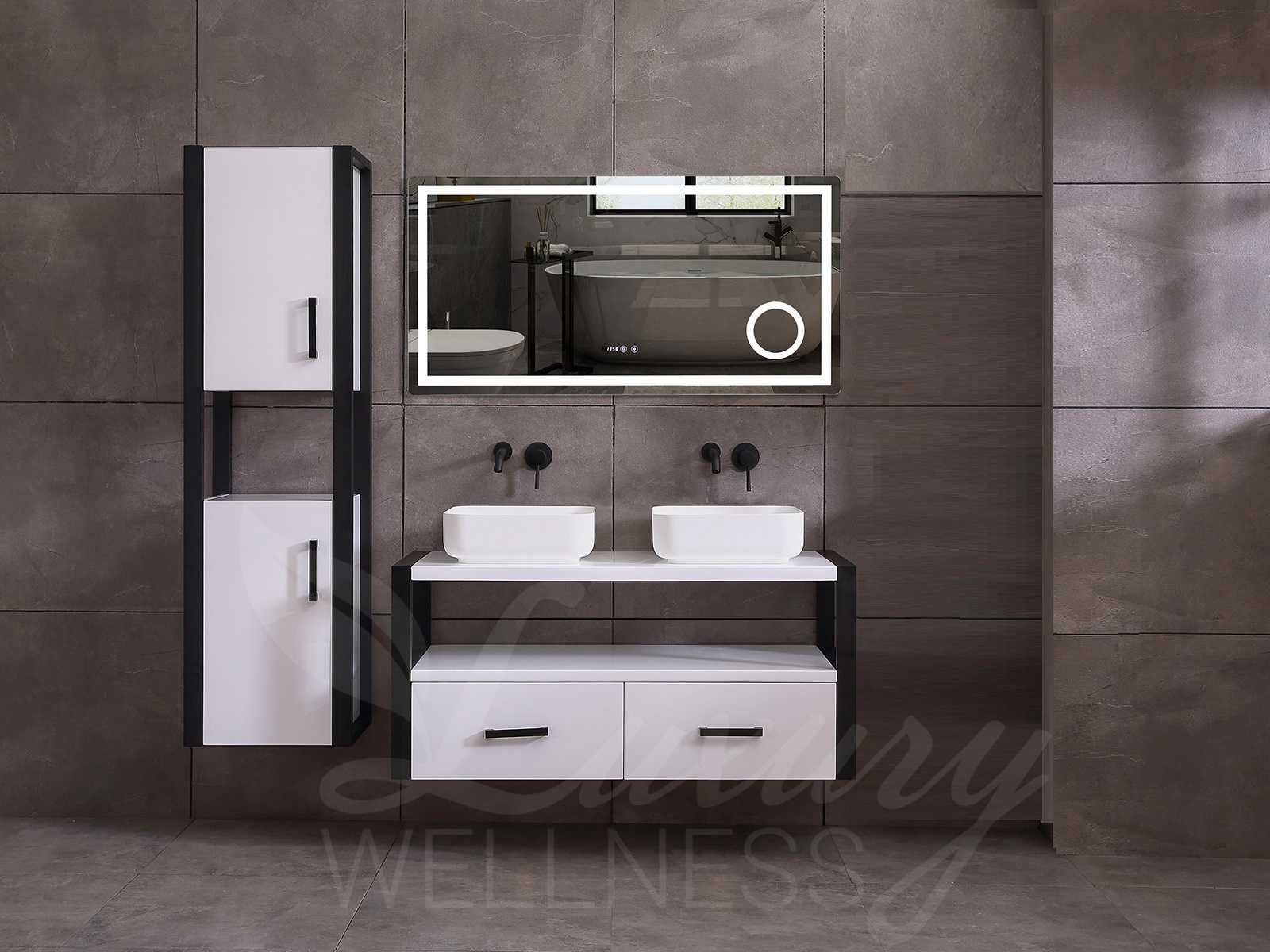 Afmeting meubel bxdxh 120x50x55cm - hangkast 35x35x160cm, kleur mat wit, materiaal 2cm massief eiken (front) met 3cm massief top overige en 5-laags multiplex(zeer sterk en vochtbestendig), Hangkast softclose deuren en extra planchets (hangkast is universeel en kan zowel links als rechts naast het meubel gehangen worden), kranen exclusief , Lades 2 stuks met softclose, Wastafel natuursteen of solid surface (keuze uit diverse modellen van de laatste foto's, kraangaten zijn nog niet in het top voorgeboord zodat u muurkranen of kranen uit het blad kan gebruiken, led spiegel met verwarming en ledverlichting, 220volt stekker(plug and play), verwarming ter voorkoming van condens, 1.5mm kopervrij met explosion-proof laag met dezelfde functie als gehard glas(de spiegel mag geruild worden voor een ander model/type), afvoeren exclusief, Conditie: Nieuw in doos, Bijzonderheden 2 jaar garantie, compleet met installatie materiaal, zeer hoge kwaliteit, let op! de hangkast mag geruild worden voor een set kranen en popup afvoeren naar keus of als u een extra hangkast nodig graag op de afhaaldag aangeven voor een passende aanbieding Merk: Mawialux Model: Philip Hoogte: 55cm Lengte: 50cm Breedte: 120cm Materiaal: Eiken Kleur: Mat wit Kraan: exclusief Wastafel: diverse keuzes Waskom: diverse keuzes Spiegel met verlichting: ja Verlichting: ja Lades: 2 Softclose: true Bevestigingsmateriaal: true Zijkast: ja 1x Afmeting hangkast: LxBxH 35x35x160