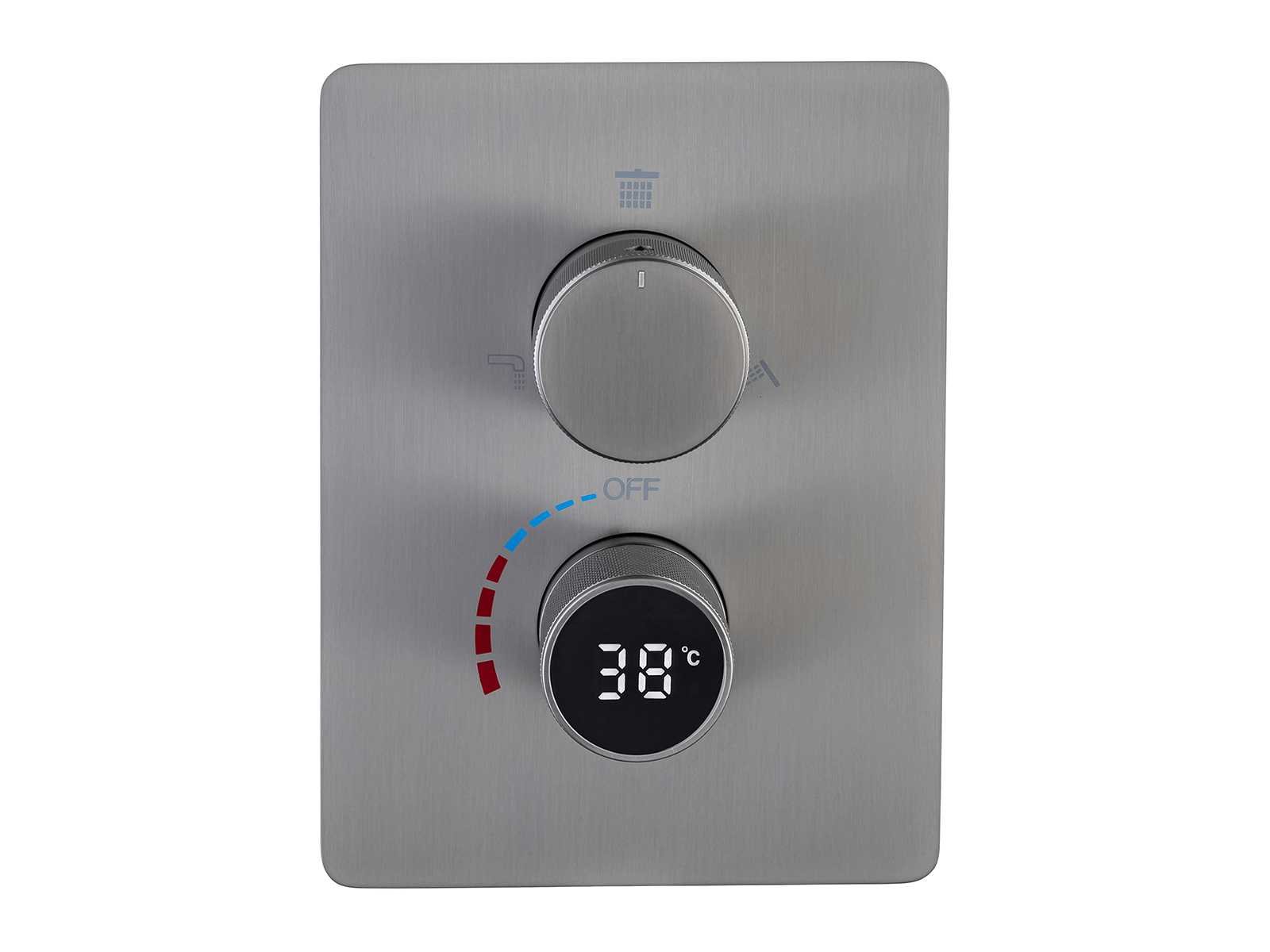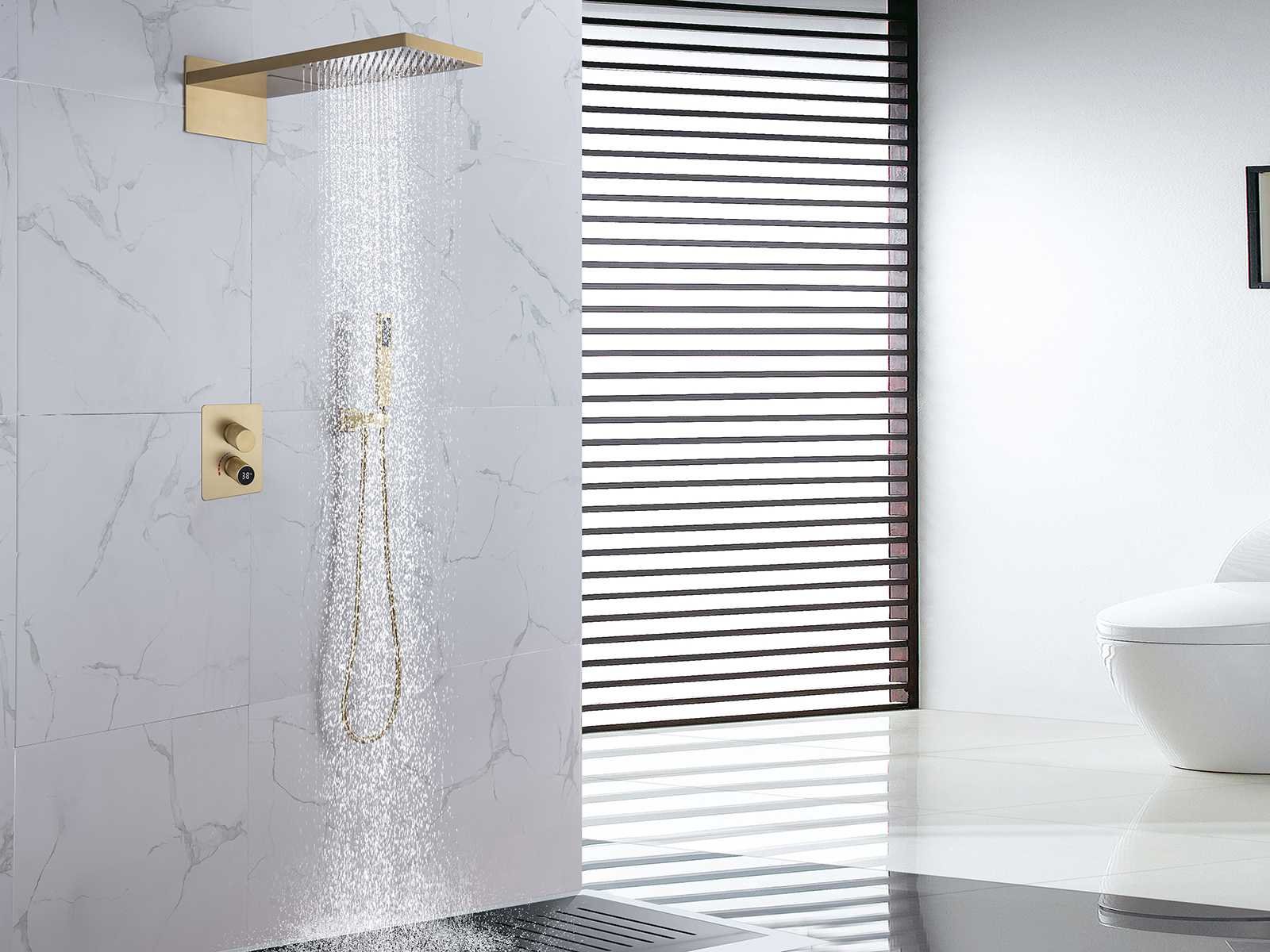 Kleurkeuze in 3 kleuren: Mat zwart of gunmetal grey(kleurkeuze op afhaaldag aangeven), materiaal messing en 304 rvs, mengkraan, binnenwerk keramisch, douchekop L55xB23cm, handdouche verstelbaar met doucheslang en ophanging van messing, douchekop met 2 waterfuncties (waterval en regendouche) met kunststof wateruitlopen, voorzien van digitale micromotor aansturing door middel van waterflow, geen stroom nodig, temperatuur digitaal afleesbaar, digitale aanduiding tijdsduur, anti kalk behandeld, messing muurplaat, met inbouwbox voor makkelijke installatie, dit betreft een nieuw product in verpakking Merk: Mawialux Model: Jayden