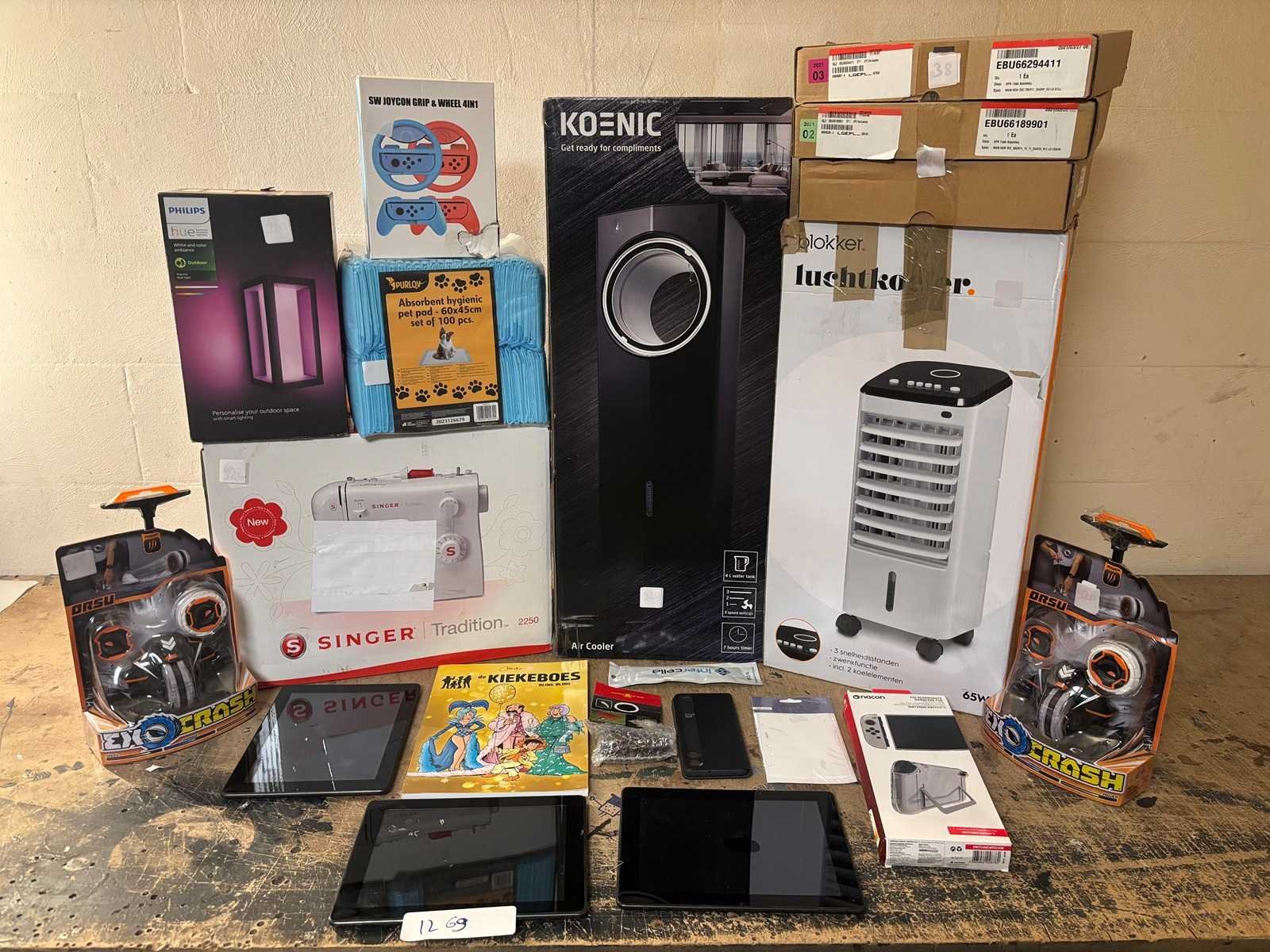 Dit betreft een partij retourgoederen van een grote online retailer. De partij bestaat uit diverse productcategorieën. Ongecontroleerd: werking onbekend (mix van werkend, incompleet, beschadigd, te gebruiken voor onderdelen). Kom op de kijkdag om zo een goed beeld te krijgen van de reden van retour. Bezorgtermijn 7 dagen Merk: Partij