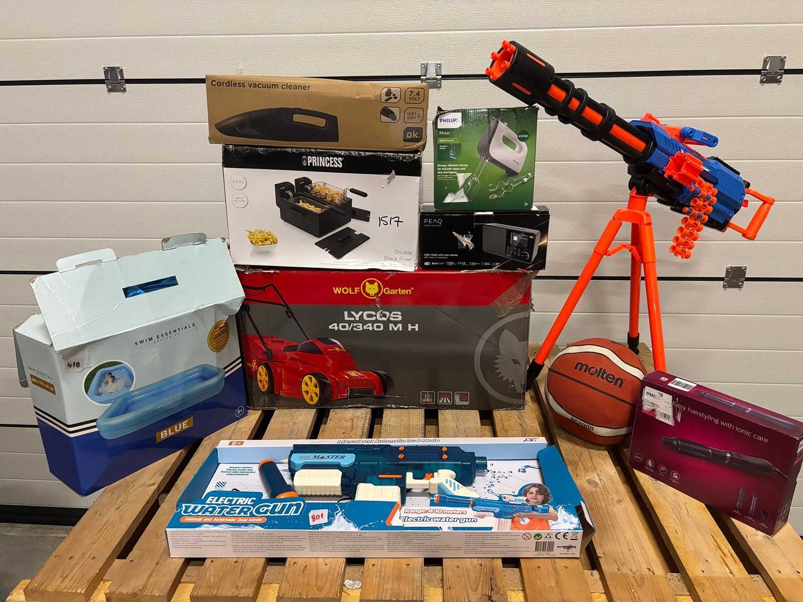 Dit betreft een partij retourgoederen van een grote online retailer. De partij bestaat uit diverse productcategorieën. Ongecontroleerd: werking onbekend (mix van werkend, incompleet, beschadigd, te gebruiken voor onderdelen). Kom op de kijkdag om zo een goed beeld te krijgen van de reden van retour. Bezorgtermijn 7 dagen Merk: Partij