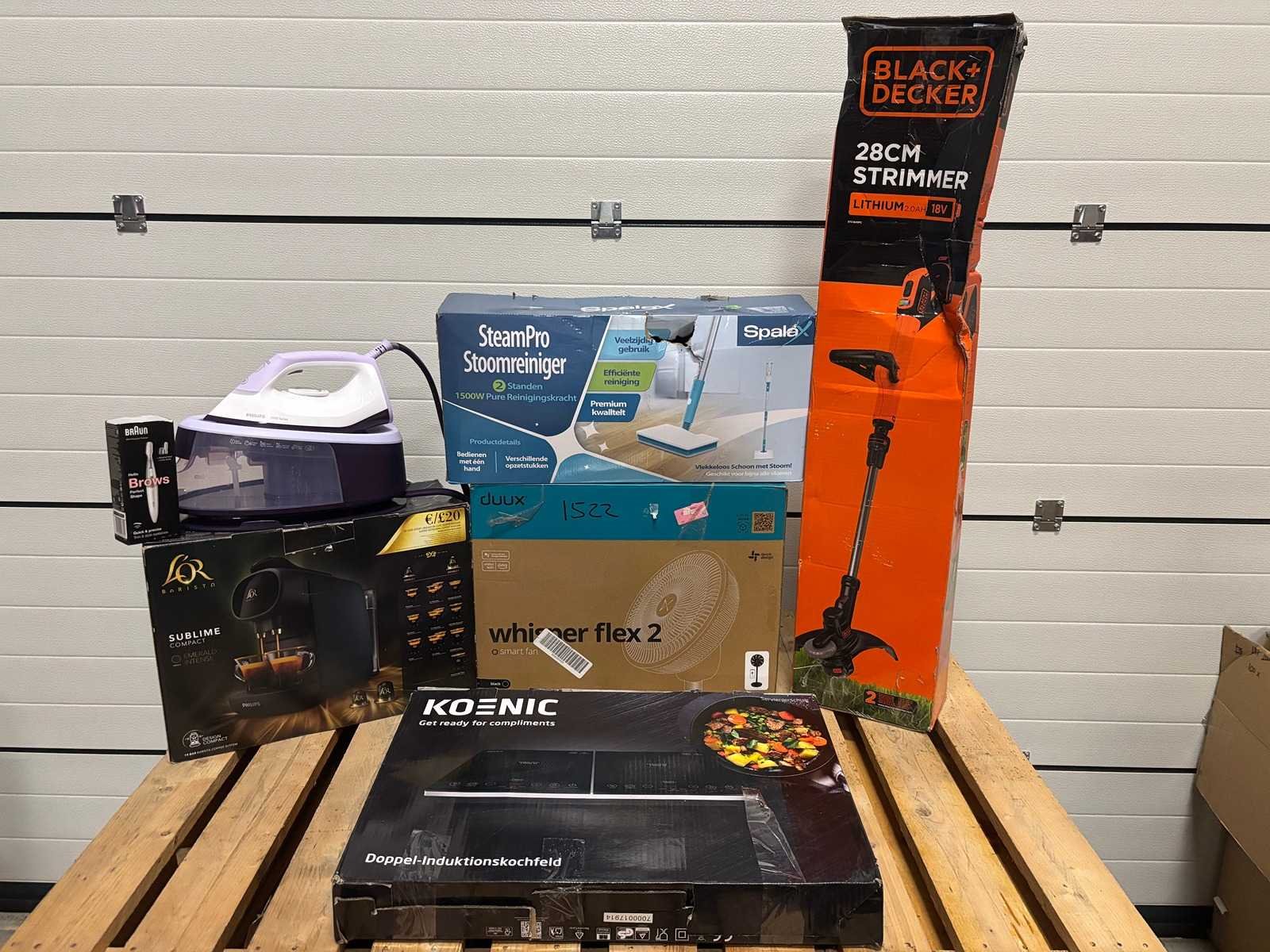 Dit betreft een partij retourgoederen van een grote online retailer. De partij bestaat uit diverse productcategorieën. Ongecontroleerd: werking onbekend (mix van werkend, incompleet, beschadigd, te gebruiken voor onderdelen). Kom op de kijkdag om zo een goed beeld te krijgen van de reden van retour. Bezorgtermijn 7 dagen Merk: Partij