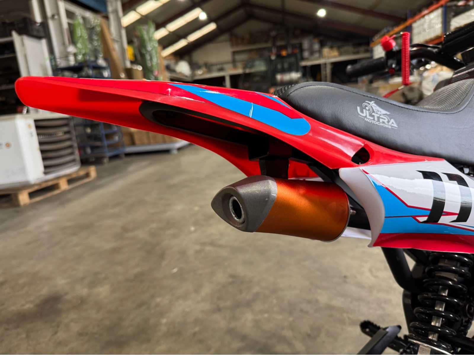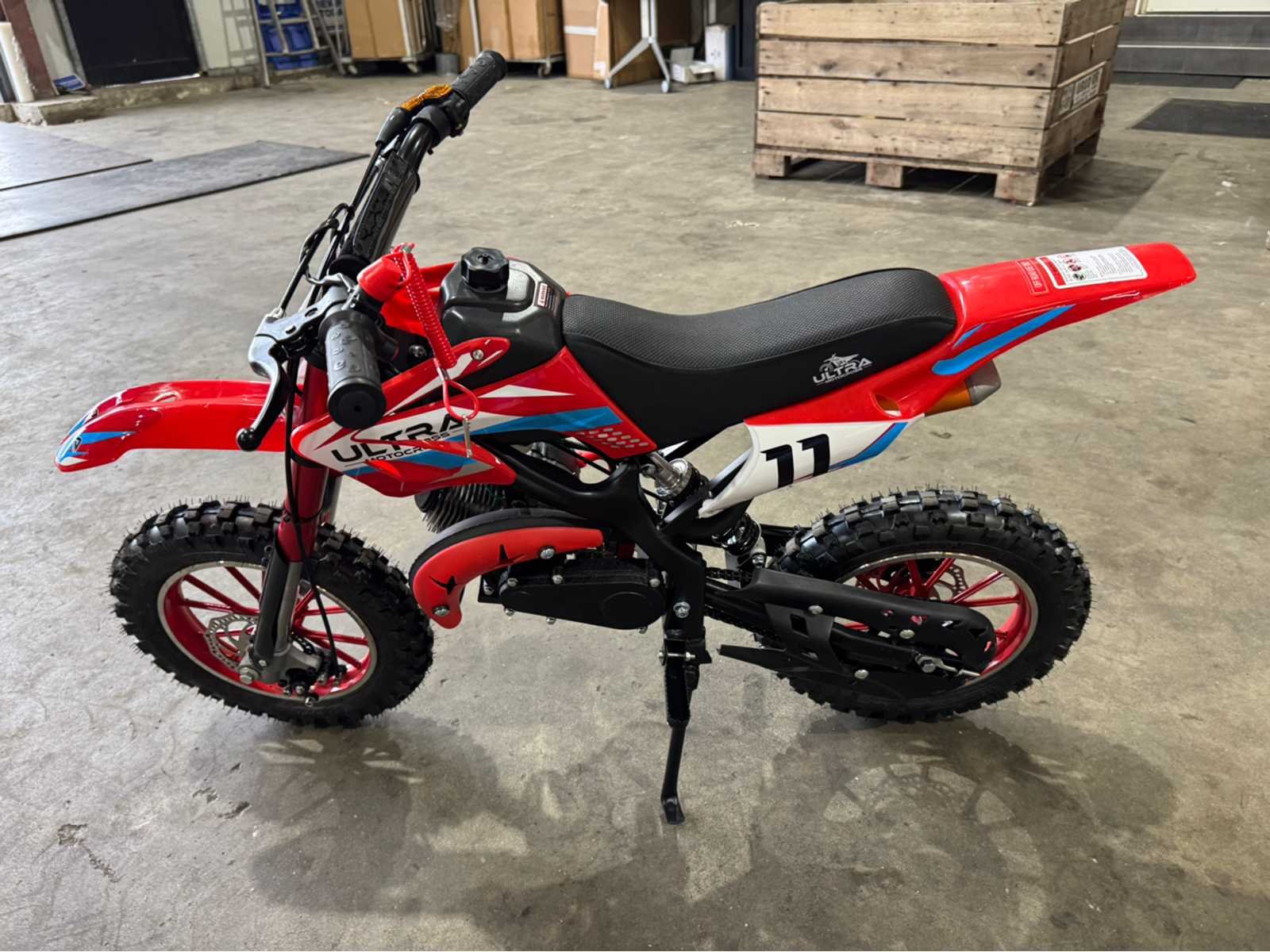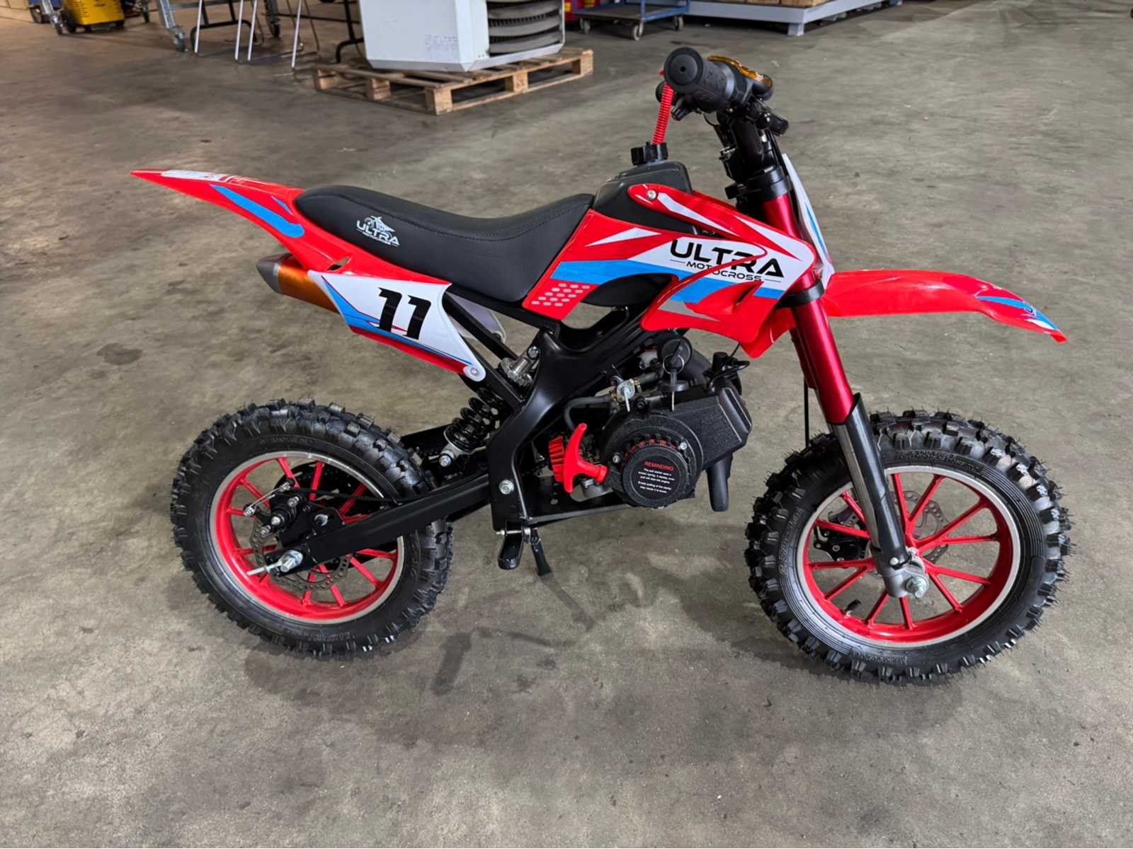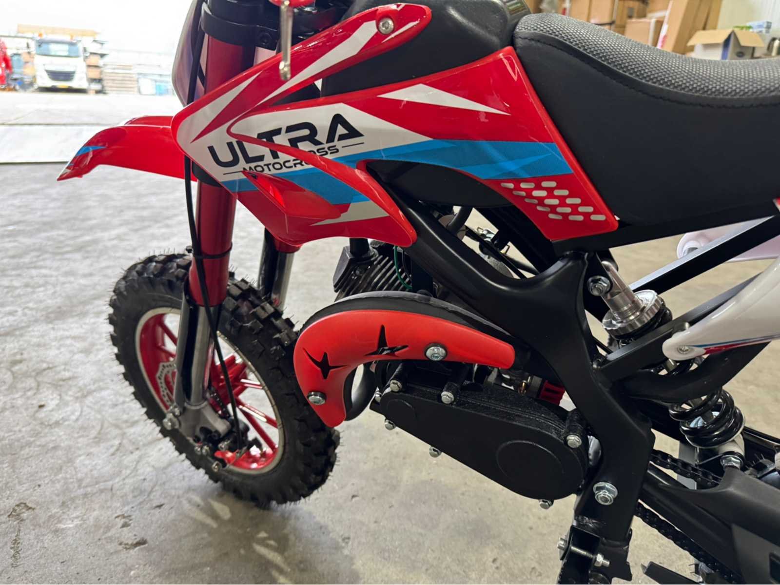 Ongebruikte kinder cross motor; benzine motor; handmatig gestart; voorzien van dodemansknop Merk: Ultra Brandstof: Benzine