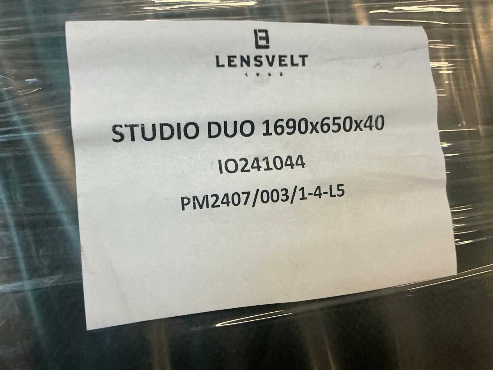 Privacy schermen voor evo duo bureau 20x Afmetingen: 1200x650x40 in zwarte stof; 4x 1690x650x40; zonder de bevestigings materialen Merk: Lensvelt Type: Studio DUO