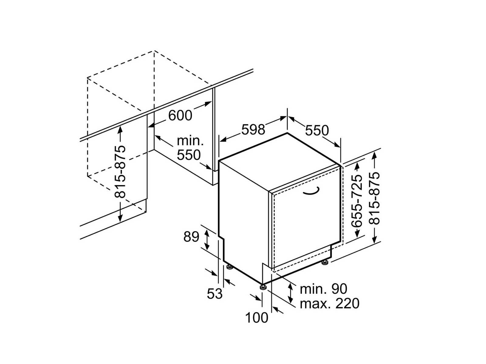 Minimale Nishoogte; 815 mm Maximale Nishoogte; 875 mm Minimale Nisbreedte; 600 mm Maximale Nisbreedte; 608 mm Nisdiepte; 550 mm 1 maand garantie Merk: Siemens Model: iQ500 SN66P156EU Volume: 42dB Spanning: 230V Energielabel: A++ Gewicht: 40.5kg Lengte: 55cm Breedte: 59.8cm Hoogte: 81.5cm Aantal couverts: 13