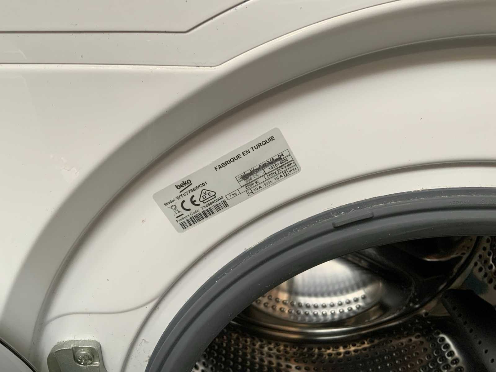 Waterslang mist & wat lichte roestplekjes op de onderkant/achterkant. 1 maand garantie Merk: Beko Model: ProSmartInverter WTV7736WC01 Spanning: 230V Volume: 72dB Aantal toeren per minuut: 1400rpm Energielabel: D Type belading: Voorlader Lengte: 60cm Breedte: 60cm Serienummer: WTV7736WC01 Hoogte: 84cm Kleur: Wit Gewicht: 67kg Laadvermogen: 7kg