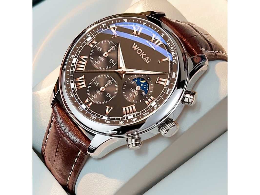 Ongebruikt in verpakking Merk: Wokai Kastmaat: 40mm Geslacht: Heren Materiaal: PU leer