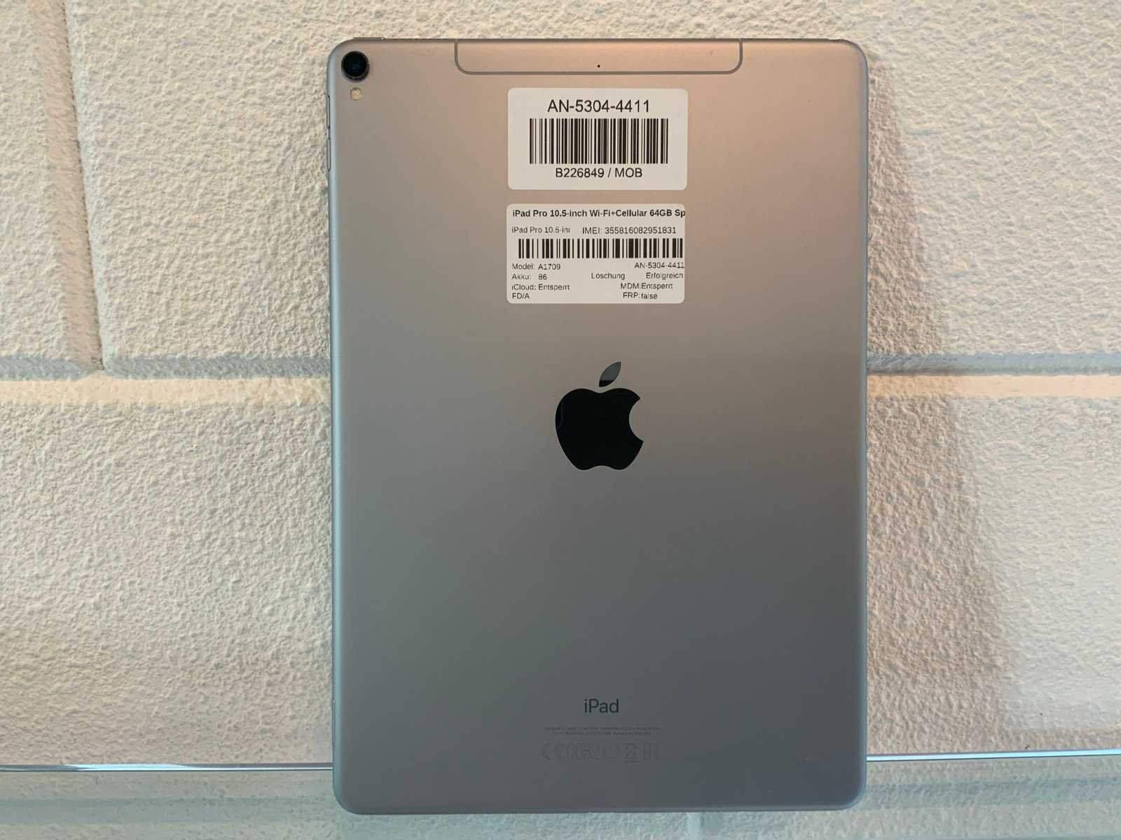 Batterij Conditie; 86% Merk: Apple Type: Pro Model: Ipad Processor type: A10X Fusion (Hexa-core) Processorsnelheid Ghz: 2,38 Opslagcapaciteit: 64GB SIM: true Accu Capaciteit: 8134mAh Frontcamera Resolutie: 7 Frontcamera: true Camera Resolutie: 12 Camera: true Geheugen type: Flashgeheugen (NAND) Integrated microphone: true Besturingssysteem: IOS Wifi: true Bluetooth: true RAM-Geheugen: 4GB RAM Geheugen Type: LPDDR4 Touchscreen: true Beelddiagonaal: 10.5'' Kleur: Space Gray Gewicht: 477g Zonder oplader: true