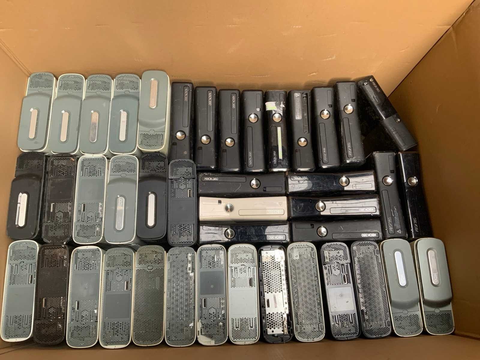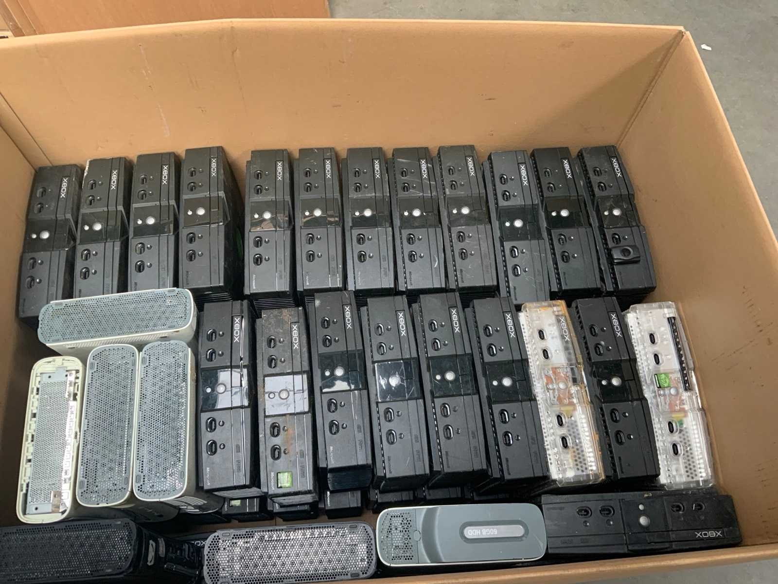Xbox 49x Xbox 360 79x Xbox 360 S 16x Xbox 360 E 6x Xbox One 1x Xbox One S 2x Zit verpakt in 2 palletboxen. Exclusief stroomkabels & overige accessoire. Mix van werkende en kapotte, te gebruiken voor onderdelen of met je juiste kennis te repareren. Merk: Microsoft Model: Diverse Xbox