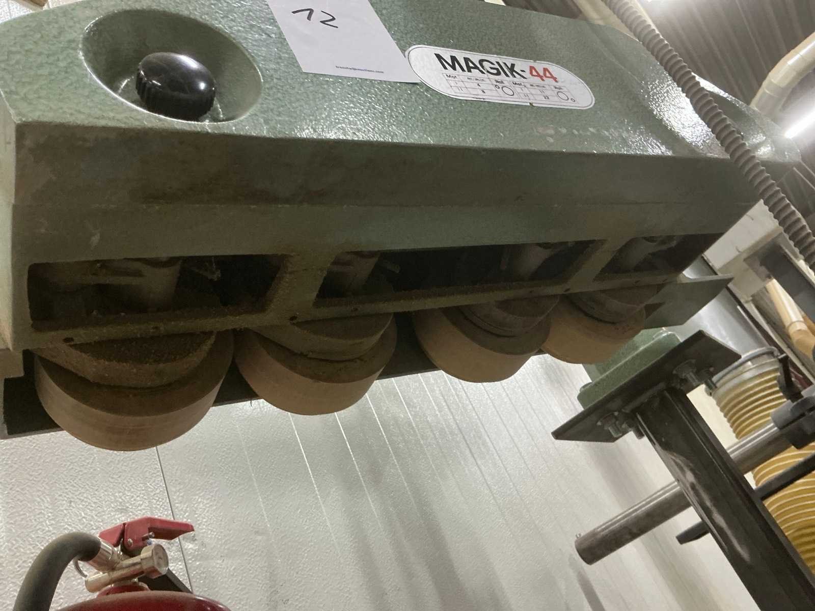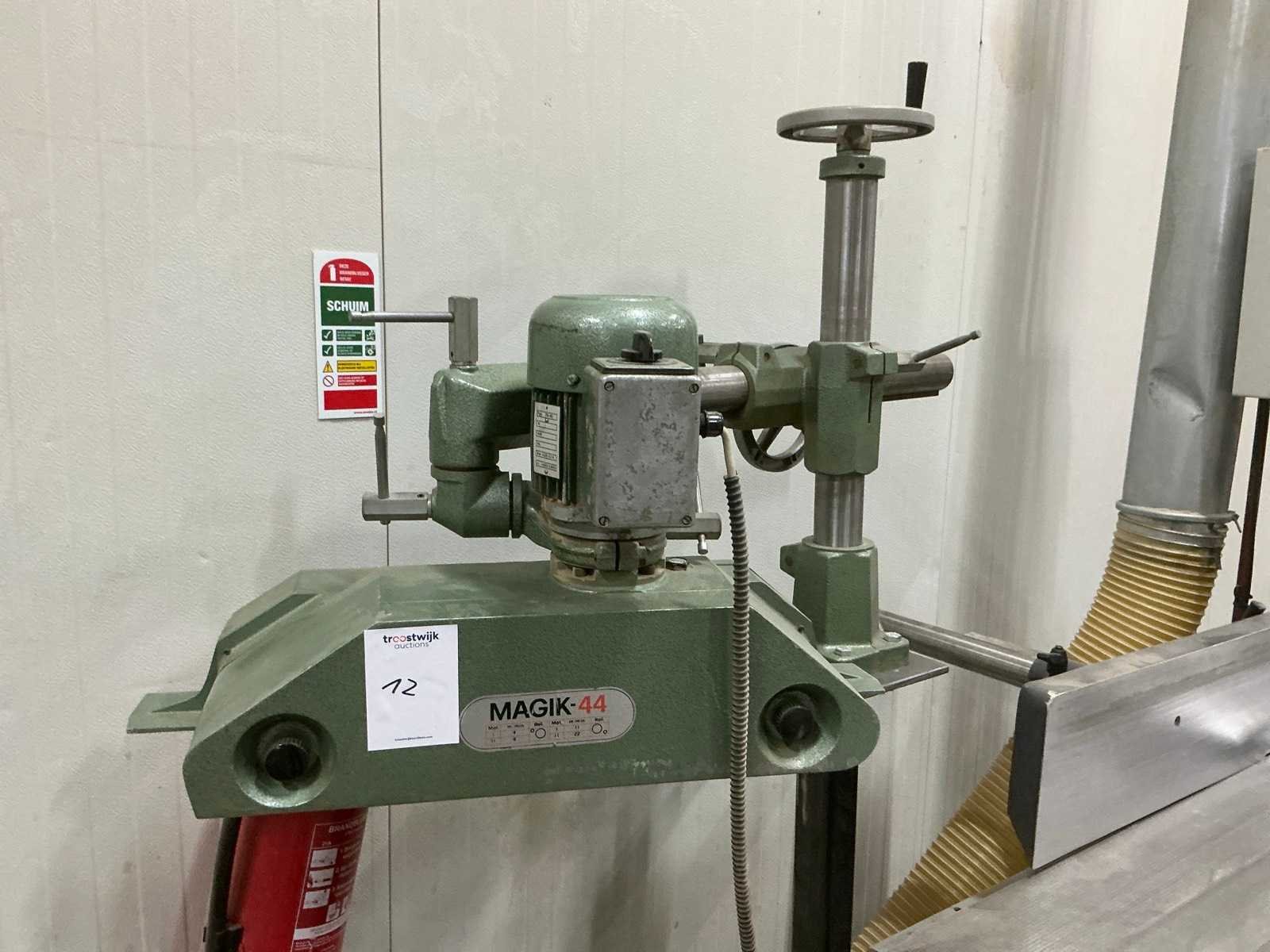 V.v. 4x aangedreven aanvoerrol; snelheden 11m/ min. / 22m/min; in hoogte verstelbaar; 0,74 kW Merk: Magik Type: 44 Aantal snelheden: 2 Totale afmeting Breedte: 270mm Totale afmeting Hoogte: 450mm Totale afmeting L: 750mm