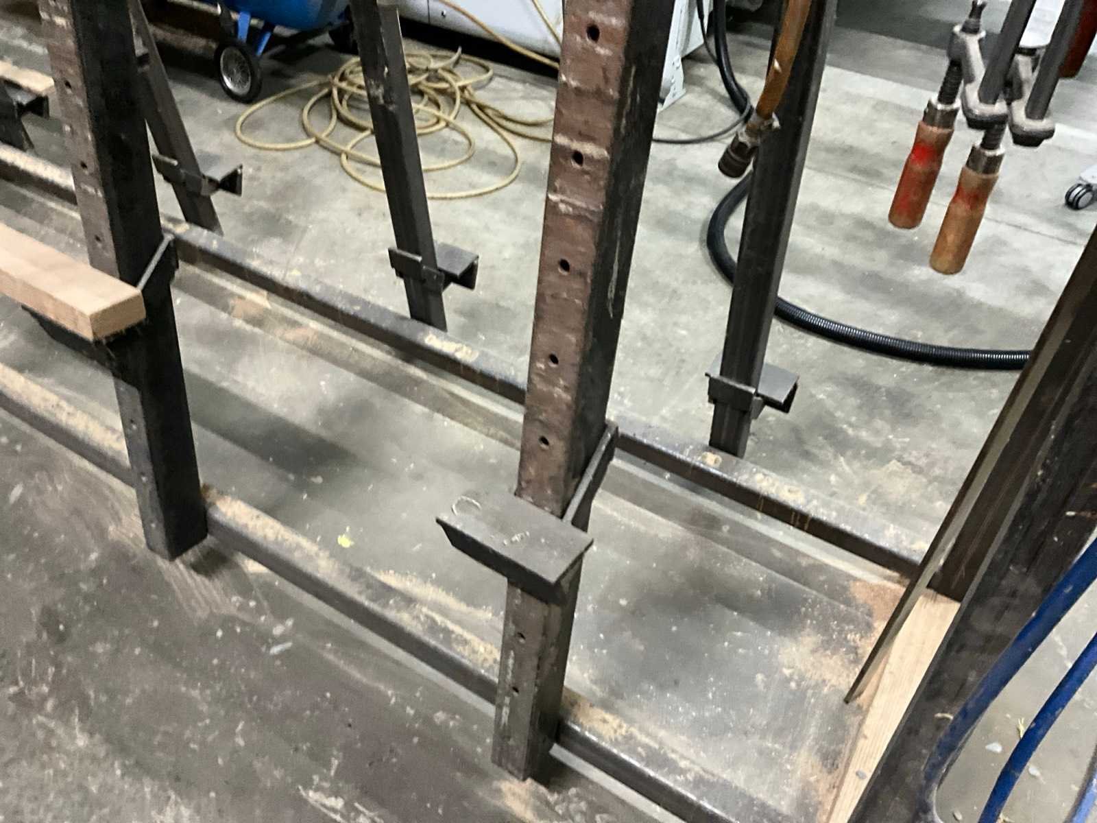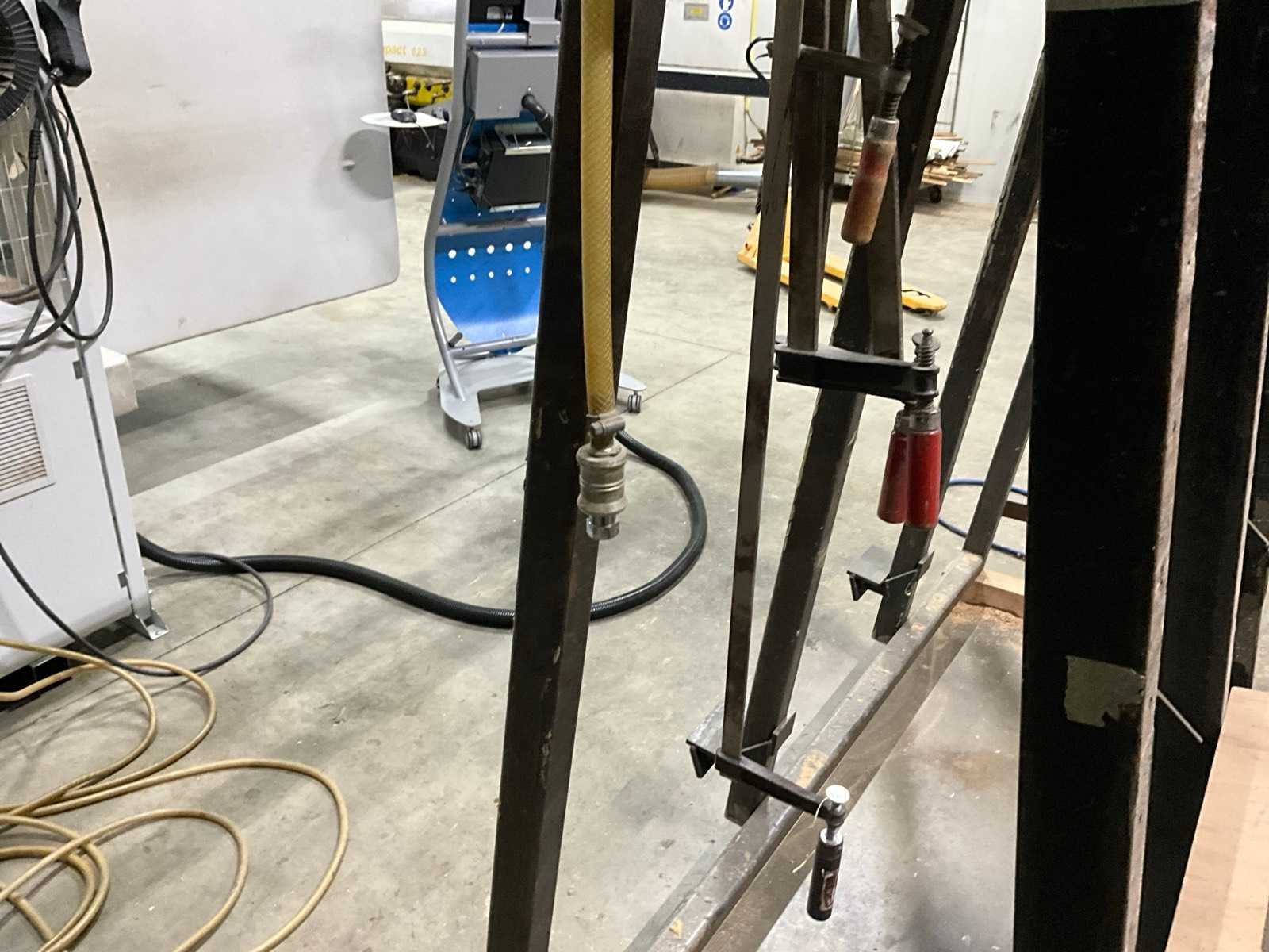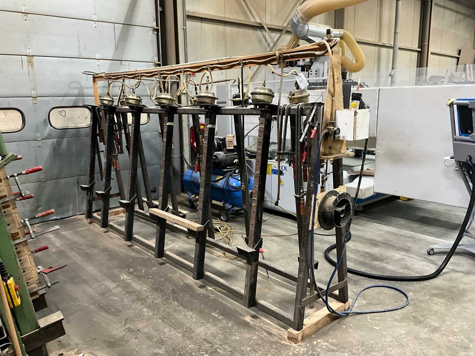 Werkhoogte 15 mogelijkheden, 11x pneumatisch klem, diverse lijmklemmen, Pneumatisch lijmpistool, 5x ongebruikte luchtaansluiting Werkbreedte: 3500mm Werkhoogte: 1500mm