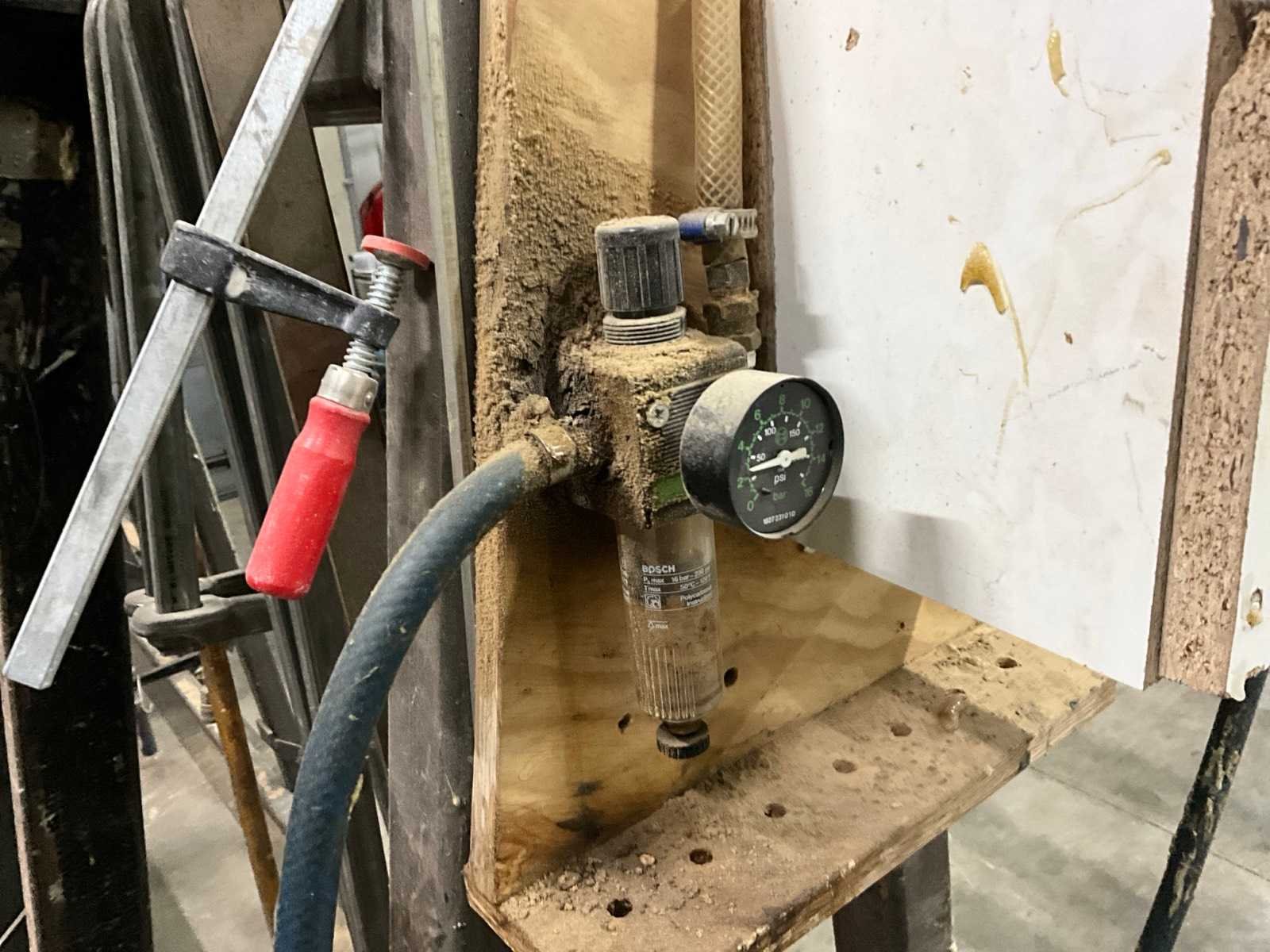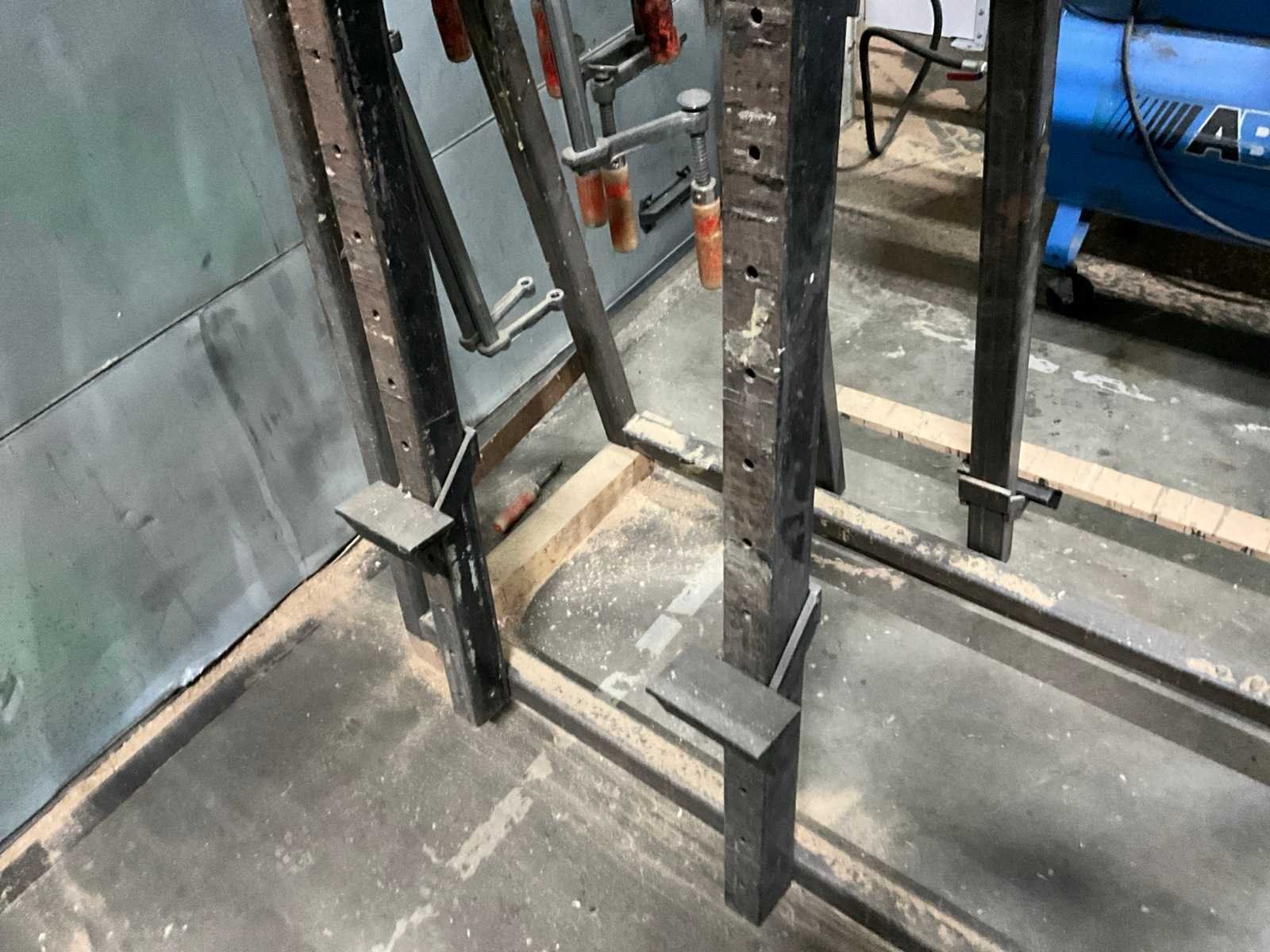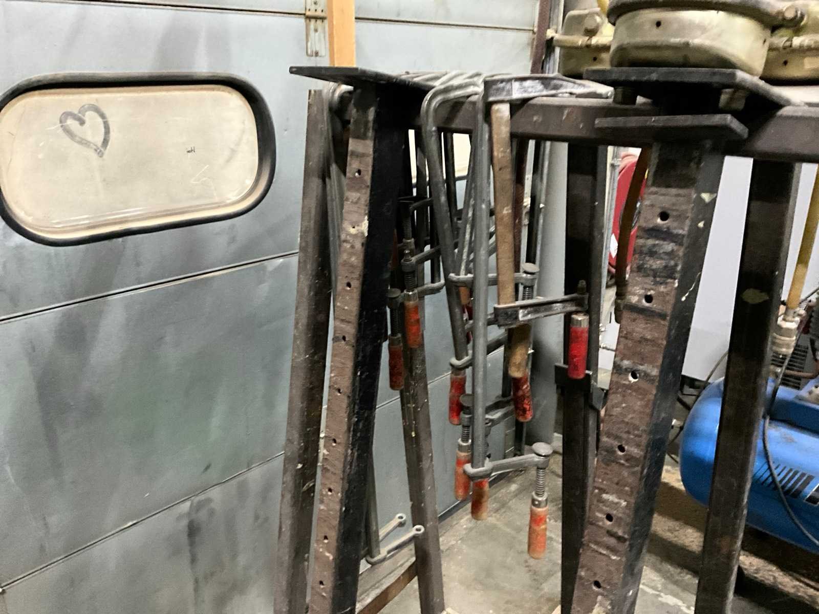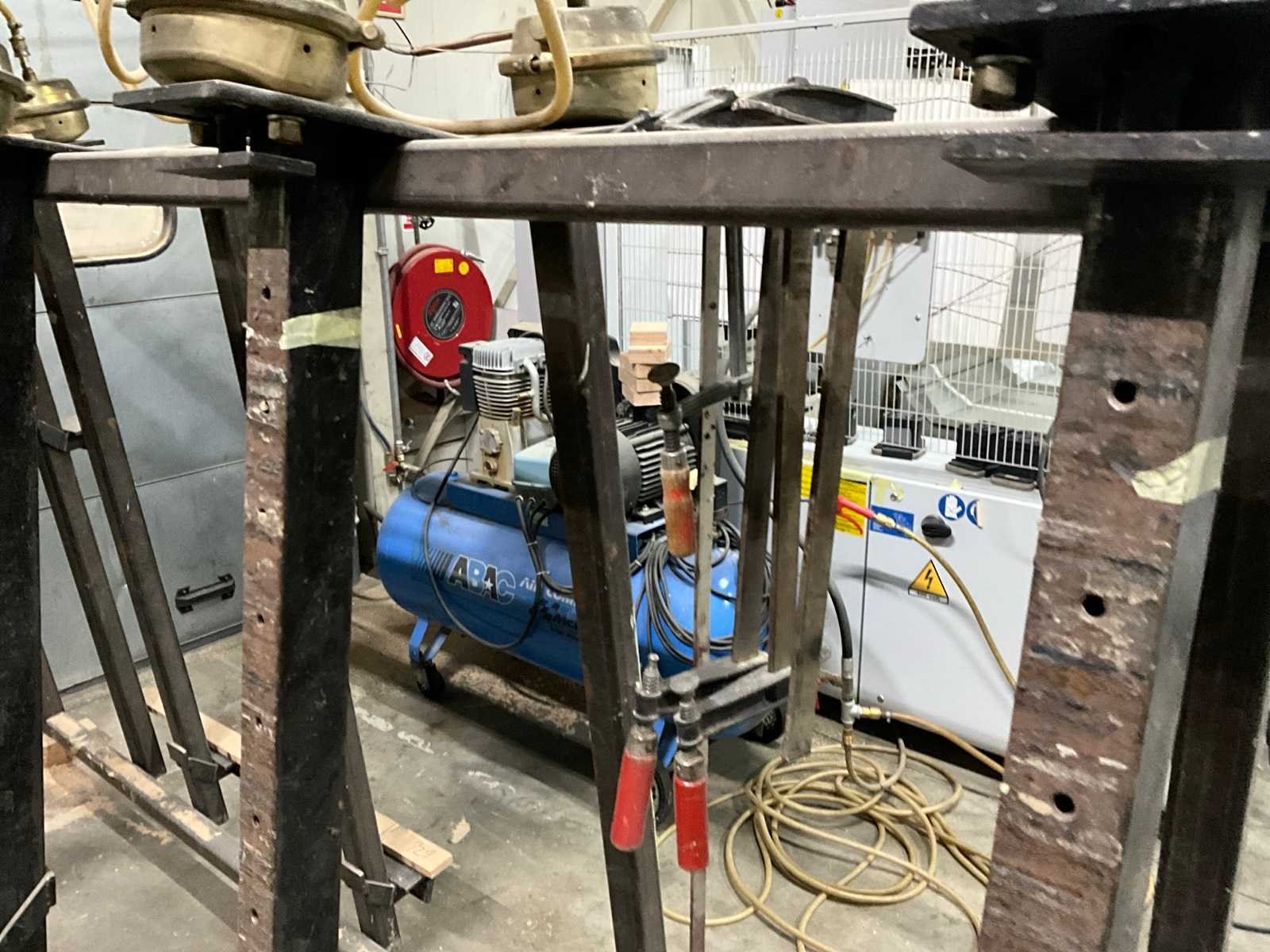 Werkhoogte 15 mogelijkheden, 11x pneumatisch klem, diverse lijmklemmen, Pneumatisch lijmpistool, 5x ongebruikte luchtaansluiting Werkbreedte: 3500mm Werkhoogte: 1500mm