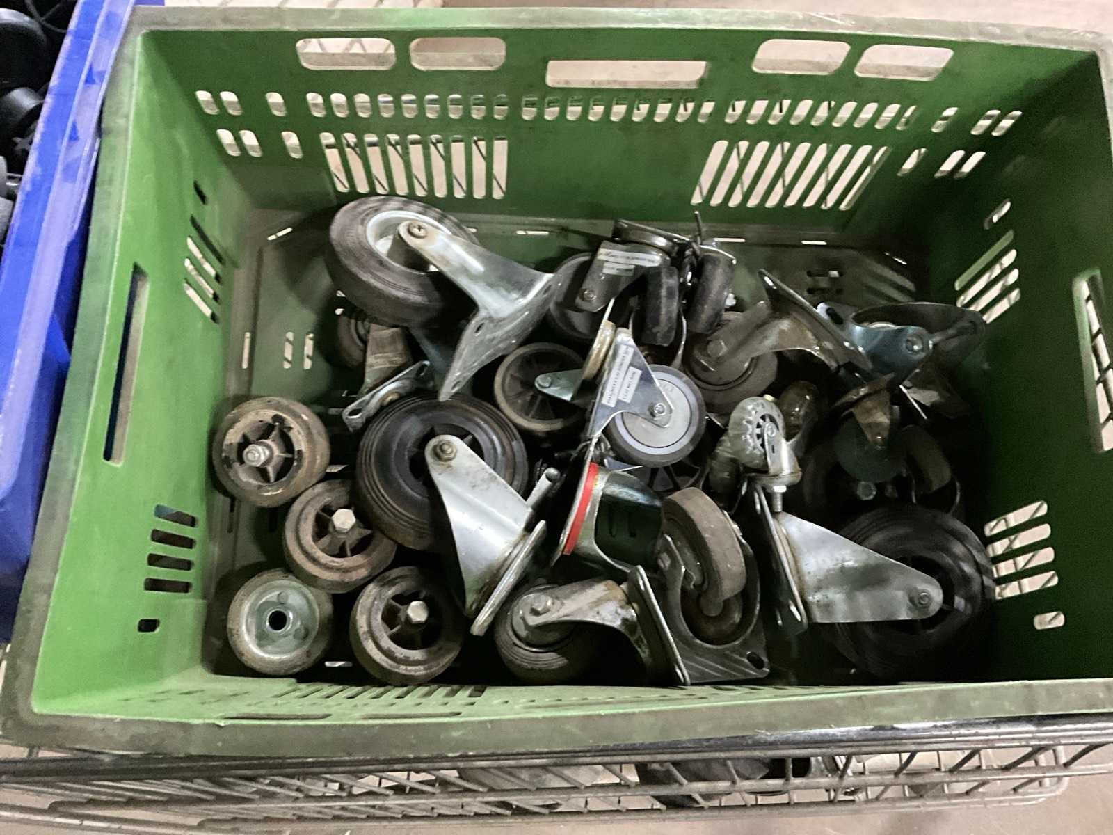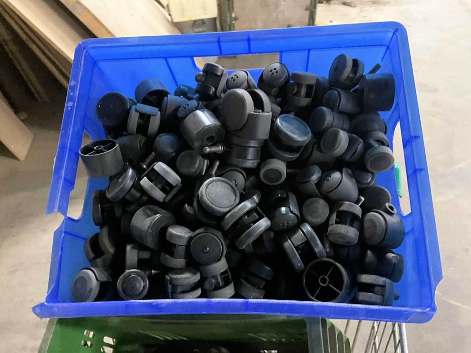 Bestaande uit bureaustoel wielen, kunststof en rubber wielen zowel vast als draaibaar, inclusief winkelwagen