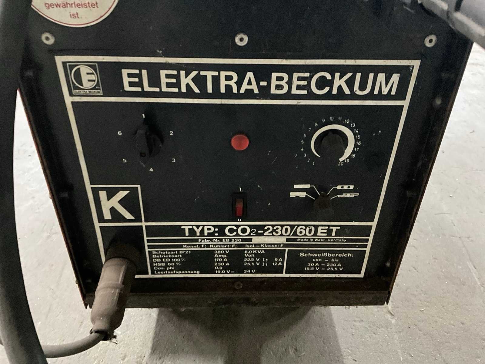 Gasfles aansluiting, Aardklem, Lastorch Merk: Beckum Type: CO2-230/60ET Ampère belasting: 230A Aansluiting: 380V