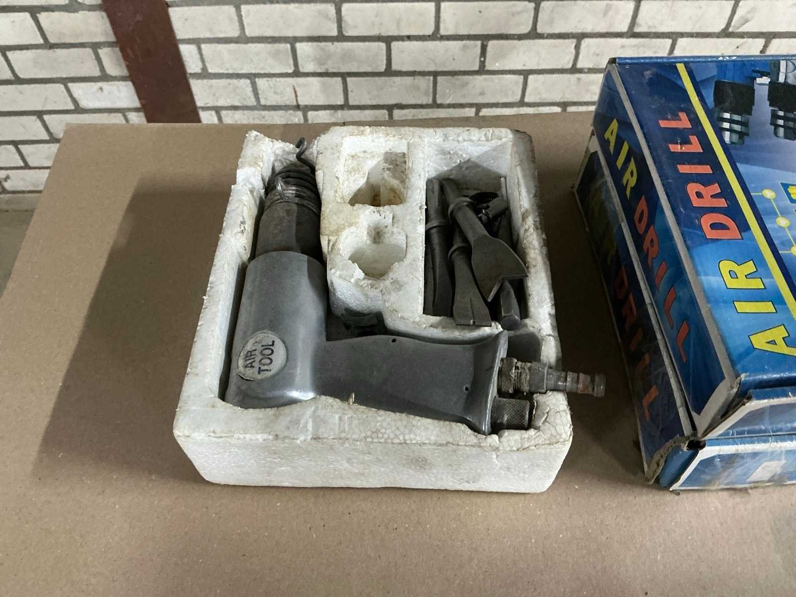 Diverse items waaronder 6x Air drill boormachine ongebruikt, 2x diverse boormachines; 1x pneumatische tacker, 1x Air tool luchtbeitel
